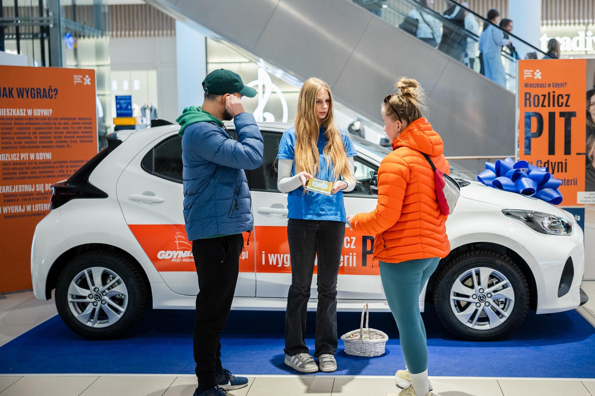 Przed nami ostatnia prosta, aby dopełnić obowiązków podatkowych i rozliczyć się z fiskusem... w Gdyni. Jakie to ważne, przypomina miejska kampania „Rozlicz PIT w Gdyni”. W ten weekend w Centrum Riviera po raz kolejny działają specjalne stoiska informacyjne, gdzie można uzyskać odpowiedzi na pytania dotyczące loterii oraz pomoc w wypełnieniu formularza zgłoszeniowego. Rejestracja trwa do 10 maja. Jak co roku o tej porze, zapraszamy do udziału loterii „Rozlicz PIT w Gdyni”. Wziąć w niej mogą udział wszystkie osoby, które rozliczają swój podatek dochodowy w naszym mieście. A stawka jest wysoka. Do wygrania są dwa samochody osobowe Mazda 2 Hybrid. Jeden trafi do osoby, która rozlicza PIT w Gdyni od lat, a drugi do osoby, która po raz pierwszy wskaże Gdynię jako miejsce odprowadzania podatku. W Centrum Riviera mamy okazję zobaczyć jeden z dwóch samochodów, które znajdują się w puli nagród (fot. Karol Stańczak) Jak wziąć udział w loterii? Aby zgłosić się do loterii „Rozlicz PIT w Gdyni” należy wypełnić formularz zawierający podstawowe dane oraz oświadczenie o rozliczeniu podatku (termin upływa 30 kwietnia!) w jednym z gdyńskich urzędów skarbowych. Formularz dostępny jest na oficjalnej stronie internetowej loterii. Zgłoszenia można przesyłać do 10 maja.W gdyńskich centrach handlowych na mieszkanki i mieszkańców czekają stoiska informacyjne „Rozlicz PIT w Gdyni”. Osoby, które je obsługują, udzielą potrzebnych informacji, a nawet pomogą zarejestrować się na stronie: pitwgdyni.pl. Mieszkańcy chętnie korzystali ze wsparcia osób obsługujących stoiska informacyjne (fot. Karol Stańczak) W sobotę, 25 kwietnia punkt informacyjny loterii działał w Centrum Riviera w godz. 12:00-17:00. Dobra wiadomość jest taka, że w tym samym miejscu pojawi się również w niedzielę, 26 kwietnia, od godz. 12:00 do 17:00.Ale to jeszcze nie wszystko: 9 maja w godz. 12:00-17:00 z pomocą pospieszą konsultanci dyżurujący w Centrum Handlowym Batory.Przy okazji rozmowy można też obejrzeć nagrodę główną w loterii – Mazdę 2 Hybrid. Znajdziemy ją na ekspozycji w Centrum Riviera do 30 kwietnia.Przypominamy, że w loterii mogą wziąć udział tylko osoby pełnoletnie, które podczas składania zeznania podatkowego wskażą jako miejsce rozliczenia podatku jeden z dwóch gdyńskich urzędów skarbowych.Odprowadzane przez mieszkańców podatki pomagają rozwijać miasto, a uzyskane środki są jednym z najważniejszych dochodów dla gminy. Tylko w 2025 roku wpływy z podatków PIT wyniosły ponad 1,3 miliarda złotych.Regulamin i szczegółowe informacje o miejskiej loterii znajdziemy na stronie internetowej. Galeria zdjęć Pobierz galerię Stoisko informacyjne w Centrum Riviera (fot. Karol Stańczak) Pobierz zdjęcie Stoisko informacyjne w Centrum Riviera (fot. Karol Stańczak) Pobierz zdjęcie Stoisko informacyjne w Centrum Riviera (fot. Karol Stańczak) Pobierz zdjęcie Stoisko informacyjne w Centrum Riviera (fot. Karol Stańczak) Pobierz zdjęcie Warunki pobierania Wszelkie prawa do zdjęć lub grafik prezentowanych w ramach portalu, należą do Prowadzącego portal lub do podmiotów z nim współpracujących i podlegają ochronie prawnej. Prowadzący portal zezwala na kopiowanie i przedstawianie utworów jedynie w celach niekomercyjnych oraz pod warunkiem zachowania go w oryginalnej postaci i zachowaniem kontekstu tematu, do którego zostało wykorzystaneprzez redakcję gdynia.pl. Opublikowane materiały powinny zawsze zawierać źródło, czyli adres strony www.gdynia.pl. Na publikowanie utworów w innych celach wymagana jest zgoda właściciela strony czyli Prowadzącego portal. Opublikowano: 25.04.2026 19:30 Autor: Aneta Marczak (aneta.marczak@gdynia.pl) Zmodyfikowano: 25.04.2026 21:10 Zmodyfikował: Kamil Złoch