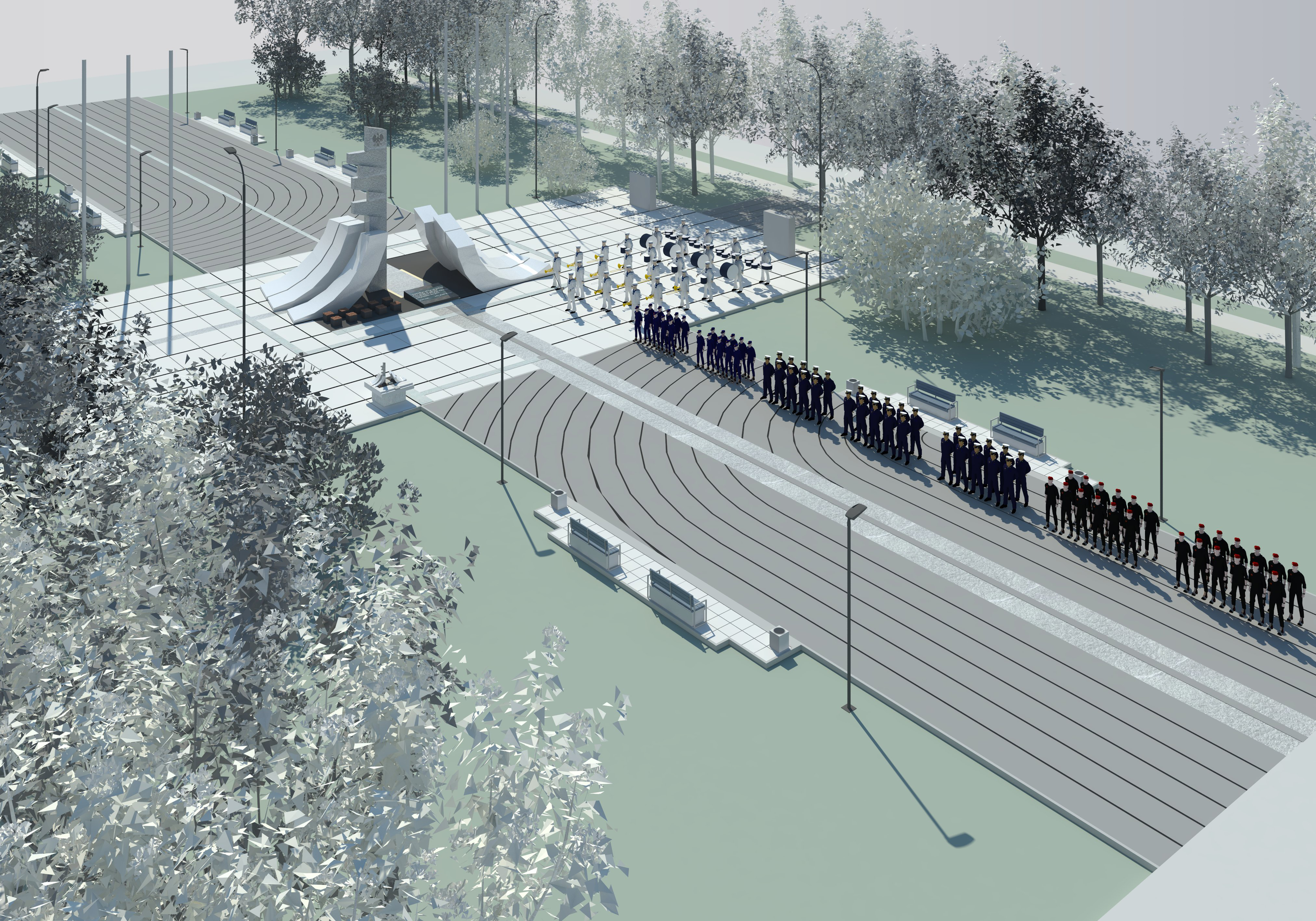 Na Skwer Kościuszki wjechał już ciężki sprzęt, demontowana jest płyta Marynarza Polskiego, niebawem robotnicy zaczną wylewać fundamenty pod pomnik Polski Morskiej. Uroczyste odsłonięcie monumentu nastąpi 24 czerwca tego roku, podczas obchodów Święta Morza i święta Marynarki Wojennej. Płyta, na czas prac budowlanych, zostanie zabezpieczona i ostatecznie stanie się elementem nowego pomnika. Natomiast po zakończeniu sezonu letniego rozpoczną się prace nad zagospodarowaniem terenu wokół. Staną tam maszty flagowe, ławki, pojawią się trawniki z automatycznym nawadnianiem, zostaną dosadzone cisy. Projekt uwzględnia także poruszanie się osób z dysfunkcjami wzroku.Pomnik będzie zapraszał gdynian i turystów nie tylko do zadumy, ale jego zielone otoczenie stanie się nową przestrzenią do relaksu i spacerów. Po zmroku specjalnie zaprojektowane oświetlenie będzie eksponować zasadzone tam drzewa, w większości cisy. Dodatkowo zostanie ustawionych 14 lamp, oświetlających pomnik i jego otoczenie. Powstaną nowe chodniki, z bardzo estetycznych i wytrzymałych płyt, o zróżnicowanych kolorach. Część nawierzchni będzie wykonana z kamienia podobnego do granitu - sjenitu. Pod ziemią znajdzie się system nawadniający, co będzie gwarantować zawsze soczystą zieleń. Nadmiar wody będzie sprawnie odprowadzany przez nowy system kanalizacji deszczowej. Pojawią się estetyczne ławki. Teren przyległy do pomnika będzie też przygotowany do funkcji reprezentacyjnych, stanie tam 6 masztów flagowych. Zgodnie z uchwałą Rady Miasta Gdyni pomnik nie tylko będzie przypominał o polskich związkach z morzem, ale ma również edukować, spełniać funkcje reprezentacyjne i być miejscem przyjaznym dla mieszkańców i turystów. Upamiętni on żeglarzy, marynarzy i rybaków, wielkich polskich samotników i żeglarzy wyczynowych, polskie służby morskie, pisarzy i poetów opiewających polskie morze, polskich dokerów i stoczniowców, bez których nie byłoby dzisiaj wolnej Polski, wszystkich, którzy budowali Polskę nad Bałtykiem i którzy sławili jej morskie imię, w tym polskie kadry morskie i dorobek Wyższej Szkoły Morskiej, legendę „Daru Pomorza” i „Daru Młodzieży”. Będzie to też miejsce silnie związane z Polską Marynarką Wojenną, jej tradycjami i historią Polski na morzach i oceanach. Można by określić ten monument jako apoteozę związków Polski z morzem, zwłaszcza w stuleciu Polski Niepodległej. Koszt samej bryły pomnika to ok. 500 tys. zł. Zagospodarowanie terenu, włączając w to nowe chodniki i nawierzchnie, system iluminacji i oświetlenie, nową kanalizację deszczową, małą architekturę i zieleń to ok. 2,9 mln zł. Dr inż. arch. Marek Stępa, wiceprezydent Gdyni i członek sądu konkursowego, tak komentuje ostateczny wybór projektu – w jury zasiadało trzech profesorów rzeźbiarzy, którzy zgodzili się, że praca, która ostatecznie zwyciężyła, jest najlepsza z siedmiu nadesłanych na konkurs. Praca z Krakowa jest możliwa do zrealizowania bez ingerencji psujących efekt ostateczny. Nie narusza modernistycznego charakteru architektury śródmieścia Gdyni i wpisuje się nowymi elementami w osiowe założenie Skweru Kościuszki i Mola Południowego z Basenem Żeglarskim. Dzięki pomnikowi powstanie funkcjonalnie urządzona przestrzeń zielona, zachęcająca do wypoczynku i taki też był cel projektu. W okresie międzywojennym Gdynia stała się żywym symbolem Polski Morskiej. Tę wizję kreowała i umacniała Liga Morska i Rzeczna, przekształcona w 1930 roku w Ligę Morską i Kolonialną. Oprócz działań związanych z budową floty czy rozwojem żeglugi, Liga przede wszystkim uczyła Polaków kochać morze, organizowała tanie i powszechne wycieczki do Gdyni, rejsy dla dzieci, promowała sporty wodne. To wokół Gdyni koncentrowała się działalność propagandowa Ligi, której hasłem było „wychowanie morskiego społeczeństwa”. Sukcesorką Ligi Morskiej i Kolonialnej jest przywrócona do życia w 1999 roku pod pierwotną nazwą Liga Morska i Rzeczna. To właśnie ta organizacja, wspólnie z Pomorskim Związkiem Żeglarskim, stanęła na czele koalicji na rzecz budowy pomnika Polski Morskiej. Znalazły się w niej także Polskie Towarzystwo Nautologiczne, Fundacja Promocji Przemysłu Okrętowego i Gospodarki Morskiej i Akademia Morska w Gdyni. Dr inż. Andrzej Królikowski, prezes Ligi Morskiej i Rzecznej, tak mówi o pomniku - Cieszę się, że po wielu latach Gdynia i cała Polska doczeka się tego pomnika. Zasługują na to pokolenia ludzi, związanych z morzem, którzy swoje serca i talenty oddali Polsce morskiej. Nie zgadzam się z niską oceną estetyki samego pomnika. Szkoda, że do rozstrzygnięcia tak długo oczekiwanego Pomnika Polski Morskiej było zaledwie siedem projektów. Zapewne nie uda się zaprojektować „idealnego” pomnika, który przypadłby do gustu wszystkim. Orzeł umieszczony w górnej części dominanty jest doskonałym akcentem, oddającym ideę Polski Morskiej. Jestem przekonany, że bez zaangażowania władz Gdyni pomnik nie mógłby powstać tak szybko. Bardzo dziękuję Radzie Miasta i panu Prezydentowi za podjęte działania i cieszę się, że wszystkie morskie środowiska będą wspólnie świętować jego odsłonięcie w Święto - Projekt, który wygrał w konkursie, jest czytelnym i profesjonalnym rozwiązaniem urbanistycznym. Niezależnie od opinii, do których każdy ma prawo, prezentuje on wysoki poziom artystyczny. Dobrze pasuje do modernistycznego ducha Gdyni. Autor jest znakomitym architektem i rzeźbiarzem. Trzeba pamiętać, że to już trzecie podejście do wyboru projektu tego pomnika. To, co mi się najbardziej w nim podoba, to całość kompozycji i zachowanie przejścia przez środek, niejako na wzór „bramy chwały”. Zachowana została w ten sposób perspektywa ku morzu – wyjaśnia artysta rzeźbiarz profesor Stanisław Radwański, prze