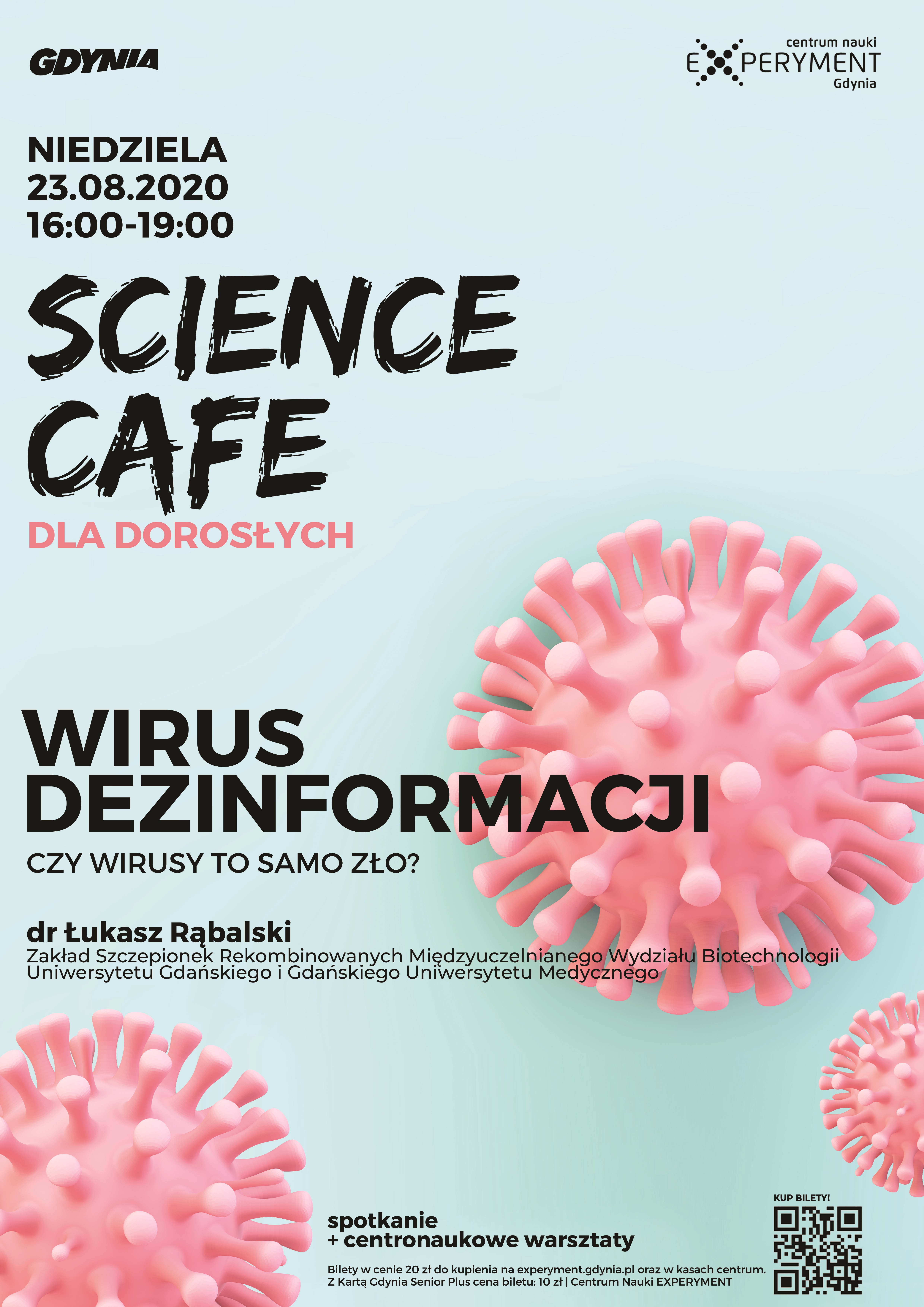 Wirusy w ostatnich miesiącach stały się prawdopodobnie najczęstszym tematem rozmów na całym świecie. To sprawiło, że w mediach tradycyjnych i społecznościowych, niczym grzyby po deszczu, pojawiały się kolejne teksty, posty i infografiki na ich temat. A to oczywiście wiązało się z całą masą fake newsów, niedopowiedzeń i niesprawdzonych informacji, które błyskawicznie roznosiły się po sieci w sposób, a jakże, wirusowy. Czas zebrać tę całą wiedzę i przesiać ją przez potężne sito naukowych faktów, aby pozostawić wyłącznie sprawdzone i rzetelne wiadomości. To właśnie uczynimy w Centrum Nauki EXPERYMENT w Gdyni 23 sierpnia podczas SCIENCE CAFE, na którym dezinformacją na temat wirusów zajmie się doktor Łukasz Rąbalski.W czasie wykładu poznacie również całą prawdę o wirusach, dowiecie się, czym się od siebie różnią, a także dlaczego niektóre z nich są „sprytniejsze” i szybciej mutują od innych. Rąbalski opowie także, jak skutecznie bronić się przed wirusami i jak wielką rolę w tej walce odgrywają szczepionki.Prowadzący: Łukasz Rąbalski – adiunkt w Zakładzie Szczepionek Rekombinowanych Międzyuczelnianego Wydziału Biotechnologii Uniwersytetu Gdańskiego i Gdańskiego Uniwersytetu Medycznego. Od początku swojej kariery naukowej zainteresowany wirusami, diagnostyką molekularną i przeciwdziałaniu chorobom wirusowym. Jako pierwszy uzyskał i opublikował sekwencję genetyczną koronawirusa SARS-CoV-2, izolowanego bezpośrednio od polskiego pacjenta.Kawę i ciasto zapewnia Parkowa Bistro.wiek: 18+termin: 23 sierpnia 2020, godz. 16:00bilet: 20/10 zł Do pobrania SCIENCE CAFE plakat jpg3419kb Opublikowano: 18.08.2020 16:30 Autor: Jakub Łasek (j.lasek@experyment.gdynia.pl) Zmodyfikowano: 19.08.2020 09:32 Zmodyfikował: Agnieszka Janowicz