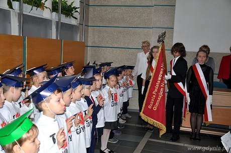Uroczyste pasowanie na ucznia Szkoły Podstawowej nr 42 i ślubowanie pierwszoklasistów odbyło się w czwartek 9 października 2014 r. w sali obrad Rady Miasta Gdyni. Ślubowanie uczniów poprzedzone było krótką częścią artystyczną w wykonaniu pierwszaków. Dzieci z przejęciem i dumą „występowały do pasowania" dokonanego tradycyjne symbolicznym wielkim ołówkiem przez dyrektor szkoły Grażynę Wojciechowską. Wszyscy pierwszoklasiści otrzymali legitymacje szkolne. Po zakończeniu oficjalnych uroczystości był jeszcze czas na pamiątkowe zdjęcia klas pierwszych. → Zdjęcie do pobrania→ Zdjęcie do pobraniafot. Michał Kowalski Opublikowano: 13.10.2014 00:00 Autor: Michał Kowalski (2011)