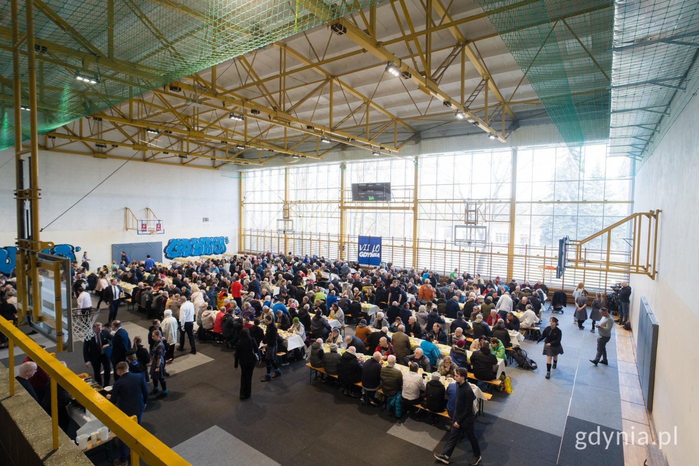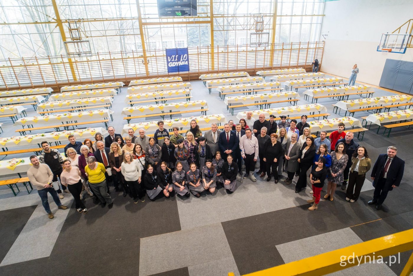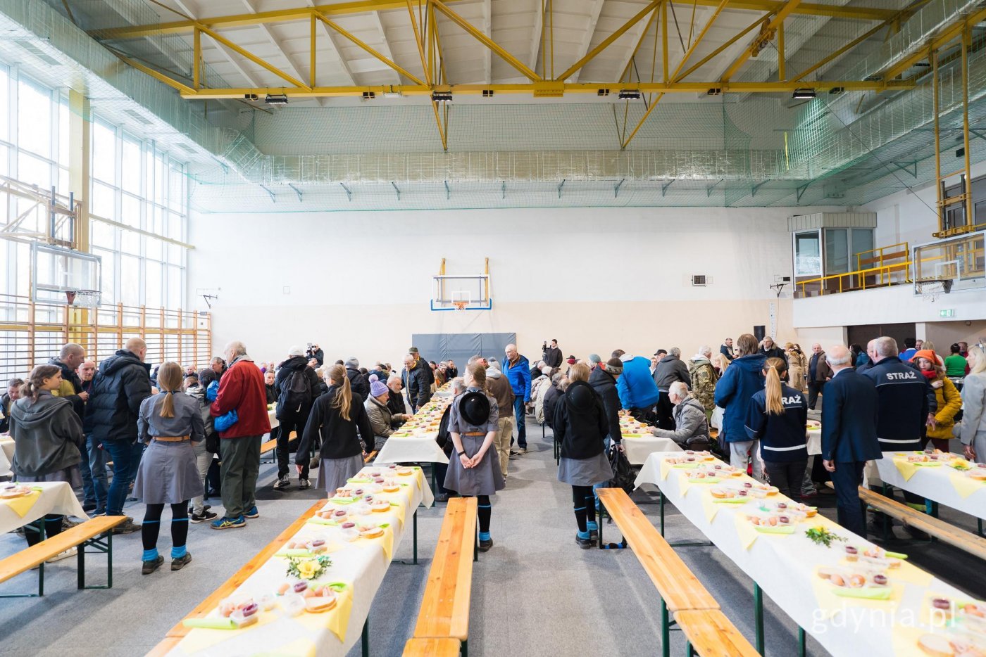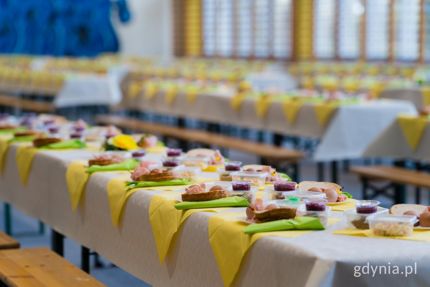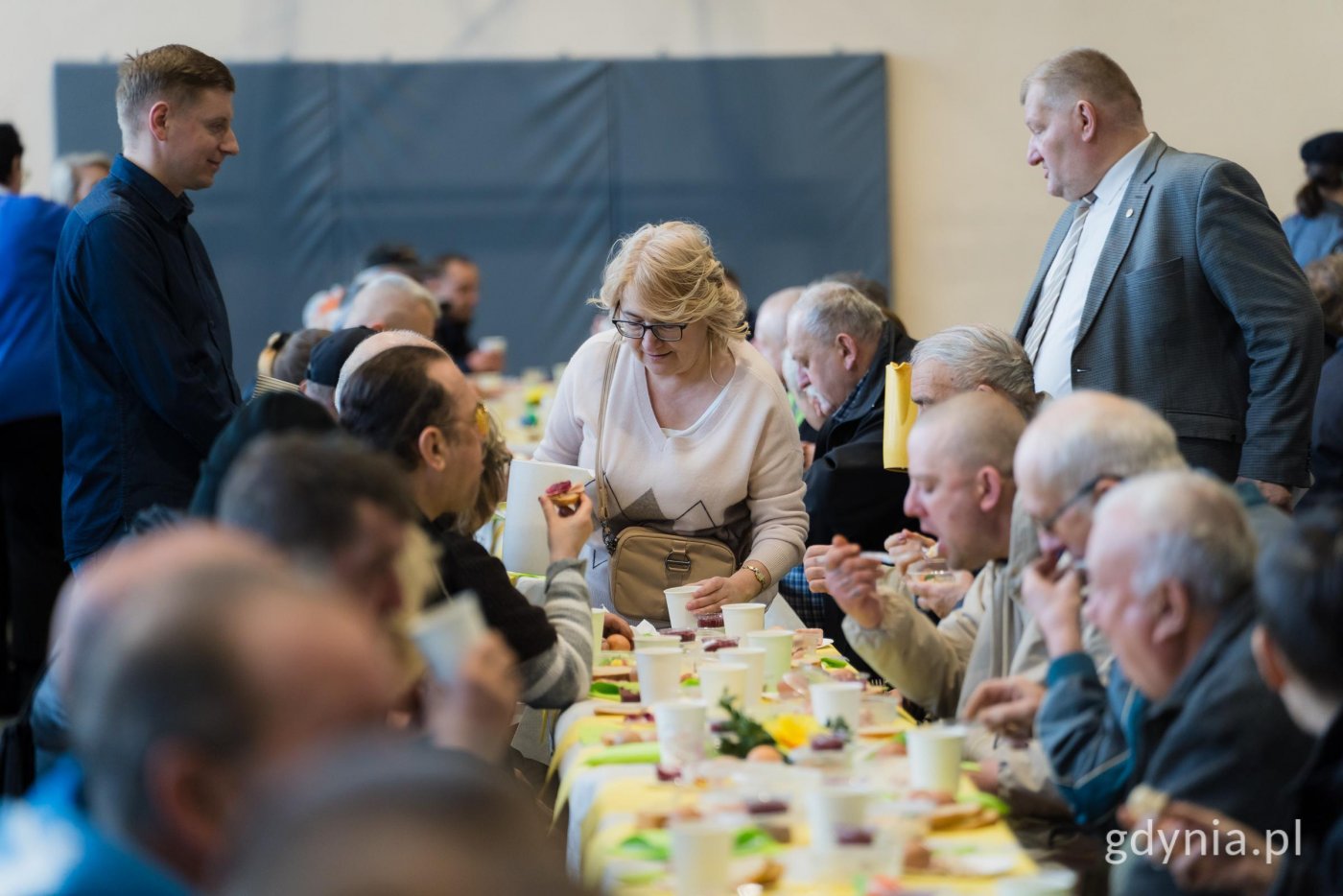 Wielkanoc to czas, kiedy nikt nie powinien być sam. Jak co roku w Gdyni osoby samotne i potrzebujące zasiadły do wspólnego stołu. Śniadanie wielkanocne odbyło się w sali VII Liceum Ogólnokształcącego, a na uczestników czekały paczki z żywnością przygotowane przez wolontariuszy. Nie każdy ma możliwość spędzenia świąt w gronie najbliższych, dlatego w Gdyni co roku organizowane jest śniadanie wielkanocne dla osób samotnych i potrzebujących. W tym roku ponad 500 Gdynianek i Gdynian zasiadło do wspólnego stołu w niedzielę, 5 kwietnia, o godz. 8:00 w sali gimnastycznej VII Liceum Ogólnokształcącego. Podczas świątecznego posiłku mieszkańcom towarzyszyli m.in. wiceprezydent Gdyni Tomasz Augustyniak, radni, harcerze, pracownicy Centrum Aktywności Seniora i wolontariusze. Bardzo cieszymy się, że możemy państwa gościć. W symbolikę Świąt Wielkanocnych wpisane jest coś związanego z nowym początkiem, ze zwycięstwem dobra nad złem. Te święta związane są z nadzieją, dlatego życzymy państwu oprócz pogody ducha spokoju w sercu, dużo zdrowia i sił, abyście każdego dnia mogli sprostać wszystkim wyzwaniom – mówi Tomasz Augustyniak, wiceprezydent Gdyni. Na wielkanocnym stole pojawiły się świąteczne potrawy. Nie zabrakło tradycyjnego żurku, białej kiełbasy, sałatki jarzynowej czy słodkości. Dodatkowo wszyscy uczestnicy otrzymali paczki z żywnością o długim terminie przydatności do spożycia. Śniadanie wielkanocne jest taką dobrą gdyńską tradycją. Ponad 100 wolontariuszy, radnych, harcerzy i osób związanych z samorządem przygotowało dzisiejszy posiłek, za co bardzo serdecznie pragnę podziękować – dodaje Tomasz Augustyniak, wiceprezydent Gdyni. W przygotowanie śniadania zaangażowali się pracownicy Centrum Aktywności Seniora oraz Gdyńskiego Centrum Sportu. Pomogli im wolontariusze zaprzyjaźnieni z CAS-em oraz harcerze Okręgu Pomorskiego ZHR i parafialny zespół Caritas, który działa w kościele oo. Franciszkanów. Galeria zdjęć Pobierz galerię Śniadanie wielkanocne (fot. Paweł Budziński) Pobierz zdjęcie Na zdjęciu m.in.: wiceprezydent Gdyni Tomasz Augustyniak, radna Teresa Bysewska, radna Beata Zastawna, radna Anna Szpajer, radna Monika Strzałkowska, dyrektorka CAS Bożena Zglińska Pobierz zdjęcie W przygotowanie śniadania zaangażowali się również harcerze (fot. Paweł Budziński) Pobierz zdjęcie Na zdjęciu m.in.: wiceprezydent Gdyni Tomasz Augustyniak, wiceprzewodniczący Rady Miasta Jakub Ubych, radna Monika Strzałkowska, radna Teresa Bysewska, były prezydent Gdyni Wojciech Szczurek (fot. Paweł Budziński) Pobierz zdjęcie Na zdjęciu m.in radny dr Jarosław Kłodziński (fot. Paweł Budziński) Pobierz zdjęcie Na zdjęciu m.in. wieloletni wiceprezydent Gdyni Michał Guć (fot. Paweł Budziński) Pobierz zdjęcie Na zdjęciu m.in.: radna Teresa Bysewska, radna Anna Szpajer, radny dr Jarosław Kłodziński, wiceprzewodniczący Rady Miasta Jakub Ubych, dyrektorka CAS Bożena Zglińska (fot. Paweł Budziński) Pobierz zdjęcie Na zdjęciu m.in.: radna Joanna Zielińska (fot. Paweł Budziński) Pobierz zdjęcie Na zdjęciu m.in.: Poseł Michał Kowalski (fot. Paweł Budziński) Pobierz zdjęcie Wspólne zdjęcie wolontariuszy (fot. Paweł Budziński) Pobierz zdjęcie Śniadanie wielkanocne (fot. Paweł Budziński) Pobierz zdjęcie Śniadanie wielkanocne (fot. Paweł Budziński) Pobierz zdjęcie Warunki pobierania Wszelkie prawa do zdjęć lub grafik prezentowanych w ramach portalu, należą do Prowadzącego portal lub do podmiotów z nim współpracujących i podlegają ochronie prawnej. Prowadzący portal zezwala na kopiowanie i przedstawianie utworów jedynie w celach niekomercyjnych oraz pod warunkiem zachowania go w oryginalnej postaci i zachowaniem kontekstu tematu, do którego zostało wykorzystaneprzez redakcję gdynia.pl. Opublikowane materiały powinny zawsze zawierać źródło, czyli adres strony www.gdynia.pl. Na publikowanie utworów w innych celach wymagana jest zgoda właściciela strony czyli Prowadzącego portal. Opublikowano: 05.04.2026 14:15 Autor: Magdalena Starnawska (magdalena.starnawska@gdynia.pl) Zmodyfikowano: 05.04.2026 16:14 Zmodyfikował: Aleksandra Dylejko