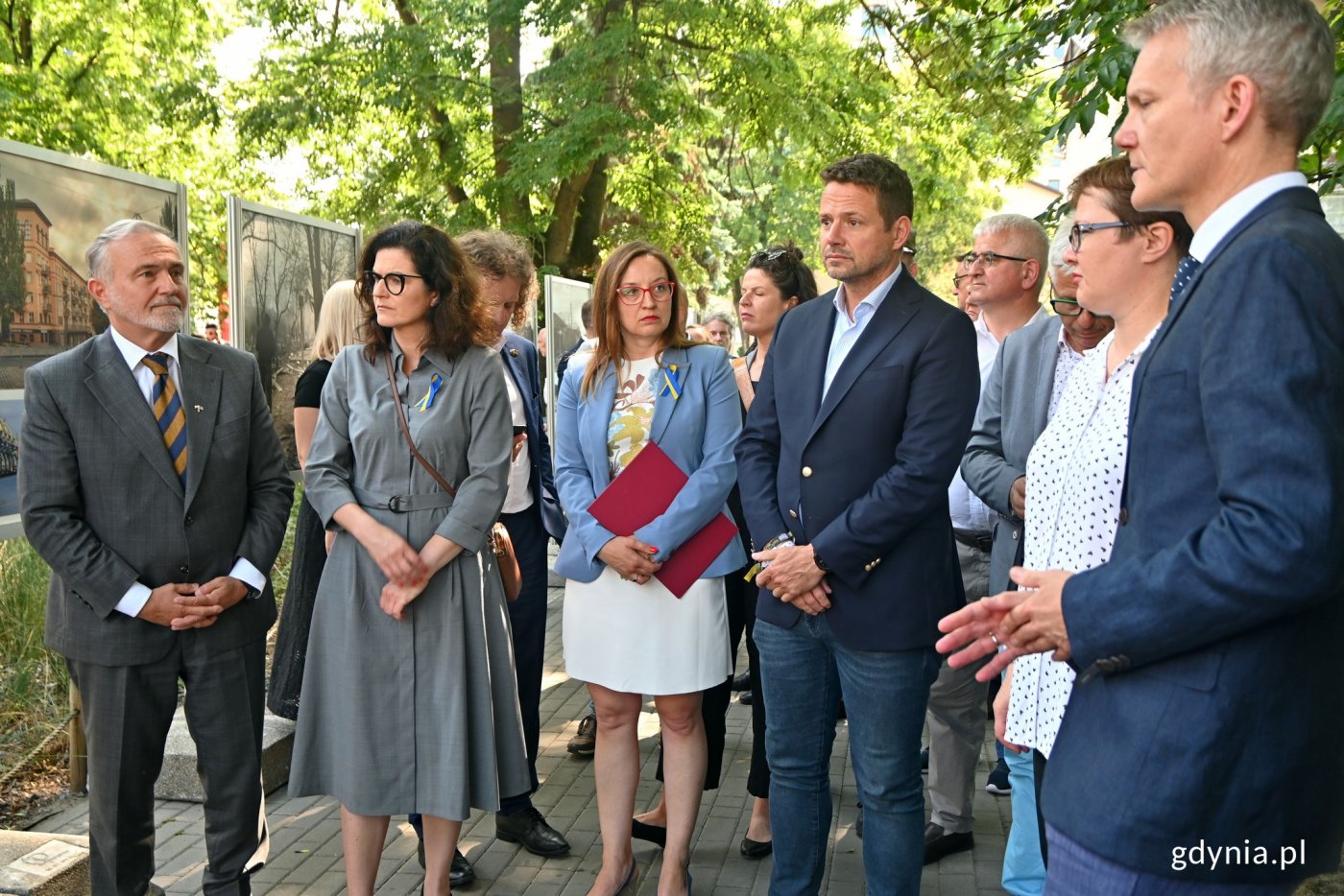 Polacy nieustannie solidaryzują się z ogarniętą wojną Ukrainą. Na Pomorzu działania pomocowe dla naszych przyjaciół zza wschodniej granicy ruszyły już w pierwszych dniach rosyjskiej agresji. Gesty wsparcia mają różną, nie tylko materialną formę. W kwietniu Gdynia nawiązała współpracę partnerską z Żytomierzem, a placowi w sercu miasta nadano nazwę Wolnej Ukrainy. Teraz w Trójmieście pojawiło się kolejne takie miejsce. W piątek, 1 lipca w Gdańsku otwarto skwer Bohaterskiego Mariupola. W uroczystości z tej okazji wzięli udział m.in. parlamentarzyści i samorządowcy, w tym prezydent Gdyni Wojciech Szczurek oraz prezydent Warszawy Rafał Trzaskowski. Pomorze wspiera Ukrainę od początku rosyjskiej agresji. Popłynęła tam m.in. pomoc humanitarna. Lokalne samorządy przyjęły i zapewniły pomoc tysiącom Ukraińców. Wielkie serca i wsparcie okazali też mieszkańcy naszego regionu. Wielu z nich przyjęło uchodźców pod swój dach. Solidarność ma jednak wiele odcieni. To nie tylko pomoc materialna, ale i drobne gesty. W kwietniu Gdynia nawiązała umowę partnerską z Żytomierzem, a placowi na końcu ul. Armii Krajowej nadano nazwę Wolnej Ukrainy. Podobne działanie podjął Gdańsk. W piątek, 1 lipca odbyło się otwarcie skweru Bohaterskiego Mariupola. Znajduje się on u zbiegu ulic Partyzantów i Matki Polki w Gdańsku, niedaleko Konsulatu Generalnego Federacji Rosyjskiej. W uroczystości wzięli udział m.in. parlamentarzyści, pomorscy samorządowcy, konsul generalny Ukrainy w Gdańsku, mieszkańcy oraz ukraińska społeczność. W wydarzeniu uczestniczył też Rafał Trzaskowski, prezydent Warszawy, który wspólnie z prezydent Gdańska Aleksandrą Dulkiewicz podpisał apel „Mariupol – Miasto Feniks”, mówiący o europejskiej odpowiedzialności za odbudowę dawnej świetności tego miasta. – Wszyscy jesteśmy tutaj razem, dlatego, że razem włączaliśmy się w pomoc Ukrainie i wszyscy wiemy, jak ta pomoc wyglądała. Płynęła przede wszystkim z serc Polek i Polaków oraz społeczeństwa obywatelskiego. Bez tego olbrzymiego gestu solidarności, tej pomocy by nie było. W Europie i na całym świecie dużo mówią o naszych otwartych sercach, o przyjmowaniu Ukraińców do naszych domów. Mówią o pomocy, która płynęła z naszych miast na Ukrainę. To my docieraliśmy z pomocą do naszych miast partnerskich. Dlatego patrzymy w przyszłość. Nie tylko chcemy pomagać tu i teraz, ale również chcemy pomagać w odbudowie niezależnej, silnej Ukrainy. I bardzo się cieszę, że jesteśmy tutaj, możemy otwierać skwer Bohaterskiego Mariupola. Dla nas Mariupol zawsze pozostanie symbolem – mówi Rafał Trzaskowski, prezydent Warszawy.– To bardzo poruszające, jak od pierwszych dni wojny w Ukrainie Polacy, Pomorzanie, gdańszczanie i gdynianie włączyli się w bardzo żywą, konkretną pomoc walczącej Ukrainie. To nie tylko przekazywanie darów, ale także przyjęcie tysięcy uciekinierów z Ukrainy, którzy poczuli się tutaj jak w domu. Staraliśmy się opiekować nimi jak najlepiej. Bardzo ważne jest, żeby utrwalać znaki pamięci. Tak jak plac Wolnej Ukrainy, tak skwer Bohaterskiego Mariupola będą zawsze przypominać, że pamiętamy. W naszych sercach powinny pozostać obrazy tej wojny, by z jednej strony ta wojna jak najszybciej się zakończyła, a z drugiej strony – nigdy nie zapomnieć o tych dniach, bo historia uczy – mówi Wojciech Szczurek, prezydent Gdyni. Mariupol od kilku lat jest miastem partnerskim Gdańska, dlatego ten gest solidarności ma szczególne znaczenie. – Ponad wszelkimi podziałami została przyjęta uchwała Rady Miasta nadająca temu skwerowi nazwę Bohaterskiego Mariupola. Miejsce nieprzypadkowe – myślę, że wielu z Państwa wie, dlaczego tutaj. Mariupol i Gdańsk łączą więzi przyjaźni już od 2014 roku. Dzisiaj jesteśmy tutaj nie tylko po to, aby oddać cześć bohaterskim obrońcom Mariupola, całemu miastu, ale także jesteśmy po to, żeby aktywnie, każdego dnia zabiegać o to, żeby rosyjska agresja w Ukrainie się skończyła i żebyśmy mogli razem z braćmi i siostrami Ukraińcami pomagać im odbudowywać niepodległe, wolne i demokratyczne państwo – mówi Aleksandra Dulkiewicz, prezydent Gdańska. Na skwerze można się zapoznać z wystawą „Mariupol – bohaterskie miasto” przygotowaną Narodowe Muzeum Historii Ukrainy w II Wojnie Światowej w Kijowie i Muzeum Gdańska. Galeria zdjęć Pobierz galerię Wojciech Szczurek - prezydent Gdyni, Aleksandra Dulkiewicz - prezydent Gdańska, Agnieszka Owczarczak - przewodnicząca Rady Miasta Gdańska, Rafał Trzaskowski - prezydent Warszawy, dr Ludmiła Rybczenko - zastępca dyrektora ds. naukowych Narodowego Muzeum Historii Ukrainy w II Wojnie Światowej w Kijowie oraz dr Janusz Marszalec - zastepca dyrektora ds. rozwoju oddziałów Muzeum Gdańska oglądają wystawę „Mariupol – bohaterskie miasto” // fot. Magdalena Czernek Pobierz zdjęcie Rafał Trzaskowski - prezydent Warszawy, Agnieszka Pomaska i Barbara Nowacka - posłanki na Sejm RP, Wojciech Szczurek - prezydent Gdyni oraz Jacek Karnowski - prezydent Sopotu podczas otwarcia skweru Bohaterskiego Mariupola // fot. Magdalena Czernek Pobierz zdjęcie Ukrainka uczestnicząca w uroczystości otwarcia skweru Bohaterskiego Mariupola // fot. Magdalena Czernek Pobierz zdjęcie Agnieszka Pomaska - posłanka na Sejm RP, Wojciech Szczurek - prezydent Gdyni, Barbara Nowacka - posłanka na Sejm RP, Agnieszka Owczarczak - przewodnicząca Rady Miasta Gdańska, Oleksandr Plodystyi - konsul generalny Ukrainy w Gdańsku, Rafał Trzaskowski - prezydent Warszawy, Mieczysław Struk - marszałek województwa pomorskiego, Aleksandra Dulkiewicz - prezydent Gdańska podczas odsłonięcia tablicy z nazwą skweru Bohaterskiego Mariupola // fot. Magdalena Czernek Pobierz zdjęcie Tablica z nazwą skweru Bohaterskiego Mariupola // fot. Magdalena Czernek Pobierz zdjęcie Uczestnicy uroczy
