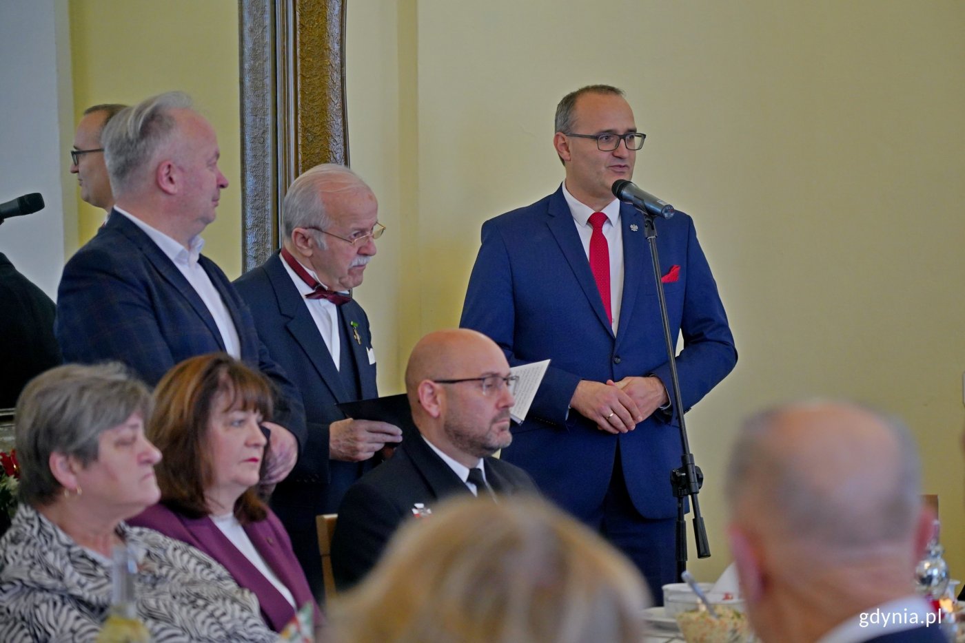 Była uroczysta atmosfera i świąteczny klimat. W poniedziałek, 22 grudnia w Klubie Marynarki Wojennej „Riwiera” odbyło się spotkanie świąteczne kombatantów i osób represjonowanych. Uczestniczyli w nim m.in. parlamentarzyści, wicewojewoda pomorski Emil Rojek, prezydent Gdyni Aleksandra Kosiorek oraz samorządowcy. Okres świąteczny to czas spotkań i serdeczności. To również okazja do złożenia życzeń i podziękowań. Z inicjatywy prezydent Gdyni Aleksandry Kosiorek zorganizowano wspólne spotkanie świąteczne kombatantów i osób represjonowanych. Zgromadzili się na nim przedstawiciele Stowarzyszenia Gdynian Wysiedlonych, Światowego Związku Żołnierzy Armii Krajowej, Związku Sybiraków, Gdyńskiej Rodziny Katyńskiej oraz stowarzyszeń Sierpień '80 i Grudzień '70. Wydarzenie odbyło się w poniedziałek, 22 grudnia w Klubie Marynarki Wojennej „Riwiera”. Bardzo zależało mi, aby w tym roku spotkać się z połączoną grupą środowisk kombatanckich i osób represjonowanych. Chciałabym państwu bardzo podziękować za przyjęcie tej inicjatywy z życzliwością i za to, że jesteśmy tutaj razem. Życzę państwu przede wszystkim spokojnych świąt, spotkań przy rodzinnym stole i szczęśliwego nowego roku. Każdy ma marzenia, które jeszcze nie doczekały się realizacji. Życzę, aby w przyszłym roku się one spełniły – powiedziała Aleksandra Kosiorek, prezydent Gdyni. Prezydent Gdyni Aleksandra Kosiorek przemawiająca podczas spotkania świątecznego kombatantów i osób represjonowanych (fot. Magdalena Czernek)Na spotkaniu gościli również m.in. parlamentarzyści, wicewojewoda pomorski, samorządowcy czy przedstawiciele Marynarki Wojennej RP. Całość poprowadzili Waldemar Świto – prezes gdyńskiego koła Związku Sybiraków oraz Krzysztof Jankowski – pełnomocnik prezydent Gdyni ds. kombatantów i osób represjonowanych.Podczas oficjalnych przemówień głos zabrały też sybiraczka i uczestniczka powstania warszawskiego. Jest mi niezmiernie miło, że tyle osób piastujących różne urzędy przyszło i poświęciło czas, żeby wspominać nasze cierpienie. Dziękujemy za życzenia i piękne słowa – powiedziała jedna z sybiraczek uczestniczących w spotkaniu.Chcę życzyć wszystkiego, co najlepsze. Żebyśmy nadal żyli i cieszyli się wolną Polską – z pełną świadomością, że trzeba kochać ludzi. A my, powstańcy warszawscy, chcemy nadal być pamiętani – dodała Krystyna Kodymowska ps. Stokrotka, uczestniczka powstania warszawskiego. Po części oficjalnej uczestnicy podzielili się opłatkiem, złożyli sobie życzenia i zasiedli przy wspólnym stole. Galeria zdjęć Pobierz galerię Poczet sztandarowy Związku Sybiraków podczas spotkania świątecznego kombatantów i osób represjonowanych (fot. Magdalena Czernek) Pobierz zdjęcie Od lewej: poseł Michał Kowalski, prezydent Gdyni Aleksandra Kosiorek, wicewojewoda pomorski Emil Rojek, posłanka Dorota Arciszewska-Mielewczyk oraz Ireneusz Trojanowicz – wiceprzewodniczący Rady Miasta Gdyni podczas spotkania świątecznego kombatantów i osób represjonowanych (fot. Magdalena Czernek) Pobierz zdjęcie Uczestnicy spotkania świątecznego kombatantów i osób represjonowanych, które odbyło się w Klubie Marynarki Wojennej „Riwiera” (fot. Magdalena Czernek) Pobierz zdjęcie Waldemar Świto – prezes gdyńskiego koła Związku Sybiraków przemawiający podczas spotkania świątecznego kombatantów i osób represjonowanych (fot. Magdalena Czernek) Pobierz zdjęcie Od prawej: wicewojewoda pomorski Emil Rojek, prezydent Gdyni Aleksandra Kosiorek i poseł Michał Kowalski podczas spotkania świątecznego kombatantów i osób represjonowanych (fot. Magdalena Czernek) Pobierz zdjęcie Uczestnicy spotkania świątecznego kombatantów i osób represjonowanych, które odbyło się w Klubie Marynarki Wojennej „Riwiera” (fot. Magdalena Czernek) Pobierz zdjęcie Od lewej: Krzysztof Jankowski – pełnomocnik prezydent Gdyni ds. kombatantów i osób represjonowanych, poseł Michał Kowalski, prezydent Gdyni Aleksandra Kosiorek, wicewojewoda pomorski Emil Rojek, posłanka Dorota Arciszewska-Mielewczyk oraz Ireneusz Trojanowicz – wiceprzewodniczący Rady Miasta Gdyni podczas spotkania świątecznego kombatantów i osób represjonowanych (fot. Magdalena Czernek) Pobierz zdjęcie Od lewej: wicewojewoda pomorski Emil Rojek, posłanka Dorota Arciszewska-Mielewczyk i Ireneusz Trojanowicz – wiceprzewodniczący Rady Miasta Gdyni podczas spotkania świątecznego kombatantów i osób represjonowanych (fot. Magdalena Czernek) Pobierz zdjęcie Uczestnicy spotkania świątecznego kombatantów i osób represjonowanych, które odbyło się w Klubie Marynarki Wojennej „Riwiera” (fot. Magdalena Czernek) Pobierz zdjęcie Wicewojewoda pomorski Emil Rojek przemawiający podczas spotkania świątecznego kombatantów i osób represjonowanych. Obok niego: Waldemar Świto – prezes gdyńskiego koła Związku Sybiraków oraz Krzysztof Jankowski – pełnomocnik prezydent Gdyni ds. kombatantów i osób represjonowanych (fot. Magdalena Czernek) Pobierz zdjęcie Uczestnicy spotkania świątecznego kombatantów i osób represjonowanych, które odbyło się w Klubie Marynarki Wojennej „Riwiera” (fot. Magdalena Czernek) Pobierz zdjęcie Andrzej Krajniak ze Stowarzyszenia Gdynian Wysiedlonych przemawiający podczas spotkania świątecznego kombatantów i osób represjonowanych. Obok niego: Waldemar Świto – prezes gdyńskiego koła Związku Sybiraków oraz Krzysztof Jankowski – pełnomocnik prezydent Gdyni ds. kombatantów i osób represjonowanych (fot. Magdalena Czernek) Pobierz zdjęcie Krystyna Kodymowska ps. Stokrotka, uczestniczka powstania warszawskiego, przemawiająca podczas spotkania świątecznego kombatantów i osób represjonowanych (fot. Magdalena Czernek) Pobierz zdjęcie Uczestnicy spotkania świątecznego kombatantów i osób represjonowanych, które odbyło się w Klu