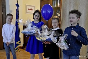 94. rocznicę nadania praw miejskich Gdyni uroczyście świętuje całe miasto i jego mieszkańcy. O uczczeniu urodzin miasta nie zapomnieli również uczniowie gdyńskich szkół. Przygotowali oni z tej okazji wiele atrakcji. Były m.in. wystawy tematyczne, quiz, występy artystyczne oraz kartki z życzeniami dla jubilatki. A jak urodziny, to nie mogło również zabraknąć słodkiego poczęstunku. Z okazji święta miasta gdyńskie szkoły zorganizowały urodzinowe akcje z wieloma niespodziankami. W tak ważnym dniu nie mogło zabraknąć lokalnych akcentów i dobrej zabawy. To wspólna inicjatywa Forum Rad Rodziców, Gdyńskiego Ośrodka Doskonalenia Nauczycieli oraz młodych gdynian. Huczne obchody odbyły się m.in. w Szkole Podstawowej nr 17 na Grabówku. Uczniowie przygotowali specjalne życzenia dla Gdyni oraz tablicę z prezentacją przedstawiającą dzieje miasta od 1926 do 2020 roku. Mogli też poznać jego modernistyczną architekturę, oglądając wystawę wyjątkowych zdjęć. – To, co dzieci przeżyją, zrobią przez doświadczenie, to zapamiętają. A historia miasta to w pewnym sensie też historia tych dzieci. Mamy uczennicę, która również świętuje dziś swoje 12. urodziny. Jest więc dużo młodsza od miasta, ale obchodzi to samo święto – mówi Monika Małyszko, dyrektor Szkoły Podstawowej nr 17 w Gdyni. Uczniowie nie poprzestali jednak na prezentacjach. Był też quiz z pytaniami o historię Gdyni, w którym każdy mógł sprawdzić swoją wiedzę o mieście. Szczególnym i oryginalnym prezentem dla dzisiejszej 94-letniej jubilatki okazała się również piosenka „Spacerek po Gdyni”. Uczniowie przygotowali ją wraz z gronem pedagogicznym i razem odśpiewali.– Cieszymy się, że możemy to zrobić wspólnie – my jako rodzice, nauczyciele i uczniowie. Imponuje nam zaangażowanie naszych dzieci. Własnoręcznie zrobiły kartki z życzeniami dla Gdyni. Przygotowały też, wspólnie z gronem nauczycielskim, mnóstwo innych niespodzianek, m.in. piosenkę o Gdyni. Kto wie, może to będzie nowy hymn dla naszego miasta – mówi Anna Galica, przedstawicielka Rady Rodziców Szkoły Podstawowej nr 17 w Gdyni. Słowa tej urodzinowej piosenki brzmią tak: Jestem młodym gdynianinem,Kocham miasto, w którym żyję, mieszkam, dorastam, uczę się. Znam ja wszystkie jej uliceI podziwiam też dzielnice, bo miasto swoje dobrze znam. Refren: Gdynia swe uroki ma – pójdź na spacerek,Gdynia swe uroki ma – Kościuszki skwerek,Gdynia swe uroki ma – Kamienna Góra,Bulwar nad morzemGdynia swe uroki ma. Chociaż Gdynia miasto młodeJej historia ma urodęKwiatkowski, Wenda, Abraham. Możesz zwiedzić „Błyskawicę”I w muzeum rusznicę,By bliżej poznać Gdynię mą. Urodzinowe wydarzenia przygotował też Zespół Szkolno-Przedszkolny nr 5 z Pogórza, gdzie m.in. przygotowano specjalną wystawę, a także odbył się pokaz wiązania węzłów żeglarskich. Swój wkład miała również Szkoła Podstawowa nr 37 oraz 17 Liceum Ogólnokształcące z Chwarzna-Wiczlina. Ich uczniowie przygotowali artystyczny happening, a także wystawy tematyczne. Atrakcje przygotowano także w Zespole Szkolno-Przedszkolnym nr 4 na Karwinach. Tam również nie zabrakło artystycznych przedsięwzięć. We wszystkich powyższych szkołach uczniowie mogli też liczyć na słodki poczęstunek. Ciastami i deserami częstowali młodych gdynian nauczyciele, przedstawiciele Rad Rodziców i samorządów uczniowskich, a także Wojciech Jankowski – dyrektor Gdyńskiego Ośrodka Doskonalenia Nauczycieli. Młodzi gdynianie złożyli również życzenia Gdyni, a także powiedzieli za co lubią swoje miasto. – Życzę miastu, aby jak najdłużej trwało i żeby się rozwijało. Lubię Gdynię, bo można tutaj zwiedzić wiele miejsc – mówi Marta z klasy 6A w Szkole Podstawowej nr 17 w Gdyni. – Lubię Gdynię, bo ma wiele atrakcji i dużo miejsc do zwiedzania. Można też tu spotkać wielu turystów – mówi Oliwka, uczennica klasy 6A w Szkole Podstawowej nr 17 w Gdyni. – Z okazji urodzin życzymy, żeby Gdynia się rozwijała, i żeby było wiele placów zabaw i parków – mówi Róża z klasy 6A w Szkole Podstawowej nr 17 w Gdyni. Uczniowie u prezydenta Świętowanie urodzin miasta nie skończyło się jednak tylko w szkolnych murach. Wyjątkowa wizyta odbyła się również w gdyńskim magistracie. Uczniowie Zespołu Szkolno-Przedszkolnego nr 5, wraz z nauczycielami, spotkali się z prezydentem Wojciechem Szczurkiem. Młodzi gdynianie przekazali na jego ręce laurki z życzeniami dla miasta. – Bardzo Wam dziękuję za tę inicjatywę. Cieszę się, że młodzi gdynianie pamiętają o urodzinach Gdyni. To dla nas bardzo ważny dzień. Dzięki temu, co wydarzyło się 10 lutego 1926 roku, żyjemy w nowoczesnym mieście. Warto, abyście na kolejnych etapach edukacji poznawali także historię naszego miasta, bo jest przepiękna – powiedział podczas spotkania Wojciech Szczurek, prezydent Gdyni. Galeria zdjęć Pobierz galerię Akcja szkolna z okazji urodzin Gdyni odbyła się m.in. w Szkole Podstawowej nr 17 // fot. Magdalena Czernek Pobierz zdjęcie Akcja szkolna z okazji urodzin Gdyni odbyła się m.in. w Szkole Podstawowej nr 17 // fot. Magdalena Czernek Pobierz zdjęcie Akcja szkolna z okazji urodzin Gdyni odbyła się m.in. w Szkole Podstawowej nr 17 // fot. Magdalena Czernek Pobierz zdjęcie Akcja szkolna z okazji urodzin Gdyni odbyła się m.in. w Szkole Podstawowej nr 17 // fot. Magdalena Czernek Pobierz zdjęcie Akcja szkolna z okazji urodzin Gdyni odbyła się m.in. w Szkole Podstawowej nr 17 // fot. Magdalena Czernek Pobierz zdjęcie Akcja szkolna z okazji urodzin Gdyni odbyła się m.in. w Szkole Podstawowej nr 17 // fot. Magdalena Czernek Pobierz zdjęcie Akcja szkolna z okazji urodzin Gdyni odbyła się m.in. w Szkole Podstawowej nr 17 // fot. Magdalena Czernek Pobierz zdjęcie Atrakcje z okazji urodzin Gdyni zorganizowano w gdyńskich szkołach // fot. materiały pra