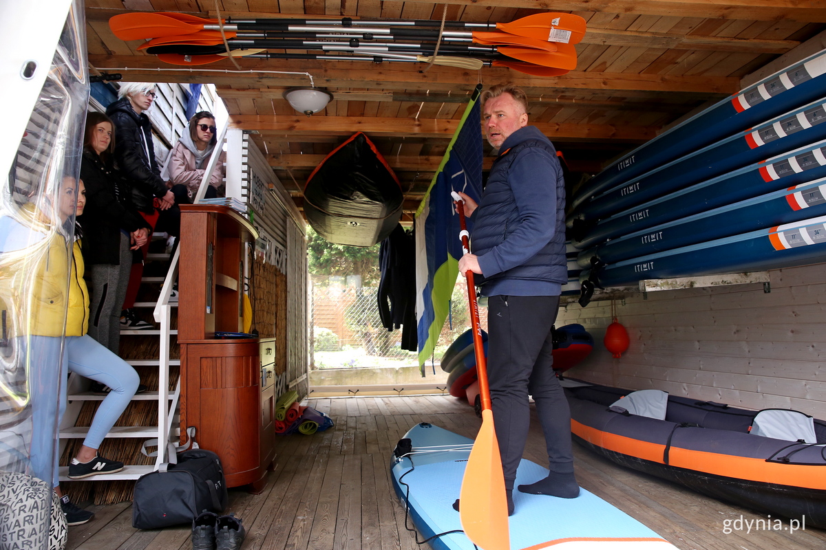 Grupa zapaleńców z Orłowa przełamuje stereotyp, że w cieniu klifu i mola nie uprawia się morskich aktywności prócz kąpieli. Stowarzyszenie „Orłowo przy plaży” uruchomiło tu wypożyczalnię SUP-ów i innego sprzętu wodnego. Ofertę uzupełnia joga i spacery historyczne. Sezon startuje w maju.W tej urokliwej dzielnicy miasta z wypływaniem w morze kojarzeni do tej pory byli raczej wyłącznie rybacy. Nie ma tu przystani, a morze co jakiś czas pożera plażę, więc teoretycznie warunków do uprawiania aktywności morskiej poza kąpielami brak. Nie zgadzają się z tym lokalni pasjonaci ze stowarzyszenia „Orłowo przy plaży”. 5 minut Drewniana, pomalowana na biało wiata ze sprzętem wodnym, którą zbudowali własnymi rękami, wcale nie stoi przy plaży, lecz przy ulicy Balladyny 3. Pod wiatą leżakują SUP-y, na wózku nadmuchiwana żaglówka, pod sufitem wiszą gumowe kajaki i deski do bodyboardingu. Klimat jak najbardziej morski, ale morze widać dopiero z tarasu nad wiatą. Ale jak przekonuje Andrzej Rybicki, prezes stowarzyszenia, to żaden problem, bo wystarczą 4,5 minuty, by z wybraną jednostką pływającą zejść na plażę, a 5 minut by wrócić – bo z powrotem jest lekko pod górkę. - Na przekór wszystkim stwierdziliśmy, że udowodnimy, że można też to robić w Orłowie, że wcale nie potrzebujemy dużej infrastruktury, że w sumie potrzebujemy kawałka plaży, żeby tylko ten nasz sprzęt zwodować i pływać, bawić się i doświadczać przygód, o których nam się do tej pory nawet nie marzyło – mówi Andrzej Rybicki. Założyciel stowarzyszenia zafascynował się mieszkańcami nadmorskich miast w Holandii, Norwegii czy Szkocji, gdzie większość z nich pływa różnymi łodziami, kajakami, żegluje lub surfuje, i postanowił zarażać tą aktywnością gdynian, bo jak twierdzi – w mieście nie brakuje klubów żeglarskich i łatwo o wynajem jachtu lub dużej łodzi motorowej, ale o drobny sprzęt pływający jest już trudniej. Dlatego stawiają na lekki sprzęt, który łatwo przetransportować w owe 5 minut z wypożyczalni na plażę i z którego może skorzystać niemal każdy. - Przede wszystkim są to SUP-y – to najzdrowszy sport, ponieważ podczas pływania na nich każdy mięsień naszego ciała jest wykorzystywany. Aktywność ta świetnie kształtuje sylwetkę i prawidłową postawę. No i taka ciekawostka - podczas jednej godziny pływania na SUP-ie spalamy aż do 700 kalorii – przekonuje Sylwester Jurczyk, menedżer wypożyczalni „Orłowo przy plaży”. - Mamy też kajaki, bodyboarding, pontony dla dzieci i szybką, lekką żaglówkę Tribord 5S. Ponadto wypożyczamy pianki i oczywiście kamizelki dla dorosłych i dzieci. Żaglówka Tribord 5S w ofercie wypożyczalni "Orłowo przy plaży". Fot. Stowarzyszenie "Orłowo przy plaży" - Ale przede wszystkim nie chcielibyśmy, żeby przychodzić w to miejsce jak do takiej zwyczajnej wypożyczalni. My to traktujemy jako manufakturę przygody morskiej, takiej prawdziwej z falami, z wiatrem, z piaskiem za uszami. No i chcemy pokazać Orłowo, piękno tego miejsca z perspektywy wody, czyli klif, ale po przepłynięciu pod molem – dodaje Andrzej Rybicki. Dokąd można wybrać się SUP-em lub kajakiem, czy żaglówką? Sylwester Jurczyk rekomenduje nie odpływać dalej niż 500 metrów od linii brzegu. A zapłynąć można śmiało do Śródmieścia Gdyni, podziwiając z wody klif, lub kierując się w przeciwną stronę – odwiedzić molo w Sopocie. Jak zarażać, to od dziecka Ich ambicją jest wychowanie morskie młodego pokolenia, dlatego podjęli współpracę z orłowskimi szkołami, dla których uczniów, ich rodziców i kadry nauczycielskiej przewidzieli specjalne rabaty. Ma to mieć także walor integracyjny. - Są trzy kluczowe słowa, które zawsze powtarzamy jak mantrę jeżeli chodzi o stowarzyszenie. To jest: edukacja, czyli chcemy rzeczywiście dać możliwość nauczenia się pływania na czymkolwiek na wodzie, zaczynając od SUP-a przez kajak po tę małą żaglówkę. Integracja, czy to integracja towarzyska czy rodzinna, ale i swego rodzaju egzemplifikacja, czyli pokazanie na własnym przykładzie, jak fajnie można spędzić czas w alternatywny sposób właśnie na wodzie – tłumaczy prezes stowarzyszenia. Integracja, o której mówi Rybicki, ma zachodzić na kilku poziomach – dzieci z rodzicami, uczniów z nauczycielami czy międzyklasowej. Ale także grup znajomych i turystów – stąd specjalna oferta stworzona dla gości orłowskich hoteli. Andrzej Rybicki przeprowadza "szkolenie na sucho" z pływania na SUP-ach dla pracowników orłowskich hoteli. Fot. Przemysław Kozłowski - Wydaje mi się, że ta oferta bardzo może pomóc w pokazaniu Orłowa z nieco innej perspektywy - ze strony morza, spędzenia czasu nieco bardzie aktywnie i kreatywnie, ze swoją rodziną i z dziećmi. Dodatkowo są oferowane inne usługi - wycieczki po Orłowie z przewodnikiem, z pokazaniem pięknych miejsc historycznych i przybliżeniem turystom oraz naszym gościom nieco historii tego miejsca, a także zajęcia z jogi na plaży – mówi Katarzyna Damer z hotelu Villa Lubicz, która właśnie przechodzi szkolenie „na sucho” z obsługi SUP-a wraz z pracownikami kilku innych hoteli, a pół godziny wcześniej „witała słońce” na plaży. Bo aktywność morska nie jest jedyną, jaką proponuje stowarzyszenie. Dla ciała i dla ducha Wiatr wzbija drobinki piasku i unosi białe grzywy fal – dziś nie jest bezpieczna pogoda na pływanie, jeśli nie ma się wprawy i doświadczenia. Ale na jogę - jak najbardziej, zwłaszcza, że wiosenne słońce miło grzeje. Grupa pracowników orłowskich hoteli ćwiczy więc pod okiem Marty Sendal „powitanie słońca” - podstawową praktykę jogińską, od której mogą zacząć tę aktywność początkujący. Stowarzyszenie bowiem zgromadziło wokół siebie młodych ludzi, we współpracy z którymi wzbogaca swoją ofertę.