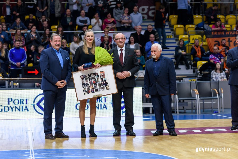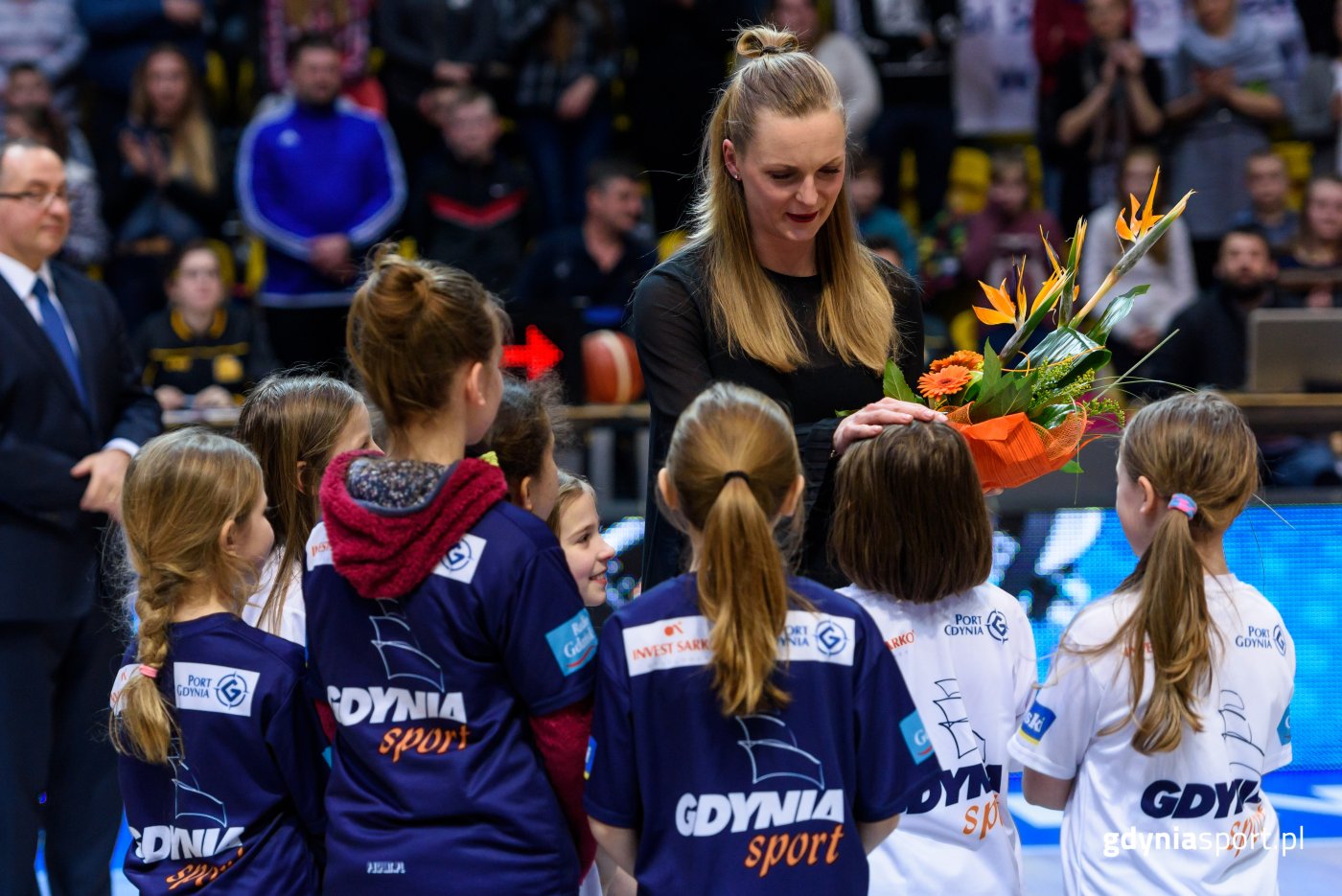 Koszykówka kobiet na najwyższym krajowym poziomie wróciła nad morze! Od piątku do niedzieli (19-21 stycznia 2018 roku) w Gdynia Arenie rozegrano turniej Final Six Pucharu Polski. W wielkim finale Artego Bydgoszcz pokonało Wisłę Can-Pack Kraków 77:53. Prestiżowy mecz był doskonałą okazją do rozpoczęcia obchodów 25-lecia koszykówki w Gdyni oraz oficjalnego pożegnania Agnieszki Bibrzyckiej, w którym wziął udział m.in. prezydent Gdyni Wojciech Szczurek.Ceremonia pożegnania legendy gdyńskiej koszykówki odbyła się w przerwie finału. Agnieszka Bibrzycka nie kryła łez wzruszenia, a kibice, którzy zawdzięczają jej mnóstwo pięknych, podziękowali owacją na stojąco. Wielokrotna reprezentantka Polski o zakończeniu kariery poinformowała już dwa lata temu, gdy okazało się, że spodziewa się drugiego dziecka. Finał Pucharu Polski wykorzystano do pożegnania uroczystego, godnego najlepszej koszykarki Europy 2003 roku.- Mieliśmy szczęście, że przez tyle lat mogliśmy podziwiać na parkiecie tak wspaniałą zawodniczkę. Dziękuję za wszystkie wspaniałe chwile i za profesjonalną postawę, na której powinny wzorować się młode koszykarki – powiedział Wojciech Szczurek. Prezydent Gdyni wręczył „Bibie” kwiaty oraz pamiątkową koszulkę „Ambasadora gdyńskiego sportu”. Wspaniałej kariery gratulowali również m.in.: prezes Polskiego Związku Koszykówki Grzegorz Bachański oraz przedstawiciele kibiców. Koszykarka, będąca obecnie menadżerem Basketu 90 Gdynia, podziękowała z kolei wszystkim, których podczas kariery spotkała na swojej drodze. - Na końcu dziękuję mojej mamie, która dała mi piłkę do ręki i nauczyła grać – dodała wzruszona. Agnieszka Bibrzycka występowała w gdyńskim klubie w latach 2001-2006. Nad morze przeprowadziła się ze Śląska, zaledwie jako 19-latka. W żółto-niebieskich barwach zdobyła cztery tytuły mistrza Polski. Jej koleżankami z drużyny były m.in.: Małgorzata i Katarzyna Dydek oraz Joanna Cupryś. Poza sukcesami odniesionymi w Gdyni, w jej dorobku są również występy w amerykańskiej lidze WNBA, złote medale mistrzostw Rosji i Turcji, czy zwycięstwo w Eurolidze ze Spartakiem Moskwa.Pożegnanie „Biby” to pierwszy z akcentów jubileuszu 25-lecia koszykówki kobiet w Gdyni, który rozpoczęto właśnie podczas finału Pucharu Polski. Niewiele zabrakło, by to gospodynie wyszły w niedzielę na parkiet. W półfinale zawodniczki Basketu 90 Gdynia, dopiero po dogrywce, przegrały z Wisłą Can-Pack Kraków 75:82. Galeria zdjęć Pobierz galerię Święto koszykówki w Gdyni // fot. gdyniasport.pl Pobierz zdjęcie Święto koszykówki w Gdyni // fot. gdyniasport.pl Pobierz zdjęcie Święto koszykówki w Gdyni // fot. gdyniasport.pl Pobierz zdjęcie Święto koszykówki w Gdyni // fot. gdyniasport.pl Pobierz zdjęcie Święto koszykówki w Gdyni // fot. gdyniasport.pl Pobierz zdjęcie Święto koszykówki w Gdyni // fot. gdyniasport.pl Pobierz zdjęcie Święto koszykówki w Gdyni // fot. gdyniasport.pl Pobierz zdjęcie Święto koszykówki w Gdyni // fot. gdyniasport.pl Pobierz zdjęcie Święto koszykówki w Gdyni // fot. gdyniasport.pl Pobierz zdjęcie Święto koszykówki w Gdyni // fot. gdyniasport.pl Pobierz zdjęcie Święto koszykówki w Gdyni // fot. gdyniasport.pl Pobierz zdjęcie Święto koszykówki w Gdyni // fot. gdyniasport.pl Pobierz zdjęcie Święto koszykówki w Gdyni // fot. gdyniasport.pl Pobierz zdjęcie Święto koszykówki w Gdyni // fot. gdyniasport.pl Pobierz zdjęcie Święto koszykówki w Gdyni // fot. gdyniasport.pl Pobierz zdjęcie Święto koszykówki w Gdyni // fot. gdyniasport.pl Pobierz zdjęcie Święto koszykówki w Gdyni // fot. gdyniasport.pl Pobierz zdjęcie Święto koszykówki w Gdyni // fot. gdyniasport.pl Pobierz zdjęcie Święto koszykówki w Gdyni // fot. gdyniasport.pl Pobierz zdjęcie Święto koszykówki w Gdyni // fot. gdyniasport.pl Pobierz zdjęcie Święto koszykówki w Gdyni // fot. gdyniasport.pl Pobierz zdjęcie Święto koszykówki w Gdyni // fot. gdyniasport.pl Pobierz zdjęcie Święto koszykówki w Gdyni // fot. gdyniasport.pl Pobierz zdjęcie Święto koszykówki w Gdyni // fot. gdyniasport.pl Pobierz zdjęcie Święto koszykówki w Gdyni // fot. gdyniasport.pl Pobierz zdjęcie Święto koszykówki w Gdyni // fot. gdyniasport.pl Pobierz zdjęcie Święto koszykówki w Gdyni // fot. gdyniasport.pl Pobierz zdjęcie Święto koszykówki w Gdyni // fot. gdyniasport.pl Pobierz zdjęcie Święto koszykówki w Gdyni // fot. gdyniasport.pl Pobierz zdjęcie Święto koszykówki w Gdyni // fot. gdyniasport.pl Pobierz zdjęcie Święto koszykówki w Gdyni // fot. gdyniasport.pl Pobierz zdjęcie Warunki pobierania Wszelkie prawa do zdjęć lub grafik prezentowanych w ramach portalu, należą do Prowadzącego portal lub do podmiotów z nim współpracujących i podlegają ochronie prawnej. Prowadzący portal zezwala na kopiowanie i przedstawianie utworów jedynie w celach niekomercyjnych oraz pod warunkiem zachowania go w oryginalnej postaci i zachowaniem kontekstu tematu, do którego zostało wykorzystaneprzez redakcję gdynia.pl. Opublikowane materiały powinny zawsze zawierać źródło, czyli adres strony www.gdynia.pl. Na publikowanie utworów w innych celach wymagana jest zgoda właściciela strony czyli Prowadzącego portal. Opublikowano: 22.01.2018 11:36 Autor: _Agnieszka Wołowicz-Bińkowska (a.wolowicz@gdynia.pl) Zmodyfikowano: 22.01.2018 12:12 Zmodyfikował: Agnieszka Janowicz