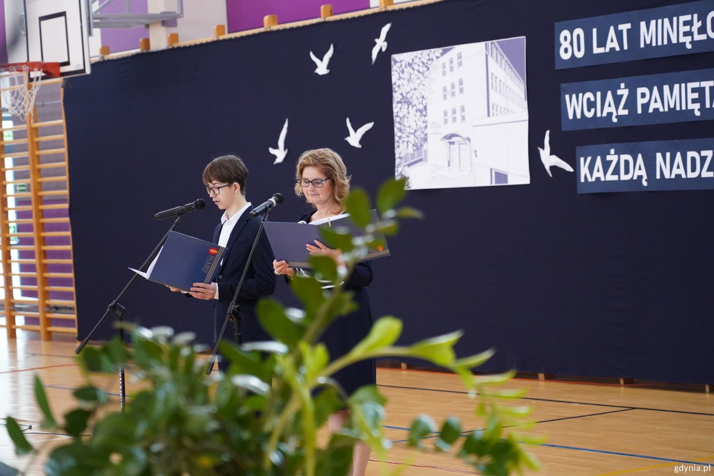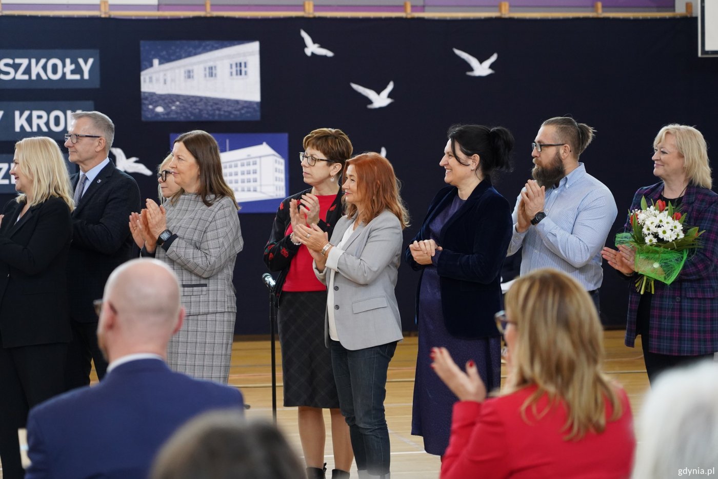 Autorska piosenka o Gdyni, hymn szkoły, tort i mnóstwo zacnych gości – tak Szkoła Podstawowa numer 18 im. Kornela Makuszyńskiego świętowała swoje 80. urodziny. To jedna z najstarszych placówek oświatowych w Gdyni. Zaczynali w baraku przy ówczesnej ul. Czołgistów, a obecnie znajdują się na Kamiennej Górze. Szkoła Podstawowa nr 18 im. Kornela Makuszyńskiego była jedną z pierwszych placówek oświatowych w Gdyni. Powstała w 1946 roku. Pierwsza siedziba szkoły – z dziewięciorgiem nauczycieli – mieściła się na ówczesnej ul. Czołgistów (dzisiejsza Al. Marszałka Piłsudskiego). Ale z szybko rozwijającym się miastem, rozrastała się też szkoła, która potrzebowała coraz więcej przestrzeni dla nowych uczniów. Dlatego w 1954 roku placówkę przeniesiono do budynku na Kamiennej Górze przy ul. Krasickiego 28. To tam właśnie w piątek, 13 lutego szkoła świętowała swój 80. jubileusz.Wśród urodzinowych gości pojawili się m.in.: Grzegorz Krygier, pomorski kurator oświaty, Oktawia Gorzeńska, wiceprezydentka Gdyni, Ireneusz Trojanowicz, wiceprzewodniczący Rady Miasta Gdyni, Iwona Tanewska, naczelnik Wydział Edukacji UMG, były prezydent Gdyni Wojciech Szczurek i byli dyrektorzy SP nr 18 oraz dyrektorzy i wicedyrektorzy innych gdyńskich placówek. Nie zabrakło również rodziców i uczniów. Wideo i montaż: Sławomir Okoń To dzisiaj szczególne święto, bo zbiega się z czasem, kiedy życzymy Gdyni kolejnych stu lat, a więc święto miasta i święto tej pięknej placówki, która zawsze dbała o rozwój uczniów, ale też takie indywidualne wsparcie dla każdego z nich. Życzymy, żeby się nie zmieniali i nadal budowali tak wspaniałą jakość na mapie Gdyni, ale też Pomorza – życzył podczas uroczystości Grzegorz Kryger, pomorski kurator oświaty.W przepiękny 80. jubileusz życzę całej społeczności, czyli pani dyrektor, dyrekcji szkoły, uczennicom i uczniom, nauczycielkom, nauczycielom, kadrze, również tej niepedagogicznej, rodzicom, wszystkiego co najlepsze na co najmniej kolejnych 80 lat. Tak pięknego rozwoju i jakości, którą od wielu lat ta społeczność wspólnie wypracowuje każdego dnia – dołącza do życzeń wiceprezydentka Gdyni Oktawia Gorzeńska. Z okazji jubileuszu uczniowie przygotowali specjalny program artystyczny. Goście wysłuchali autorskiej piosenki o Gdyni w wykonaniu pierwszoklasistów, hymnu szkoły, do którego słowa napisała młodzież oraz obejrzeli przedstawienie zespołu teatralnego Kameleon.Występ uczniów Szkoły Podstawowej nr 18 (fot. Magda Śliżewska) Dzieci przygotowały piosenkę o Gdyni, więc jeżeli państwo się dobrze wsłuchacie,rozpoznacie znane miejsca naszego miasta. Młodzież przygotowała hymn, którego słowa sama stworzyła w ramach konkursu ogłoszonego przed jubileuszem. Był oczywiście tort i to wszystko, co jest na urodzinach – dużo radości, uśmiechu i spotkań po latach – podsumowuje Eliza Zaborowska-Kempa, dyrektorka Szkoły Podstawowej nr 18 w Gdyni. I choć przez te 80 lat zmienił się świat, miasto i sama placówka, to jedno pozostało bez zmian: jakość edukacyjnych działań SP nr 18. Dziś to szkoła, która promuje aktywność i zdrowie, korzysta z nowych technologii, dba o dobrostan uczniów i uczennic oraz wspiera ich w odkrywaniu mocnych stron. Bo tutaj tradycja spotyka się z nowoczesnością – w codziennej pracy i relacjach międzyludzkich. Galeria zdjęć Pobierz galerię Od prawej: Oktawia Gorzeńska, wiceprezydentka Gdyni i Eliza Zaborowska-Kempa, dyrektorka Szkoły Podstawowej nr 18 w Gdyni (fot. Magda Śliżewska) Pobierz zdjęcie Prowadzący uroczystość: pani Renata i Piotr (fot. Magda Śliżewska) Pobierz zdjęcie Grzegorz Kryger, pomorski kurator oświaty (fot. Magda Śliżewska) Pobierz zdjęcie Poczet sztandarowy (fot. Magda Śliżewska) Pobierz zdjęcie Na zdjęciu m.in. Eliza Zaborowska-Kempa, dyrektorka Szkoły Podstawowej nr 18 w Gdyni i Elżbieta Cupiał, dyrektorka MDK w Gdyni (fot. Magda Śliżewska) Pobierz zdjęcie Występ uczniów SP nr 18 w Gdyni (fot. Magda Śliżewska) Pobierz zdjęcie Dyrektorzy gdyńskich placówek oświatowych składają życzenia dyrektorce SP nr 18 (fot. Magda Śliżewska) Pobierz zdjęcie Dyrektorzy gdyńskich placówek oświatowych składają życzenia dyrektorce SP nr 18 (fot. Magda Śliżewska) Pobierz zdjęcie Na zdjęciu m.in.: Iwona Tanewska, naczelniczka Wydziału Edukacji UMG (fot. Magda Śliżewska) Pobierz zdjęcie Na zdjęciu (od prawej): Eliza Zaborowska-Kempa, dyrektorka Szkoły Podstawowej nr 18 w Gdyni i Joanna Rutkowska, dyrektora Szkoły Muzycznej I i II stopnia w Gdyni (fot. Magda Śliżewska) Pobierz zdjęcie Na zdjęciu m.in.: Grzegorz Krygier, pomorski kurator oświaty, Oktawia Gorzeńska, wiceprezydentka Gdyni, Ireneusz Trojanowicz, wiceprzewodniczący Rady Miasta Gdyni, Iwona Tanewska, naczelnik Wydział Edukacji UMG, były prezydent Gdyni Wojciech Szczurek i byli dyrektorzy SP nr 18, dyrektorzy innych gdyńskich placówek oraz rodzice i uczniowie (fot. Magda Śliżewska) Pobierz zdjęcie Jubileusz SP nr 18 w Gdyni (fot. Magda Śliżewska) Pobierz zdjęcie Jubileusz SP nr 18 w Gdyni (fot. Magda Śliżewska) Pobierz zdjęcie Na zdjęciu m.in.: Grzegorz Krygier, pomorski kurator oświaty, Oktawia Gorzeńska, wiceprezydentka Gdyni, Ireneusz Trojanowicz, wiceprzewodniczący Rady Miasta Gdyni, Iwona Tanewska, naczelnik Wydział Edukacji UMG, były prezydent Gdyni Wojciech Szczurek i byli dyrektorzy SP nr 18, dyrektorzy innych gdyńskich placówek oraz rodzice i uczniowie (fot. Magda Śliżewska) Pobierz zdjęcie Eliza Zaborowska-Kempa, dyrektorka Szkoły Podstawowej nr 18 (fot. Magda Śliżewska) Pobierz zdjęcie Przedstawienie zespołu teatralnego Kameleon (fot. Magda Śliżewska) Pobierz zdjęcie Na zdjęciu m.in.: Wiesław Kosakowski, dyrektor III LO i i Andrzej Barczak, były dyrektor SP nr 18 (fot. Magda Śliżewska) Pobierz zdjęcie Urodzinowy tort (fot. Magda Śli
