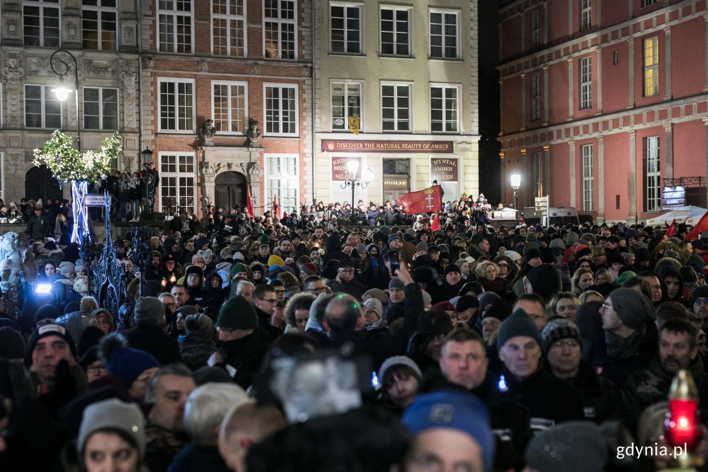 Tysiące mieszkańców Trójmiasta tuż po godzinie 18.00, w samym sercu Gdańska zapaliło znicze i oddało hołd pamięci tragicznie zmarłego prezydenta, Pawła Adamowicza w trakcie wiecu przeciwko przemocy i nienawiści. Wśród nich prezydent Gdyni wraz ze swoimi zastępcami i samorządowcami. W uroczystości przed Dworem Artusa na Długim Targu wzięli udział mieszkańcy Gdańska, Gdyni, Sopotu, przedstawiciele trójmiejskich samorządów, przewodniczący Rady Europejskiej, parlamentarzyści i kapłani różnych wyznań, którzy minutą ciszy uczcili pamięć Pawła Adamowicza.- „Drogie gdańszczanki, drodzy gdańszczanie" - tak zawsze swoje przemówienia rozpoczynał prezydent, Paweł Adamowicz. Jednak już więcej do mieszkanek i mieszkańców swojego ukochanego Gdańska nie zwróci się w ten sposób. Prezydent Paweł Adamowicz nie żyje. Wczoraj chodził tymi ulicami i kwestował dla Wielkiej Orkiestry Świątecznej Pomocy. Pozdrawiał przechodniów, a oni zatrzymywali się, rozmawiali z nim, odwzajemniali jego uśmiech i byli dla tego wyjątkowego wolontariusza bardzo szczodrzy - wspominała Pawła Adamowicza Aleksandra Dulkiewicz, wiceprezydent Gdańska. - Jesteśmy tu razem, aby przede wszystkim oddać hołd i przywołać pamięć Pawła Adamowicza. Ale też bardzo wyraźnie powiedzieć, że ta śmierć to efekt brutalizacji życia publicznego w naszym kraju - mówił Wojciech Szczurek, prezydent Gdyni. - To wielkie zobowiązanie dla polityków, dziennikarzy i każdego, kto uczestniczy w debacie publicznej. Czasem słowa materializują się, dlatego wszyscy musimy zachować większą powściągliwość. Wydarzyła się śmierć - i to jeszcze w dniu, który większości Polaków kojarzy się z dobrem - tak bezsensowna, że trudno się z tym pogodzić - dodał. - Drogi Pawle, byłeś zawsze tam, gdzie trzeba było pokazać dobrą i odważną twarz i stanąć przeciwko złu. Pamiętam, z jakim wzruszeniem śpiewałeś z nami pieśń Solidarności „Modlitwa o Wschodzie Słońca”. Chce Ci kochany Pawle dzisiaj obiecać, w imieniu nas wszystkich - gdańszczan, Polaków i Europejczyków, że dla Ciebie i dla nas obronimy Gdańsk, Polskę i Europe przed nienawiścią i pogardą. Przyrzekam Ci. Żegnaj - mówił Donald Tusk, przewodniczący Rady Europejskiej.- To wielka tragedia, tak samo dla Gdańska, jak i dla Polski. Naszą obecnością chcemy podkreślić, że nie ma zgody na przemoc. Powinniśmy zakopywać różnice, jakie są między nami, żeby ten świat zmienił się na lepsze. Teraz w momencie zadumy musimy zastanowić się, jak wypracować nowy dialog, który juz na zawsze będzie dialogiem pokoju – podkreślała Joanna Zielińska, przewodnicząca Rady Miasta Gdyni. Polska w żałobie To, co z początku miało być marszem solidarności z walczącym o życie Pawłem Adamowiczem i manifestacją przeciwko nienawiści i przemocy przerodziło się w pożegnanie prezydenta Gdańska. Dzisiaj podobne wiece zorganizowano w całym kraju. Cześć pamięci prezydenta i sprzeciw wobec aktów przemocy wyrazili mieszkańcy m.in. Warszawy, Poznania, Bydgoszczy, Opola, Rzeszowa, Radomia, Torunia, Olsztyna, Katowic, Krakowa czy Łodzi.W Gdyni 3-dniową żałobę ogłosił prezydent Wojciech Szczurek. Potrwa ona do czwartku włącznie. Zapraszamy wszystkich do wspólnej modlitwy i składania kondolencji w księdze wyłożonej w budynku Urzędu Miasta Gdyni (al. Marsz. Piłsudskiego 52/54) lub internetowej księdze kondolencyjnej. Tragiczny finał WOŚP w Gdańsku W poniedziałek, 14 stycznia około godz. 14.40 lekarze podali informację o śmierci Pawła Adamowicza. Prezydent Gdańska zmarł w Uniwersyteckim Centrum Klinicznym, gdzie poprzedniej nocy był operowany.Przypomnijmy, do tragicznego zdarzenia doszło w niedzielę, kiedy to prezydent Adamowicz został trzykrotnie ugodzony nożem przez 27-letniego Stefana W. Miało to miejsce podczas finału Wielkiej Orkiestry Świątecznej Pomocy na Targu Węglowym. Prezydent Gdańska doznał poważnych ran serca, przepony i jamy brzusznej. W stanie ciężkim został przetransportowany do szpitala, gdzie przeszedł pięciogodzinną operację. Mimo starań lekarzy i personelu medycznego nie udało się go uratować. Paweł Adamowicz miał 53 lata. Galeria zdjęć Pobierz galerię Mieszkańcy Trójmiasta w poniedziałek pożegnali prezydenta Gdańska Pawła Adamowicza, fot. Karol Stańczak Pobierz zdjęcie Od prawej: Bartosz Bartoszewicz, wiceprezydent Gdyni, Paweł Brutel, radny Gdyni, Wojciech Szczurek, prezydent Gdyni, Grzegorz Furgo, poseł na Sejm RP Michał Guć, wiceprezydent Gdyni, fot. Karol Stańczak. Pobierz zdjęcie Mieszkańcy Trójmiasta w poniedziałek pożegnali prezydenta Gdańska Pawła Adamowicza, fot. Karol Stańczak Pobierz zdjęcie Od prawej w kierunku środka: Bartosz Bartoszewicz, wiceprezydent Gdyni i Wojciech Szczurek, prezydent Gdyni, fot. Karol Stańczak. Pobierz zdjęcie Od prawej: Bartosz Bartoszewicz, wiceprezydent Gdyni,Wojciech Szczurek, prezydent Gdyni i Grzegorz Furgo, poseł na Sejm RP fot. Karol Stańczak. Pobierz zdjęcie Mieszkańcy Trójmiasta w poniedziałek pożegnali prezydenta Gdańska Pawła Adamowicza, fot. Karol Stańczak Pobierz zdjęcie Od prawej: Bartosz Bartoszewicz, wiceprezydent Gdyni, Joanna Zielińska, przewodnicząca Rady Miasta Gdyni i Paweł Brutel, radny Gdyni, fot. Karol Stańczak. Pobierz zdjęcie Mieszkańcy Trójmiasta w poniedziałek pożegnali prezydenta Gdańska Pawła Adamowicza, fot. Karol Stańczak Pobierz zdjęcie Mieszkańcy Trójmiasta w poniedziałek pożegnali prezydenta Gdańska Pawła Adamowicza, fot. Karol Stańczak Pobierz zdjęcie Prezydenta Adamowicza wspominała Aleksandra Dulkiewicz , wiceprezydent Gdańska, fot. Karol Stańczak Pobierz zdjęcie Mieszkańcy Trójmiasta w poniedziałek pożegnali prezydenta Gdańska Pawła Adamowicza, fot. Karol Stańczak Pobierz zdjęcie W intencji zmarłego przedstawiciele różnych religii zmówili wspólną modlitwę, fot.