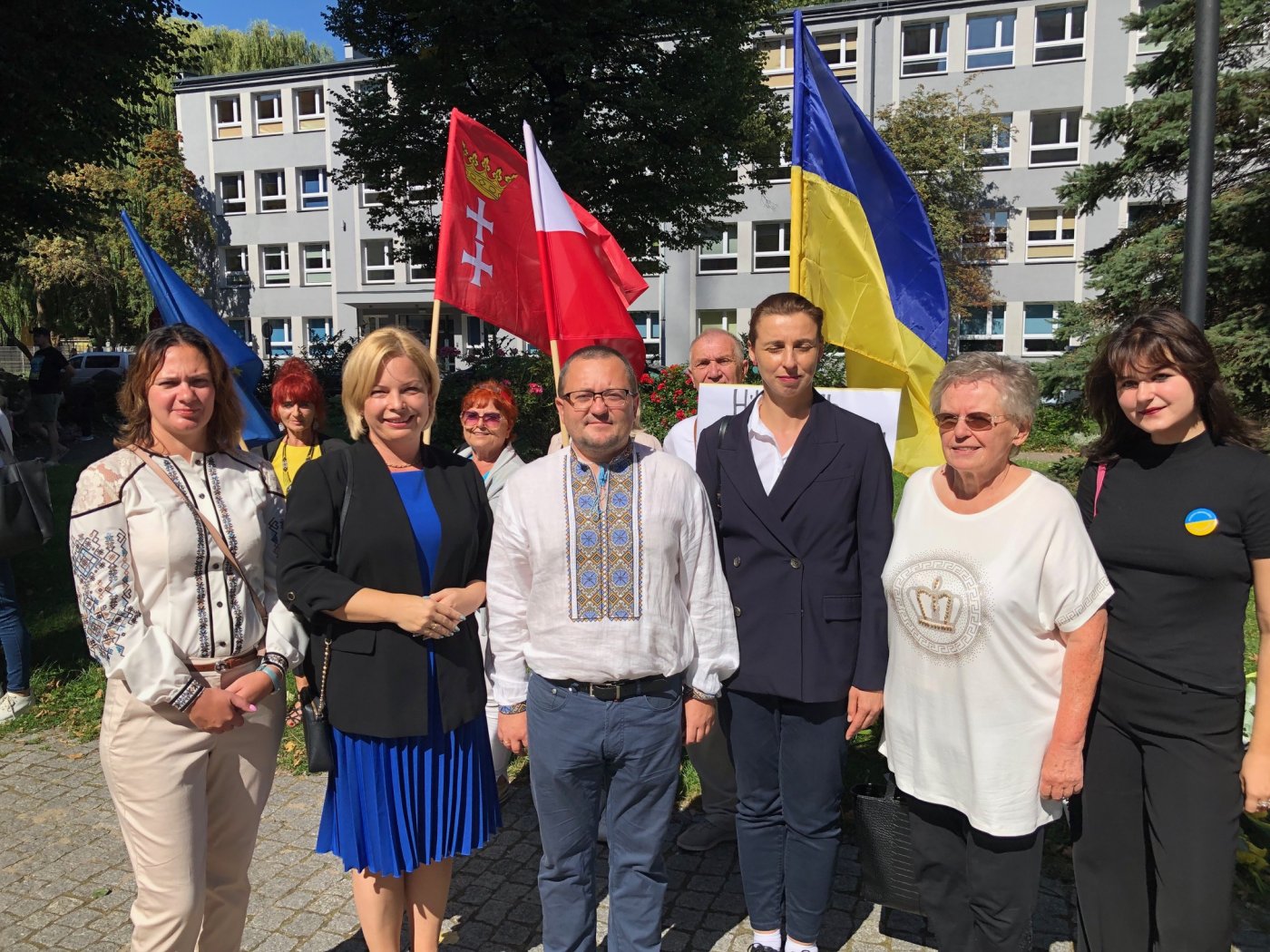 W sobotę, 24 sierpnia, w Gdańsku wspólnie uczczono Dzień Niepodległości Ukrainy. Uroczystości rozpoczęły się od modlitwy i złożenia kwiatów przy pomniku św. Włodzimierza Wielkiego. Następnie uczestnicy ruszyli ulicami Gdańska na Długi Targ do Fontanny Neptuna. Wśród świętujących nie zabrakło przedstawicieli Trójmiasta i Pomorza. Gdynię reprezentowała wiceprezydent Oktawia Gorzeńska. Oficjalną część obchodów Dnia Niepodległości Ukrainy w Gdańsku rozpoczęła modlitwa w języku ukraińskim przy pomniku św. Włodzimierza Wielkiego. Prowadziło ją dwóch kapłanów Kościoła Greckokatolickiego: ks. bp Arkadiusz Trochanowski – biskup Eparchii Olsztyńsko-Gdańskiej oraz ks. Włodzimierz Kucaj z diecezji wrocławsko-gdańskiej. Następnie odegrano dwa hymny: ukraiński i polski.W imieniu Gdyni niebiesko-żółty wieniec przy pomniku św. Włodzimierza Wielkiego złożyła wiceprezydent Gdyni Oktawia Gorzeńska. Towarzyszył jej Tymur Łiash, ukraiński radny Młodzieżowej Rady Miasta Sopotu.Wiceprezydent Gdyni Oktawia Gorzeńska z Tymurem Łiashem, ukraińskim radnym Młodzieżowej Rady Miasta Sopotu (fot. gdansk.pl) Dzisiaj wspólnie ze społecznością ukraińską na zaproszenie konsula Ołeksandra Płodysty świętowaliśmy Dzień Niepodległości Ukrainy na skwerze Chrztu Rusi-Ukrainy przy pomniku św. Włodzimierza w Gdańsku. […] Uroczystym obchodom towarzyszyły modlitwy i życzenia o pokój dla Ukrainy, która doświadcza okrucieństwa wojny – w sobotę napisała na swoim facebookowym profilu wiceprezydent Oktawia Gorzeńska. Konsul Ukrainy Ołeksandr Płodystyi podziękował za ofiarność armii ukraińskiej oraz wszystkim obywatelom Ukrainy, którzy nie walczą na froncie. Zwrócił się również do mieszańców Pomorza. Z kolei wiceprezydentkom: Oktawii Gorzeńskiej i Monice Chabior przekazał dyplomy uznania dla Gdyni i Gdańska za zasługi samorządów na rzecz pomocy Ukrainie. Dziękuję też Wam: mieszkańcom Gdańska, Trójmiasta, Pomorza. Przedstawicielom organizacji pozarządowych, działaczom społecznym, zwykłym Polkom i Polakom, Europejczykom, obywatelom innych zachodnich państw, którzy wspierają nas organizacyjnie, militarnie, a co najważniejsze: moralnie. Wspieracie nas swoją otwartością i solidarnością – powiedział Ołeksandr Płodystyi. Wiceprezydentki Oktawia Gorzeńska i Monika Chabior odbierają z rąk konsula Ukrainy Ołeksandra Płodystyia dyplomy uznania za zasługi samorządów Gdyni i Gdańska na rzecz pomocy Ukrainie (fot. gdansk.pl)Po uroczystościach przy pomniku około 150 osób utworzyło pochód, który przemaszerował ulicami: Gnilną, Rajską, Podmłyńską, Pańską, Węglarską, Kołodziejską, Tkacką oraz Długą do Fontanny Neptuna. Idąca młodzież skandowała niepodległościowe hasła. Padały nazwy miejscowości okupowanych przez Rosjan, a przy każdej z nich okrzyk: chce do Ukrainy!Gdy marsz doszedł do Długiego Targu, na wszystkich czekała niespodzianka. Z wieży Ratusza Głównego Miasta carillon zagrał dźwięki hymnu narodowego Ukrainy. Przy Dworze Artusa wygłoszono okolicznościowe przemówienia i odbyłsię występ muzyczny. Na koniec przedstawicieli polskich władz pożegnało wielokrotnie skandowane: Polska, dziękujemy! Galeria zdjęć Pobierz galerię Na zdj. (od lewej): Kataryna Rudy, żona konsula Ukrainy, wiceprezydent Gdynia Oktawia Gorzeńska, konsul Ukrainy w Gdańsku Ołeksandr Płodystyi, wiceprezydent Gdańska Monika Chabior, radna Gdańska Teresa Wasilewska i Nina Katka, radna Młodzieżowej Rady Miasta Gdańska (fot. gdansk.pl) Pobierz zdjęcie Marsz ulicami Gdańska. Na zdj. m.in. wiceprezydent Gdyni Oktawia Gorzeńska (druga z lewej) i wicewojewoda pomorski Emil Rojek (fot. gdansk.pl) Pobierz zdjęcie Warunki pobierania Wszelkie prawa do zdjęć lub grafik prezentowanych w ramach portalu, należą do Prowadzącego portal lub do podmiotów z nim współpracujących i podlegają ochronie prawnej. Prowadzący portal zezwala na kopiowanie i przedstawianie utworów jedynie w celach niekomercyjnych oraz pod warunkiem zachowania go w oryginalnej postaci i zachowaniem kontekstu tematu, do którego zostało wykorzystaneprzez redakcję gdynia.pl. Opublikowane materiały powinny zawsze zawierać źródło, czyli adres strony www.gdynia.pl. Na publikowanie utworów w innych celach wymagana jest zgoda właściciela strony czyli Prowadzącego portal. Opublikowano: 25.08.2024 12:30 Autor: Magdalena Śliżewska (magdalena.slizewska@gdynia.pl) Zmodyfikowano: 25.08.2024 13:00 Zmodyfikował: Magdalena Śliżewska