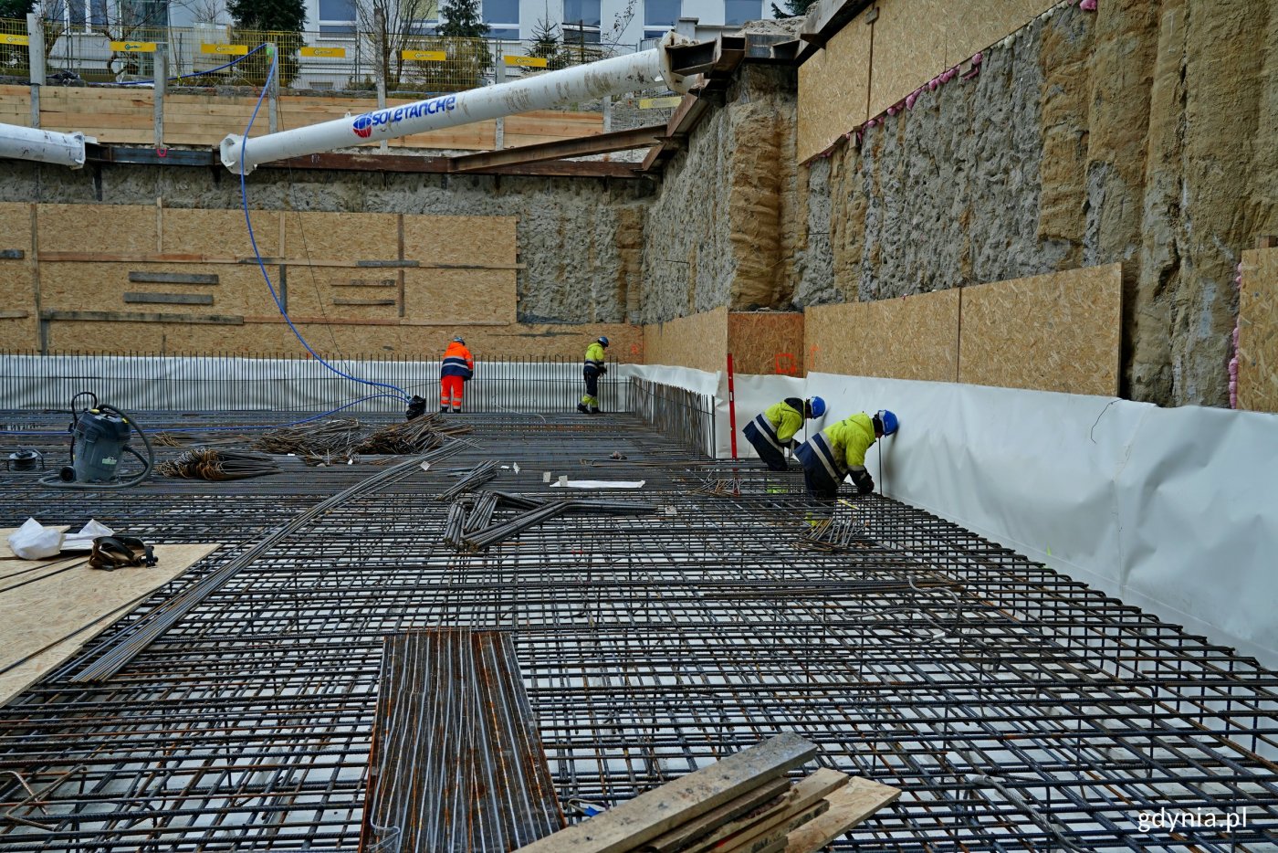 Będą się tam znajdować m.in.: archiwum, sale rozpraw czy pomieszczenia trzech wydziałów. Sąd Rejonowy w Gdyni się powiększa. Obecnie trwa trzeci etap rozbudowy, który obejmuje budowę budynku E przy ul. Jana z Kolna 55. Wykonawca – firma Warbud – realizuje teraz jego podziemną część, a konkretnie zbrojenia płyty fundamentowej. Według założeń wszystkie prace budowlane mają się zakończyć wiosną 2026 roku. Koszt inwestycji to 27 mln zł. Rosną potrzeby lokalowe Sądu Rejonowego w Gdyni, dlatego trwa jego rozbudowa. Na początku ubiegłego roku zakończył się pierwszy etap prac. Była to przebudowa, rozbudowa budynku B. W jej ramach powstał czterokondygnacyjny łącznik (budynek C) między budynkami A i B. Prace objęły też rozbudowę budynku B o sześciokondygnacyjną część nadwieszoną od strony Miejskich Hal Targowych (budynek D), a także nadbudowę budynku B (przekształcenie wycofanej części poddasza w kondygnację V piętra) i jego przebudowę z rewitalizacją (odtworzenie historycznego kształtu strefy wejściowej oraz elewacji). Obecnie jest realizowany kolejny etap rozbudowy, który wykonuje firma Warbud. To budowa budynku E. Będzie on miał 2.228 m² powierzchni całkowitej i 2.026 m² powierzchni użytkowej netto. Jaki jest stan prac? Trwa realizacja części podziemnej. Wykonywane są zbrojenia płyty fundamentowej, na której posadowiony zostanie budynek E. Pod koniec bieżącego tygodnia planujemy betonowanie, niemniej wszystko jest uzależnione od warunków pogodowych. Po ukończeniu płyty fundamentowej mamy do wykonania dwie kondygnacje podziemne, a później pięć nadziemnych. Przywidujemy, że realizacja części podziemnej zajmie około trzech miesięcy. Natomiast całość stanu surowego powinniśmy zakończyć we wrześniu br. – mówi Tomasz Wysocki, kierownik budowy. W budynku E znajdzie się m.in. część pomieszczeń Wydziału Rodzinnego, Wydziału Gospodarczego i Wydziału Ksiąg Wieczystych Sądu Rejonowego w Gdyni. Będą tam także: archiwum, pomieszczenia techniczne, magazynowe oraz socjalne, sale rozpraw, poczekalnie, biuro podawcze czy pokoje konwoju oraz pomieszczenia dla zatrzymanych nieletnich. Budynek zostanie dostosowany do potrzeb osób z niepełnosprawnościami. Będzie także posiadać niezbędną infrastrukturę techniczną, m.in. instalacje wodno-kanalizacyjne czy centralnego ogrzewania z rozbudowanym węzłem cieplnym. Powstaną również: wewnętrzna instalacja hydrantowa, instalacja oświetlenia awaryjnego ewakuacyjnego, odgromowa, uziemiająca, instalacje ochrony przeciwpożarowej, a także niezbędne systemy: alarmowo-przywozowy dla osób z niepełnosprawnościami, sygnalizacji pożaru, sygnalizacji włamania i napadu, jak również kontroli dostępu i rejestracji czasu pracy.Nowy budynek Sądu Rejonowego w Gdyni buduje firma Warbud S.A. według projektu pracowni architektonicznej AA (źródło: AA)Projektanci nie zapomnieli też o zieleni. Na poziomie pierwszego piętra wkomponowano donicę z pnączami, które się będą się piąć po instalacji z linek stalowych – mówi Piotr Pazderski, dyrektor budowy. Umowę na realizację trzeciego etapu rozbudowy Sądu Rejonowego w Gdyni podpisano w grudniu 2023 roku. Od tego czasu wykonawca ma 33 miesiące na realizację inwestycji. Zakończenie prac budowalnych wraz z montażem wyposażenia jest planowane na wiosnę 2026 roku. Koszt inwestycji to około 27 mln zł.Rozbudowa sądu jest prowadzona w duchu gdyńskiego modernizmu, a obiekty oraz teren są objęte różnymi formami ochrony konserwatorskiej w związku z czym na każdym etapie projektu oraz realizacji inwestycja wymagała uzgodnień z wojewódzkim oraz miejskim konserwatorem zabytków.Projekty architektoniczne rozbudowy sporządziła Pracownia Architektoniczna AA z Gdańska. Wykonawcą jest firma Warbud SA, która podpisała w formule „Zaprojektuj i wybuduj” umowę z inwestorem – Sądem Apelacyjnym w Gdańsku. Galeria zdjęć Pobierz galerię Prace na placu budowy trzeciego etapu rozbudowy Sądu Rejonowego w Gdyni (fot. Magdalena Czernek) Pobierz zdjęcie Prace na placu budowy trzeciego etapu rozbudowy Sądu Rejonowego w Gdyni (fot. Magdalena Czernek) Pobierz zdjęcie Prace na placu budowy trzeciego etapu rozbudowy Sądu Rejonowego w Gdyni (fot. Magdalena Czernek) Pobierz zdjęcie Prace na placu budowy trzeciego etapu rozbudowy Sądu Rejonowego w Gdyni (fot. archiwum Warbud SA) Pobierz zdjęcie Prace na placu budowy trzeciego etapu rozbudowy Sądu Rejonowego w Gdyni (fot. archiwum Warbud SA) Pobierz zdjęcie Warunki pobierania Wszelkie prawa do zdjęć lub grafik prezentowanych w ramach portalu, należą do Prowadzącego portal lub do podmiotów z nim współpracujących i podlegają ochronie prawnej. Prowadzący portal zezwala na kopiowanie i przedstawianie utworów jedynie w celach niekomercyjnych oraz pod warunkiem zachowania go w oryginalnej postaci i zachowaniem kontekstu tematu, do którego zostało wykorzystaneprzez redakcję gdynia.pl. Opublikowane materiały powinny zawsze zawierać źródło, czyli adres strony www.gdynia.pl. Na publikowanie utworów w innych celach wymagana jest zgoda właściciela strony czyli Prowadzącego portal. Opublikowano: 14.02.2025 16:00 Autor: Magdalena Czernek (magdalena.czernek@gdynia.pl) Zmodyfikowano: 14.02.2025 16:21 Zmodyfikował: Karolina Szypelt