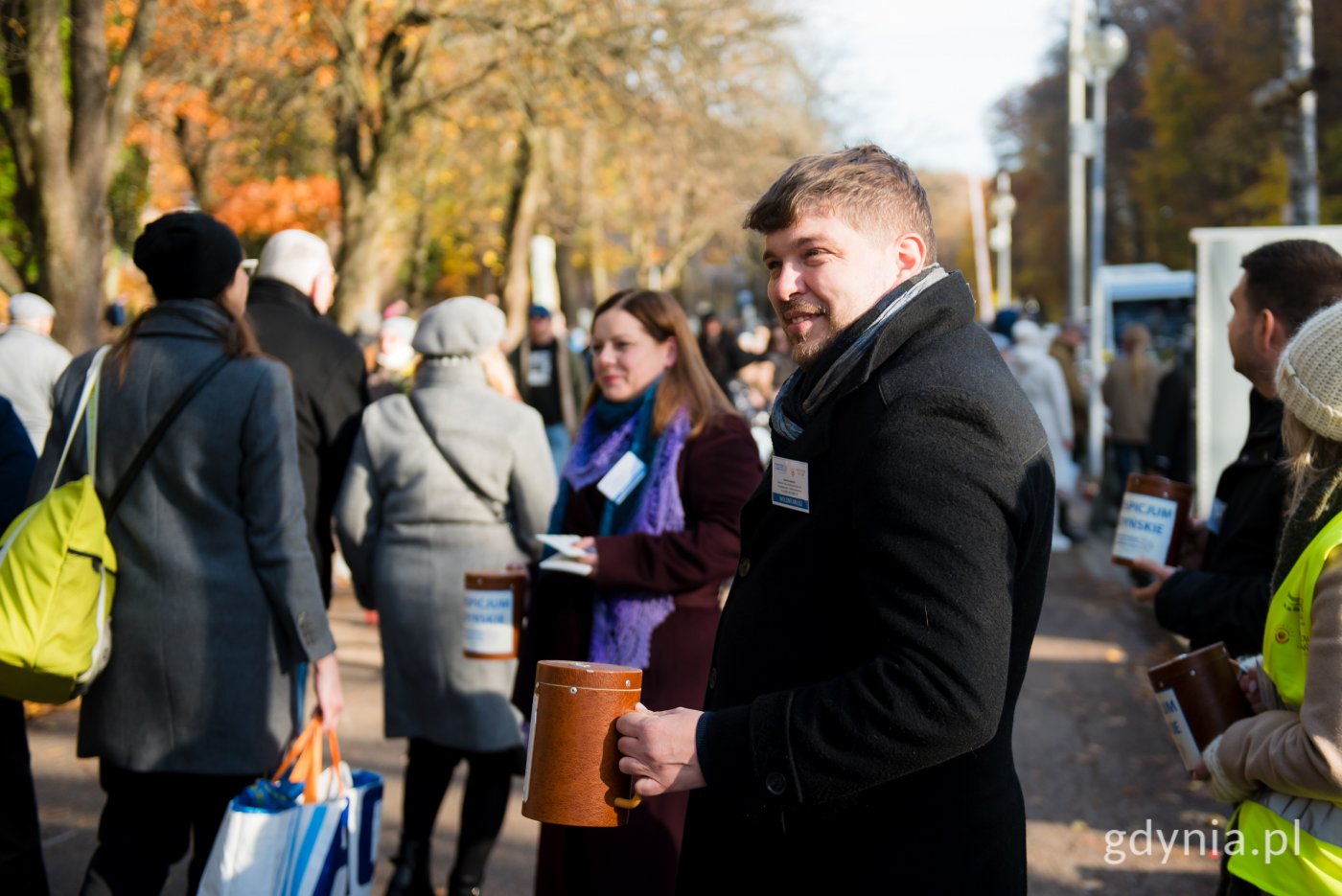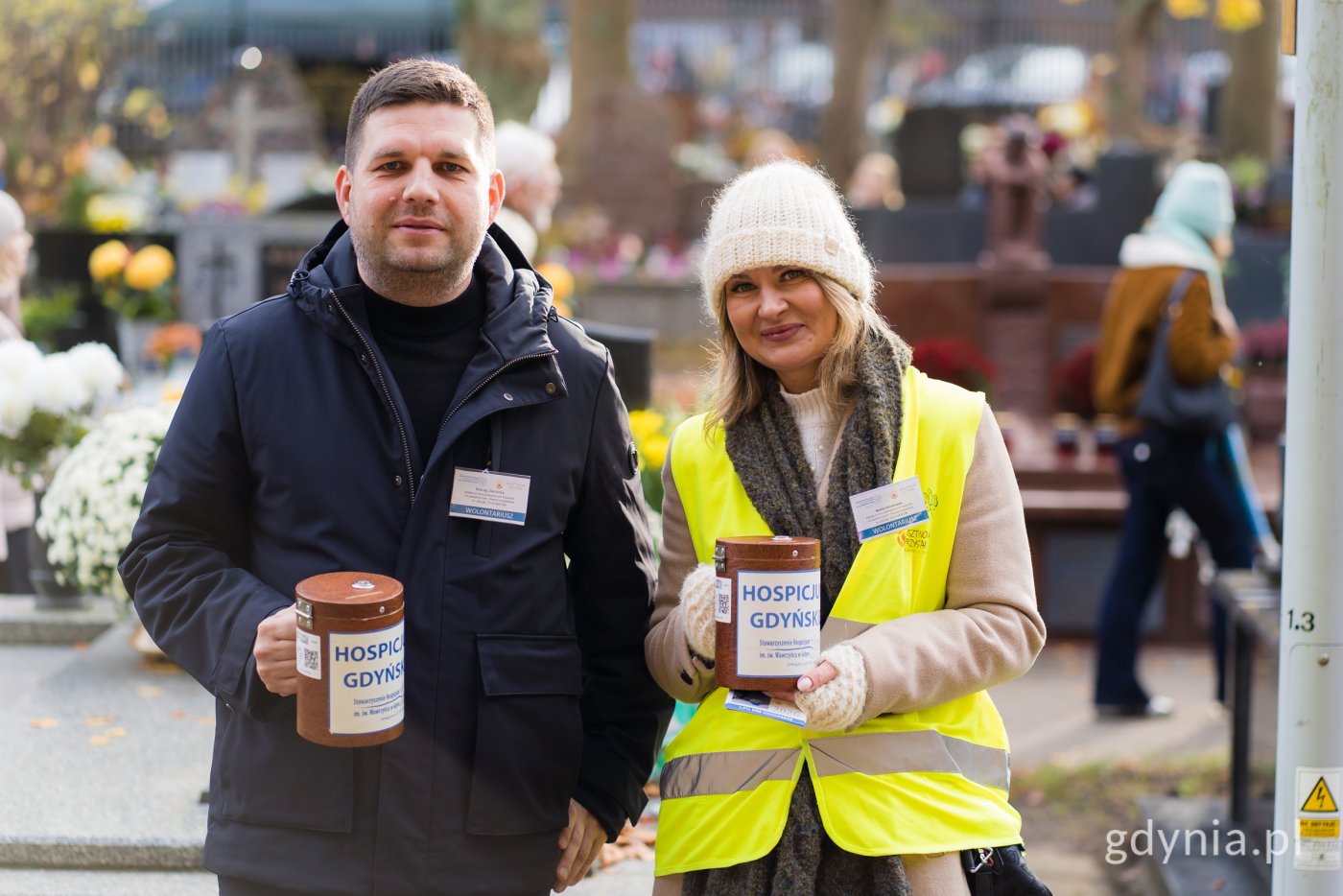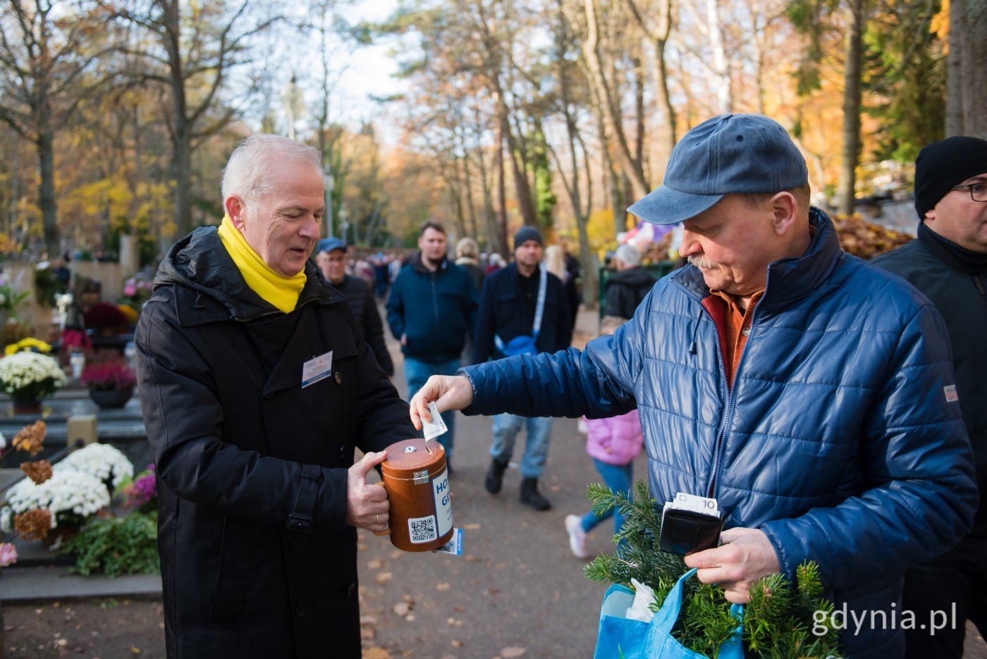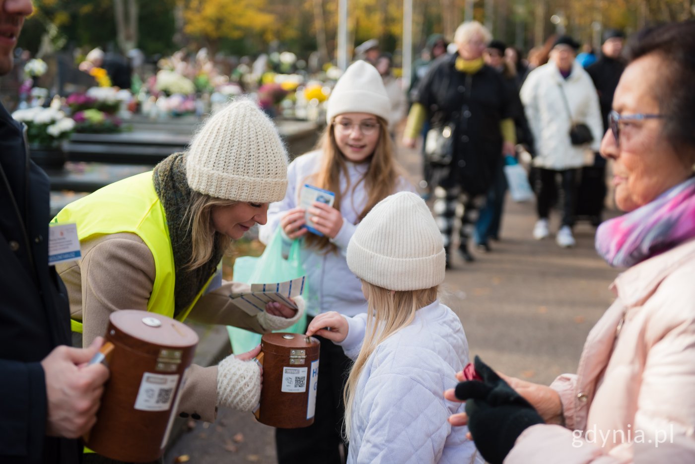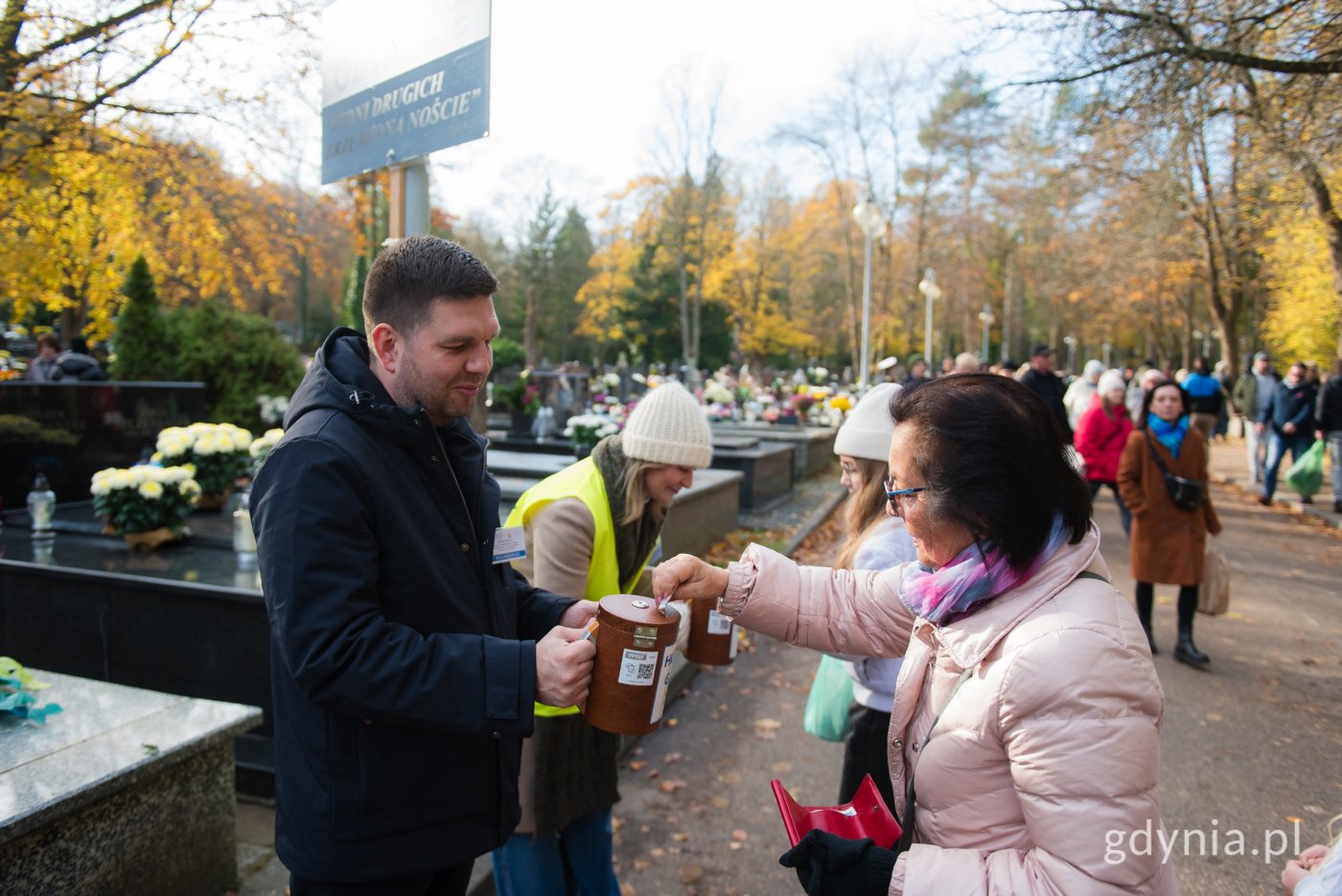 Okres Wszystkich Świętych to czas pełen refleksji i zadumy. Wspominamy bliskich, których już nie ma z nami, ale jednocześnie pamiętamy o osobach potrzebujących wsparcia. Wyrazem tego jest kwesta listopadowa na rzecz Hospicjum im. św. Wawrzyńca w Gdyni. Tradycyjnie odbywa się ona na największych gdyńskich nekropoliach oraz na cmentarzach w Kosakowie i Rumi. Mieszkańcy co roku otwierają serca i chętnie wspierają tę szczytną akcję. W zbiórkę zaangażowało się kilkuset wolontariuszy, w tym parlamentarzyści, gdyńscy samorządowcy i znane lokalne osobistości. Kwesta jest prowadzona na gdyńskich cmentarzach: Witomińskim oraz przy ul. Spokojnej, a także w Kosakowie i Rumi. Rozpoczęła się 31 października i potrwa do 2 listopada.W zbiórce bierze udział kilkuset wolontariuszy. Wśród kwestujących nie zabrakło parlamentarzystów, lokalnych samorządowców z prezydent Aleksandrą Kosiorek, Tadeuszem Szemiotem – przewodniczącym Rady Miasta Gdyni i wiceprezydentem Maciejem Zielonką na czele, radnych miasta i dzielnic, sportowców oraz znanych gdynian. Kwesta listopadowa to piękna tradycja. Pokazuje, że gdynianie mają wielkie serca, są hojni i w tym szczególnym czasie pamiętają również o tych, którzy potrzebują wsparcia. Podczas zbiórki spotkałam się z życzliwością i zaangażowaniem zarówno ze strony wolontariuszy, jak i mieszkańców – za co dziękuję. To dowód na to, że Gdynia jest miastem ludzi wrażliwych i pełnych empatii – mówi Aleksandra Kosiorek, prezydent Gdyni.Od lat kultywujemy tradycję i na gdyńskich cmentarzach zbieramy pieniądze, żeby wesprzeć Hospicjum im. św. Wawrzyńca. To wspaniała idea, która łączy nas niezależnie od barw politycznych. Chętnie do niej dołączamy i wspólnie pomagamy potrzebującym – dodaje Tadeusz Szemiot, przewodniczący Rady Miasta Gdyni. Zebrane środki zostaną przeznaczone na bieżące potrzeby hospicjum i zapewnienie opieki nad pacjentami stowarzyszenia Hospicjum im. św. Wawrzyńca w Gdyni. Galeria zdjęć Pobierz galerię Puszka, do jakiej wolontariusze zbierają datki podczas kwesty (fot. Paweł Budziński) Pobierz zdjęcie Prezydent Gdyni Aleksandra Kosiorek podczas kwesty na rzecz gdyńskiego hospicjum (fot. Paweł Budziński) Pobierz zdjęcie Wiceprezydent Maciej Zielonka oraz radna miasta Monika Strzałkowska podczas kwesty na rzecz gdyńskiego hospicjum (fot. Paweł Budziński) Pobierz zdjęcie Od lewej: radny miasta Dominik Aziewicz, wiceprezydent Maciej Zielonka, prezydent Aleksandra Kosiorek, Tadeusz Szemiot - przewodniczący Rady Miasta Gdyni oraz radni miasta Larysa Kramin i Łukasz Strzałkowski podczas kwesty na rzecz gdyńskiego hospicjum (fot. Paweł Budziński) Pobierz zdjęcie Wolontariusze podczas kwesty na rzecz gdyńskiego hospicjum (fot. Paweł Budziński) Pobierz zdjęcie Tadeusz Szemiot - przewodniczący Rady Miasta Gdyni podczas kwesty na rzecz gdyńskiego hospicjum (fot. Paweł Budziński) Pobierz zdjęcie Wolontariusze podczas kwesty na rzecz gdyńskiego hospicjum (fot. Paweł Budziński) Pobierz zdjęcie Senator Sławomir Rybicki podczas kwesty na rzecz gdyńskiego hospicjum (fot. Paweł Budziński) Pobierz zdjęcie Od prawej: posłanka Wioleta Tomczak i radna miasta Emilia Rogała podczas kwesty na rzecz gdyńskiego hospicjum (fot. Paweł Budziński) Pobierz zdjęcie Od prawej: Tadeusz Szemiot - przewodniczący Rady Miasta Gdyni, Maciej Wojnicki - radny dzielnicy Witomino i radna miasta Larysa Kramin podczas kwesty na rzecz gdyńskiego hospicjum (fot. Paweł Budziński) Pobierz zdjęcie Od prawej: piłkarz Arki Gdynia Michał Rzuchowski, Krzysztof Jankowski - prezes gdyńskiego koła Światowego Związku Żołnierzy AK i Wojciech Jankowski - dyrektor Gdyńskiego Ośrodka Doskonalenia Nauczycieli podczas kwesty na rzecz gdyńskiego hospicjum (fot. Paweł Budziński) Pobierz zdjęcie Radny miasta Dominik Aziewicz i prezydent Aleksandra Kosiorek podczas kwesty na rzecz gdyńskiego hospicjum (fot. Paweł Budziński) Pobierz zdjęcie Wiceprezydent Maciej Zielonka i radna miasta Monika Strzałkowska podczas kwesty na rzecz gdyńskiego hospicjum (fot. Paweł Budziński) Pobierz zdjęcie Prezydent Aleksandra Kosiorek podczas kwesty na rzecz gdyńskiego hospicjum (fot. Paweł Budziński) Pobierz zdjęcie Wolontariusze podczas kwesty na rzecz gdyńskiego hospicjum (fot. Paweł Budziński) Pobierz zdjęcie Od lewej: radny miasta Łukasz Strzałkowski, prezydent Aleksandra Kosiorek, radna miasta Monika Strzałkowska, wiceprezydent Maciej Zielonka i radny miasta Dominik Aziewicz podczas kwesty na rzecz gdyńskiego hospicjum (fot. Paweł Budziński) Pobierz zdjęcie Radna miasta Larysa Kramin podczas kwesty na rzecz gdyńskiego hospicjum (fot. Paweł Budziński) Pobierz zdjęcie Radna miasta Monika Strzałkowska podczas kwesty na rzecz gdyńskiego hospicjum (fot. Paweł Budziński) Pobierz zdjęcie Od lewej: prezydent Gdyni Aleksandra Kosiorek, Tadeusz Szemiot - przewodniczący Rady Miasta Gdyni, wiceprezydent Maciej Zielonka i Maciej Wojnicki - radny dzielnicy Witomino podczas kwesty na rzecz gdyńskiego hospicjum (fot. Paweł Budziński) Pobierz zdjęcie Poseł Rafał Siemaszko i radny miasta Marcus da Silva podczas kwesty na rzecz gdyńskiego hospicjum (fot. Paweł Budziński) Pobierz zdjęcie Radna miasta Agnieszka Tokarska podczas kwesty na rzecz gdyńskiego hospicjum (fot. Magdalena Czernek) Pobierz zdjęcie Radna miasta Agnieszka Tokarska podczas kwesty na rzecz gdyńskiego hospicjum (fot. Magdalena Czernek) Pobierz zdjęcie Radna miasta Beata Zastawna podczas kwesty na rzecz gdyńskiego hospicjum (fot. Magdalena Czernek) Pobierz zdjęcie Radna miasta Beata Zastawna z wolontariuszami podczas kwesty na rzecz gdyńskiego hospicjum (fot. Magdalena Czernek) Pobierz zdjęcie Prezydent Aleksandra Kosiorek i radna miasta Larysa Kramin podczas kwesty na rzecz gdyńskiego hospicjum (fot. Paweł Budziński) Pobierz zdjęcie Od prawej: Jakub Ubych - wiceprzewodniczą