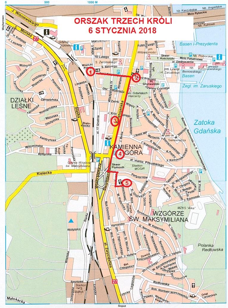 Zbliża się święto Trzech Króli. W sobotę, królowie wraz z orszakiem przemierzą ulice Gdyni. Scenariusz pochodu nawiązuje do tradycji jasełek i jest oparty na przekazie biblijnym. Dziś odwiedzili gdyński magistrat. Trzej Mędrcy ze wschodu w towarzystwie uczniów z Zespołu Szkół Katolickich im. Jana Pawła II z Obłuża zapukali dziś do drzwi urzędu. Przynieśli prezenty i zaproszenie do wspólnego kolędowania 6 stycznia. O godz. 11.00 uczestnicy spotkają się na mszy świętej w kościele pw. Najświętszego Serca Pana Jezusa w Gdyni. Następnie ulicami Gdyni przejdzie orszak. Około godz. 12.15 ruszy sprzed kościoła i dalej ul. Armii Krajowej i Świętojańską w kierunku Prezydium, a stamtąd w kierunku kościoła pw. św. Antoniego, gdzie odbędą się jasełka.- Scenki na trasie orszaku zostały przygotowane przez gdyńskie szkoły i przedszkola oraz Gdyńską Akademię Kuglarstwa. Scenę u Heroda przygotują rodzice przedszkolaków z przedszkola im. Świętej Rodziny prowadzonej przez siostry Nazaretanki. Scenę w karczmie i „Anioły i Diabły” uczniowie z Zespół Szkół Katolickich im. Jana Pawła II. Natomiast, szopka w kościele św. Antoniego będzie autorstwa uczniów ze szkoły podstawowej nr 23 – mówi brat Robert Kozielski franciszkanin, organizator gdyńskiej edycji Orszaku Trzech Króli.Współorganizatorami sceny „Anioły i Diabły” będą kuglarze z Gdyńskiej Akademii Kuglarstwa, którzy przygotowali pokaz walki dobra ze złem... na szczudłach. Orszak Trzech Króli – program godz. 11.00 – msza św.w kościele NSPJ przy ul. Armii Krajowej 46, godz. 12.15 – przygotowanie orszaku, Akt 1. Wymarsz orszaku, Akt 2. U Heroda — plac przed przedszkolem katolickim sióstr Nazaretanek przy ul.Armii Krajowej 26, Akt 3. Karczma — ul. Świętojańska przed restauracją Polonia przy ul. Świętojańska 92/94 Akt 4. Anioły i Diabły — zbieg ulic Świętojańskiej i al. Marsz. Piłsudskiego (przed Prezydium), Akt 5. Szopka — kościół św. Antoniego przy ul. K. Ujejskiego 40. Trasa sobotniego Orszaku // fot. www.gdynia.franciszkanie.plNa koniec, u franciszkanów odbędą się krótkie jasełka, złożenie darów, kolędowanie, przewidziano także drobny poczęstunek.Orszak to nie tylko barwny marsz i występy artystyczne, to także zbiórka na cele charytatywne. Wzorem lat ubiegłych, w trakcie wydarzenia wolontariusze będą zbierać pieniądze na rzecz Stowarzyszenia im. Św. Wawrzyńca, w ramach którego funkcjonuję hospicjum dla dorosłych i dom hospicyjny dla dzieci i młodzieży „Bursztynowa Przystań". Wolontariusze w zamian za datki będą rozdawać korony i śpiewniki.Fundacja Orszak Trzech Króli jest organizatorem największych na świecie ulicznych jasełek odbywających się w Warszawie, a także w kilkuset miejscowościach w Polsce i na świecie. W tegorocznej, jubileuszowej 10 edycji weźmie udział 644 miejscowości w Polsce oraz 16 poza jej granicami m.in. w USA, Niemczech, Austrii, Wielkiej Brytanii, Rwandzie i Kongo. Utrudnienia w ruchu W związku z przemarszem OrszakuTrzech Króli czasowo wyłączone z ruchu zostaną ulice: ul. 3 Maja od ul. Batorego (w rejonie kościoła Najświętszego Serca Pana Jezusa) a ul. Armii Krajowej, ul. Armii Krajowej od ul. 3 Maja do ul. Świętojańskiej, ul. Świętojańskiej od ul. Armii Krajowej do al. Zwycięstwa, ul. Partyzantów od ul. Świętojańskiej do ul. Bema, ul. Bema od ul. Partyzantów do ul. Kopernika. Galeria zdjęć Pobierz galerię Trzej Królowie i uczniowie Zespołu Szkół Katolickich im. Jana Pawła II // fot. Jan Ziarnicki Pobierz zdjęcie Trzej Królowie // fot. Jan Ziarnicki Pobierz zdjęcie Trzej Królowie i uczniowie Zespołu Szkół Katolickich im. Jana Pawła II // fot. Jan Ziarnicki Pobierz zdjęcie Trzej Królowie u prezydenta // fot. Jan Ziarnicki Pobierz zdjęcie Warunki pobierania Wszelkie prawa do zdjęć lub grafik prezentowanych w ramach portalu, należą do Prowadzącego portal lub do podmiotów z nim współpracujących i podlegają ochronie prawnej. Prowadzący portal zezwala na kopiowanie i przedstawianie utworów jedynie w celach niekomercyjnych oraz pod warunkiem zachowania go w oryginalnej postaci i zachowaniem kontekstu tematu, do którego zostało wykorzystaneprzez redakcję gdynia.pl. Opublikowane materiały powinny zawsze zawierać źródło, czyli adres strony www.gdynia.pl. Na publikowanie utworów w innych celach wymagana jest zgoda właściciela strony czyli Prowadzącego portal. Opublikowano: 04.01.2018 12:09 Autor: _Jan Ziarnicki (j.ziarnicki@gdynia.pl) Zmodyfikowano: 04.01.2018 13:02 Zmodyfikował: Agnieszka Janowicz