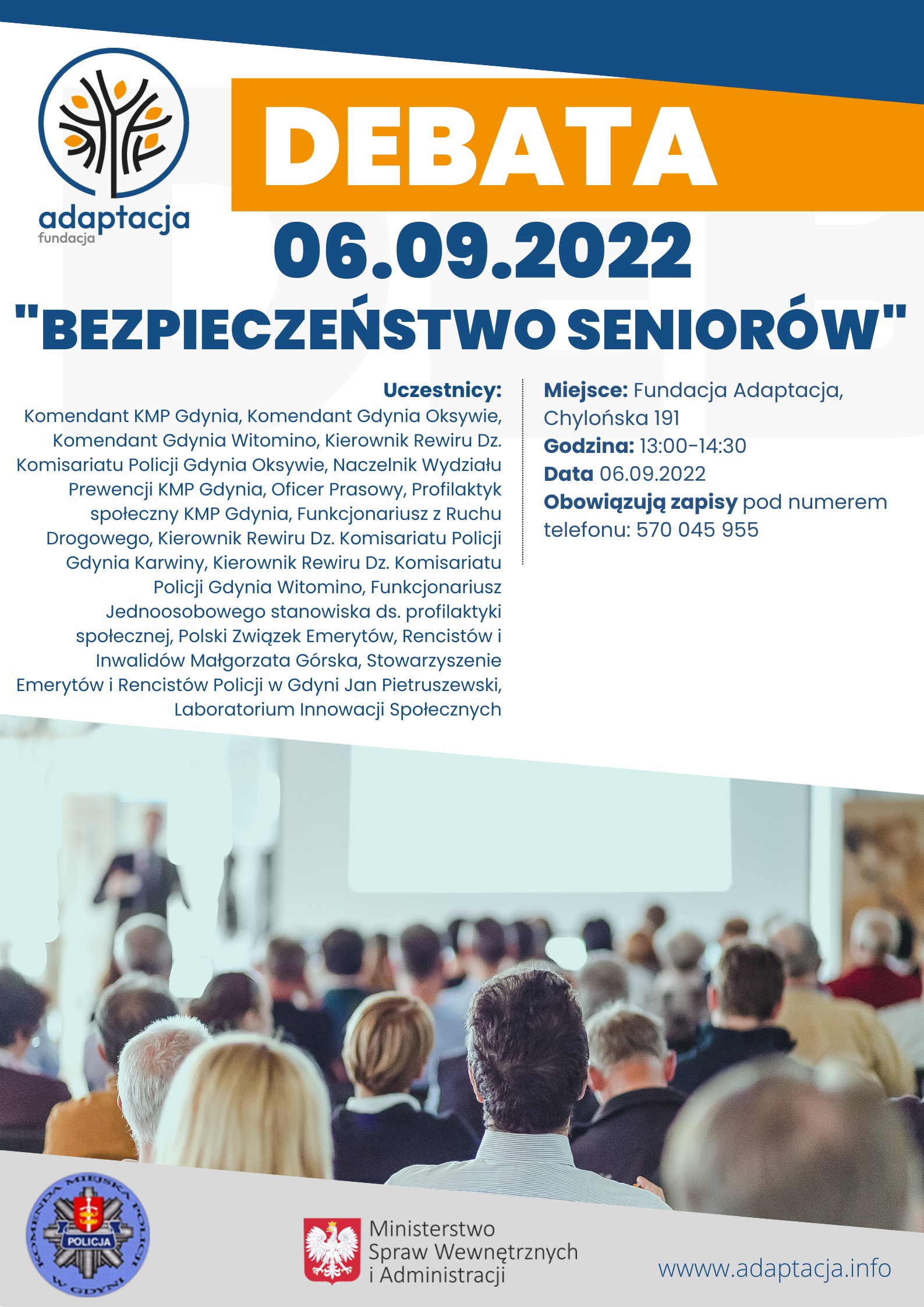 Obawiasz, że ktoś z twoich bliskich padnie ofiarą popularnych oszustw? Boisz się, że do twoich dziadków lub rodziców zapuka fałszywy policjant, zadzwoni rzekomy wnuczek lub z „kontrolą” w drzwiach stanie złodziej? Komenda Miejska Policji w Gdyni wspólnie z Fundacją Adaptacja na początku września organizują specjalne spotkanie dla seniorów, które ma wyczulić ich na zabiegi oszustów. Tylko w pierwszej połowie sierpnia 90-latka z gdyńskiej Chyloni wyrzuciła przez balkon kilkadziesiąt tysięcy złotych mężczyźnie, który podszył się pod szefa policji i poinformował ją o prowadzonej specjalnej operacji. Inny mężczyzna podający się za policjanta, także w Chyloni, uzyskał od kobiety kartę bankomatową razem z kodem PIN. W tym roku w Gdyni oszczędności straciła też m.in. 82-latka, która zaufała dwóm osobom podającym się za kontrolę z KRUS, a kilka miesięcy wcześniej 70-latka, która do mieszkania wpuściła rzekomą kontrolę z ZUS.Podobne informacje, niestety, pojawiają się regularnie wśród policyjnych notatek. Świadomość jest najważniejsza – gdyby seniorzy zdawali sobie sprawę o metodach, po które sięgają oszuści, prawdopodobnie nie powtarzałyby się regularnie informacje o fałszywych policjantach, wnuczkach i pracownikach instytucji, którzy pozbawiają osoby starsze wszelkich kosztowności. Metod jest wiele, do listy wciąż dochodzą nowe, a dokonywane w ten sposób kradzieże oparte na nadmiernym zaufaniu są liczone w dziesiątkach tysięcy złotych. Przyjdź, wysłuchaj i zapytaj, aby nie dać się oszustom Aby przestrzec starszych mieszkańców przed przestępcami, Komenda Miejska Policji w Gdyni wspólnie z lokalną Fundacją Adaptacja organizują debatę poświęconą bezpieczeństwu seniorów. Już 6 września od godziny 13:00 do 14:30 w siedzibie Adaptacji w Chyloni, przy ul. Chylońskiej 191 pojawi się cały szereg ekspertów reprezentujących służby mundurowe i inne instytucje. - W dzisiejszych czasach na każdym kroku może spotkać nas niebezpieczeństwo. Warto wiedzieć, jak zabezpieczyć się na każdą ewentualność. Życie, zdrowie i wasze bezpieczeństwo jest dla nas najważniejsze, właśnie dlatego wspólnie z Komendą Miejską Policji w Gdyni pragniemy zaprosić was na debatę poświęconą każdemu rodzajowi bezpieczeństwa – zachęca Fundacja Adaptacja z Gdyni, która jest współorganizatorem wydarzenia. Spotkanie będzie dla seniorów z Gdyni okazją, żeby wysłuchać między innymi komendanta Komendy Miejskiej Policji w Gdyni, komendantów poszczególnych dzielnicowych komisariatów, a także przedstawicieli konkretnych wydziałów i policyjnych specjalizacji, którzy będą mogli podzielić się wiedzą na temat metod i sztuczek, po które sięgają oszuści. To także okazja do zadawania wszelkich pytań, które mogą pomóc potencjalnym ofiarom w sytuacji zagrożenia. Na miejscu pojawią się też przedstawiciele Polskiego Związku Emerytów, Rencistów i Inwalidów, Stowarzyszenia Emerytów i Rencistów Policji w Gdyni oraz gdyńskiego Laboratorium Innowacji Społecznych.Dla osób, które chciałyby wziąć udział w wydarzeniu obowiązują zapisy – swój udział można zgłosić telefonicznie, pod numerem 570-045-955. Opublikowano: 02.09.2022 12:25 Autor: Kamil Złoch (kamil.zloch@gdynia.pl) Zmodyfikowano: 02.09.2022 12:35 Zmodyfikował: Agnieszka Janowicz