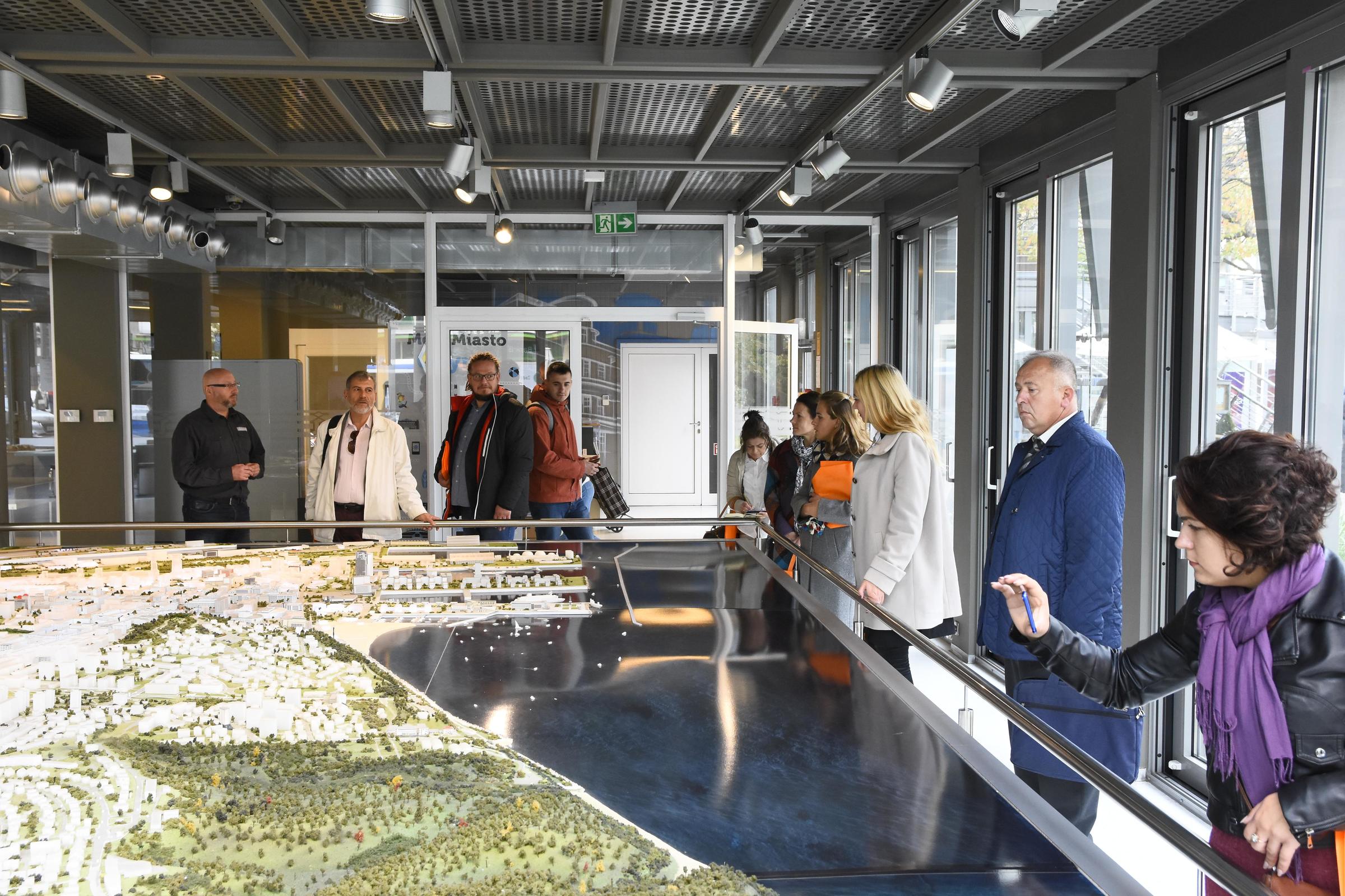 Historia Gdyni, model zarządzania miastem, komunikacja miejska czy rozwiązania przestrzeni publicznej, to tylko niektóre tematy interesujące ukraińskich samorządowców, którzy są z wizytą w naszym mieście.Kilkoro samorządowców z ukraińskich miast: Bogusław, Równe i Tarnopol przyjechało do Gdyni, by poznać nasze miasto, a także podpatrzeć sprawdzające się rozwiązania i inicjatywy. - Jest nam niezmiernie miło gościć Państwa w naszym mieście. Jesteście Państwo kolejną zagraniczną grupą, która nas odwiedza. Z doświadczenia wiem, że każda z grup ma inne zainteresowania. Chętnie więc odpowiem na wszystkie pytania dotyczące naszego miasta – witał gości Marek Stępa, wiceprezydent Gdyni, ds. rozwoju. Tematami, które najchętniej były podejmowane i generowały wiele pytań były m.in. narodziny Gdyni, budowa portu, rozwój miasta, rynek mieszkaniowy, rozwiązania przestrzeni publicznej miasta, gospodarka odpadami czy komunikacja miejska. Ukraińskich gości interesowała gdyńska polityka rowerowa, polityka rodzinna, zapoznali się też z gdyńskimi inicjatywami społecznymi.W planie 3-dniowej wizyty samorządowców była m.in. wizyta w Centrum Zarządzania Kryzysowego, w InfoBoksie, w Przedsiębiorstwie Komunikacji Trolejbusowej, Przedsiębiorstwie Komunikacji Miejskiej, Przedsiębiorstwie Komunikacji Autobusowej, a także zwiedzanie przystanku Pomorskiej Kolei Metropolitalnej oraz Centrum Zarządza i Sterowania Ruchem TRISTAR. Galeria zdjęć Pobierz galerię Ukraińscy samorządowcy z wizytą w Gdyni // fot. Marta Jaszczerska Pobierz zdjęcie Ukraińscy samorządowcy z wizytą w Gdyni // fot. Marta Jaszczerska Pobierz zdjęcie Ukraińscy samorządowcy z wizytą w InfoBoksie // fot. Jan Ziarnicki Pobierz zdjęcie Ukraińscy samorządowcy z wizytą w InfoBoksie // fot. Jan Ziarnicki Pobierz zdjęcie Ukraińscy samorządowcy z wizytą w Gdyni // fot. Jan Ziarnicki Pobierz zdjęcie Ukraińscy samorządowcy z wizytą w Gdyni // fot. Jan Ziarnicki Pobierz zdjęcie Warunki pobierania Wszelkie prawa do zdjęć lub grafik prezentowanych w ramach portalu, należą do Prowadzącego portal lub do podmiotów z nim współpracujących i podlegają ochronie prawnej. Prowadzący portal zezwala na kopiowanie i przedstawianie utworów jedynie w celach niekomercyjnych oraz pod warunkiem zachowania go w oryginalnej postaci i zachowaniem kontekstu tematu, do którego zostało wykorzystaneprzez redakcję gdynia.pl. Opublikowane materiały powinny zawsze zawierać źródło, czyli adres strony www.gdynia.pl. Na publikowanie utworów w innych celach wymagana jest zgoda właściciela strony czyli Prowadzącego portal. Opublikowano: 02.10.2018 14:12 Autor: Marta Jaszczerska-Zawadzka (m.jaszczerska@gdynia.pl) Zmodyfikowano: 02.10.2018 14:46 Zmodyfikował: Marta Jaszczerska