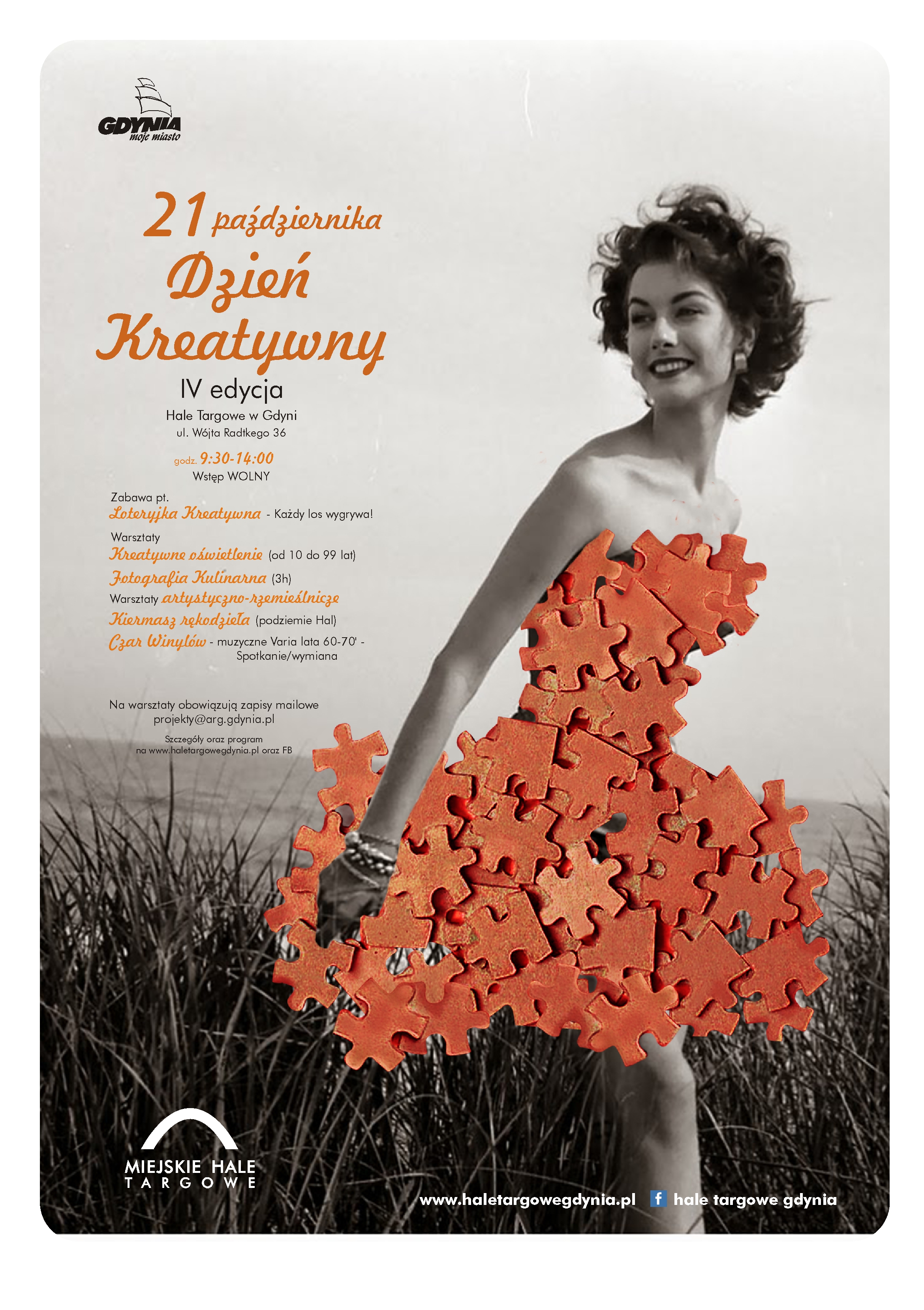 W najbliższą sobotę, 21 października Miejskie Hale Targowe zapraszają na czwartą edycję wydarzenia „Dzień Kreatywny”. W programie loteria, warsztaty, kiermasz artystyczny, spotkanie fanów winyli oraz otwarcie wystawy fotograficznej.W Miejskich Halach Targowych już po raz czwarty zagości kreatywność. Trzy poprzednie edycje wydarzenia cieszyły się ogromnym zainteresowaniem. Przyciągnęły wielu mieszkańców, twórców, projektantów i pasjonatów kreatywnych aktywności. Czwarta edycja zapowiada się równie interesująco.W programie m.in. loteria, w której każdy los wygrywa, a także cykl otwartych warsztatów kreatywnych, których tematyka obejmie m.in. fotografię, wzornictwo użytkowe, sztukę i handmade. Odbędzie się również kiermasz artystyczny pod patronatem Gdynia Rodzinna czy spotkanie fanów winyli. Zwieńczeniem imprezy będzie otwarcie wystawy fotograficznej konkursu „Zakupy z ludzką twarzą”, ogłoszenie wyników oraz celebracja laureatów.Program warsztatów:9.30-10.00 - Zapisy na warsztaty, zajmowanie miejsc na kiermaszu, zapisy możliwe także drogą mailową (projekty@arg.gdynia.pl).10.30-14.15 - Loteryjka Kreatywna - Hala Łukowa, należy okazać paragon na zakupy na min. 50 zł, każdy los wygrywa.10.00-12.30 - Warsztat z fotografii kulinarnej, prowadzi Iwona Kowalska, profesjonalna fotografka kulinarna. Miejsce: BOX 303 - podziemie Hali Łukowej.10.00-13.30 - Kreatywne oświetlenie - prowadzi Fab Lab Trójmiasto, warsztat w czasie którego jego uczestnicy wykonają przy wsparciu projektantów i atystów z Fab Lab Trójmiasto, swoje unikalne pomysły różnych rodzajów oświetlenia, z wykorzystaniem dostępnych materiałów wtórnych (np. starych opakowań, folii, filcu, tektury) Miejsce: Alejka w Hali Łukowej.10.00-15.00 - Kiermasz artystyczny oraz rękodzieła pod patronatem Gdynia Rodzinna. Miejsce: podziemie Hali Łukowej.11.00-14.00 - Muzyka z Winyli - jazz, rock, blues - spotkanie fanów winyli, wymiana płyt, odtwarzanie. Miejsce: BOX 302, wystawa w budowie - Ekspozycja Wspomnień - Miejskich Hal Targowych. 14.00-14.15 - Otwarcie wystawy fotograficznej z konkursu „Zakupy z ludzką twarzą”, ogłoszenie wyników oraz celebracja laureatów.Zapisy na warsztaty: projekty@arg.gdynia.pl, można także zapisać się przed warsztatem, liczba miejsc ograniczona. Do pobrania 4. Dzień Kreatywny Hal Targowych - plakat jpg2891kb Opublikowano: 20.10.2017 12:00 Autor: Marta Jaszczerska-Zawadzka (m.jaszczerska@gdynia.pl) Zmodyfikowano: 20.10.2017 13:15 Zmodyfikował: Marta Jaszczerska