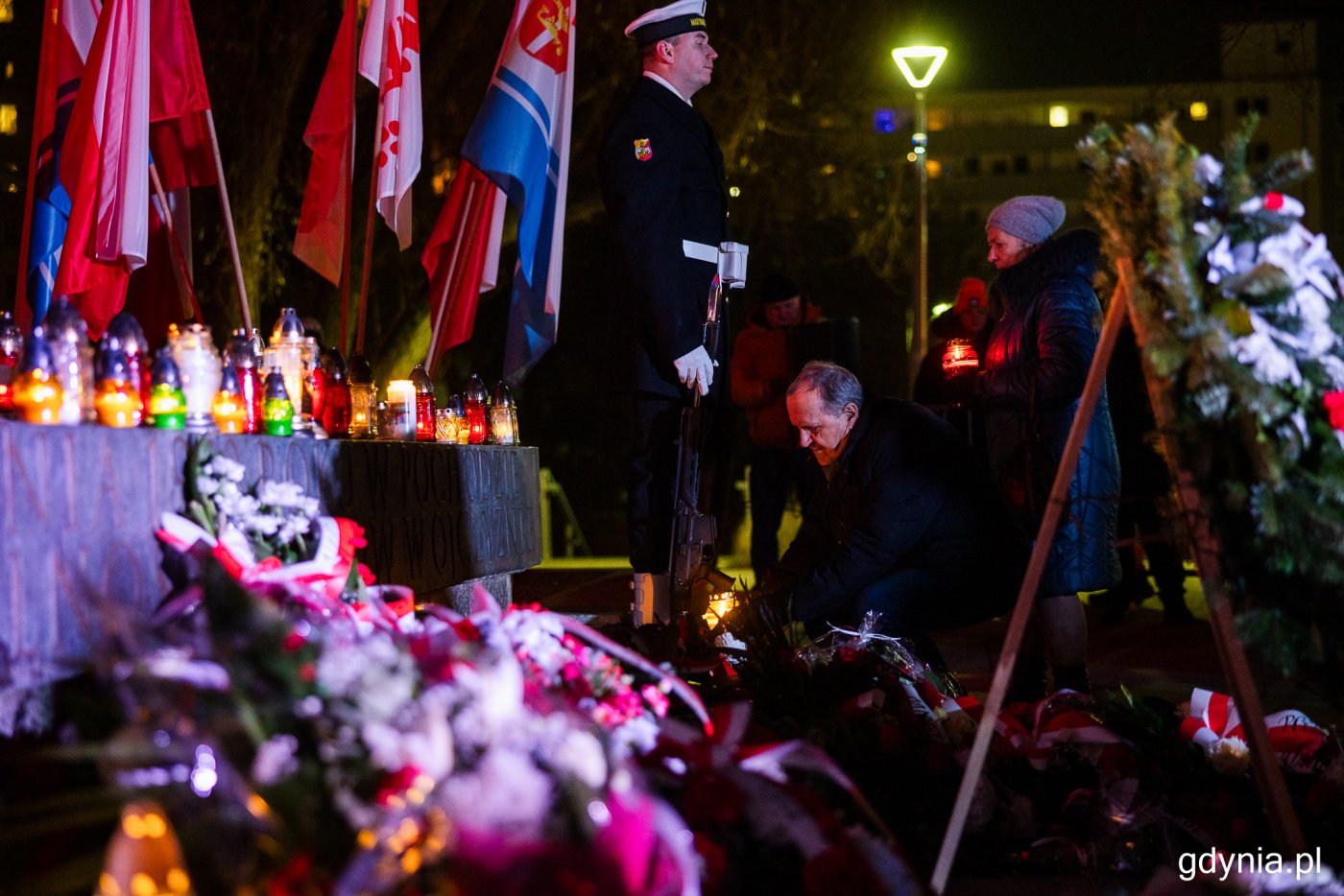 Dzisiaj mija 55 lat od tragicznych wydarzeń, do których doszło na Wybrzeżu. Przedstawiciele władz samorządowych wraz z mieszkańcami oddali hołd bohaterom wydarzeń grudniowych. Popołudniowe uroczystości rozpoczęła msza w kościele Najświętszego Serca Pana Jezusa, następnie uczestnicy przemaszerowali pod pomnik Ofiar Grudnia 1970, gdzie głos zabrały wojewoda pomorska Beata Rutkiewicz oraz prezydent Gdyni Aleksandra Kosiorek. Popołudniowe uroczystości upamiętniające dramatyczne wydarzenia poprzedziła msza święta w kościele Najświętszego Serca Pana Jezusa. Stamtąd uczestnicy w uroczystym pochodzie przeszli ulicami Gdyni pod pomnik Ofiar Grudnia 1970 przy al. Marszałka Józefa Piłsudskiego. Hołd bohaterom i ich bliskim oddali m.in. wojewoda pomorska Beata Rutkiewicz, członek zarządu województwa pomorskiego Agnieszka Baranowska, prezydent Gdyni Aleksandra Kosiorek i prezydent Gdańska Aleksandra Dulkiewicz. Beata Rutkiewicz, wojewoda pomorska (fot. Karol Stańczak) Komuniści strzelali z daleka do ludu pracującego, który mieli reprezentować. Właśnie w Gdyni, gdzie pozbawieni strachu robotnicy, nieśli na drzwiach ciało Zbyszka Godlewskiego, zaczęło się odliczanie do końca czasu władzy ludowej – mówi Beata Rutkiewicz, wojewoda pomorska. – Umierali mieszkańcy, ale gdynianie to twardzi ludzie. Wasza determinacja, chęć zmian i nowego, lepszego życia pozwoliła wznieść to miasto, a potem zmieniać je i rozwijać. Bohaterom Grudnia '70, wszystkim, którzy doświadczyli krzywd z rąk komunistów – cześć i chwała. Aleksandra Kosiorek, prezydent Gdyni (fot. Karol Stańczak) Druga część obchodów Grudnia ’70 tradycyjnie odbyła się pod pomnikiem przy al. Piłsudskiego. Uroczystość uświetniła obecność pani wojewody pomorskiej Beaty Rutkiewicz i pani prezydent Gdańska Aleksandry Dulkiewicz – przyznaje Aleksandra Kosiorek, prezydent Gdyni. – To ogromny gest i cieszymy się, że wspólnie wspominaliśmy masakrę grudniową, która dla Gdyni jest niezmiernie ważnym wydarzeniem. To bolesne wspomnienie, ale też źródło siły i wiary w to, że demokracja, solidarność, godność człowieka to są te wartości, o które trzeba zawsze walczyć. Pod pomnikiem Ofiar Grudnia '70 złożono kwiaty, odśpiewano hymn państwowy, a pamięć poległych uczczono sygnałem „cisza". Gdynia jest pełna miejsc pamięci, szczególnie tej najnowszej. To młode miasto, w którym naprawdę dużo działo się. Jak zwykle obchodziliśmy godnie, z pełnym szacunkiem dla naszej trudnej, złożonej historii i do tych chwil, jakimi są wydarzenia z 17 grudnia 1970 roku. To etap, który przywiódł naszą ojczyznę do upragnionej wolności – dodaje Tadeusz Szemiot, przewodniczący Rady Miasta. 55 lat od dramatycznych wydarzeń Rosnące ceny żywności i zła sytuacja ekonomiczna sprawiły, że robotnicy rozpoczęli strajki w stoczniach. Ówczesny wicepremier Stanisław Kociołek nawoływał do powrotu do pracy. O poranku 17 grudnia milicja otworzyła ogień w kierunku pasażerów wysiadających z kolei na przystanku SKM Gdynia Stocznia. Wśród ofiar byli stoczniowcy, uczniowie, studenci i mieszkańcy podróżujący do pracy i szkoły. Robotnicy wyruszyli ze stacji SKM Gdynia Stocznia w kierunku Urzędu Miasta Gdyni (dawnego Prezydium Miejskiej Rady Narodowej). Do tragicznych wydarzeń doszło także na Wzgórzu św. Maksymiliana (dawne Wzgórze Nowotki).Według oficjalnych danych 17 grudnia 1970 roku w Gdyni zginęło 18 osób, a wiele zostało rannych. Jednak w rzeczywistości ofiar było dużo więcej. Chociaż od wydarzeń minęło 55 lat, to wciąż są one żywe w pamięci gdynian, na trwale wpisując się w historię miasta. Dlatego też Sejm Rzeczpospolitej Polskiej, oddając hołd ofiarom oraz ich bliskim, ustanowił 16-18 grudnia Dniami Pamięci Grudnia 1970. Galeria zdjęć Pobierz galerię Popołudniowe obchody rozpoczęła msza w kościele Najświętszego Serca Pana Jezusa (fot. Karol Stańczak) Pobierz zdjęcie Poczty sztandarowe (fot. Karol Stańczak) Pobierz zdjęcie Przemarsz ulicą Świętojańską (fot. Karol Stańczak) Pobierz zdjęcie Uczestnicy przemarszu (fot. Karol Stańczak) Pobierz zdjęcie Na zdjęciu (od lewej): przewodniczący Rady Miasta Tadeusz Szemiot, prezydent Gdańska Aleksandra Dulkiewicz, prezydent Gdyni Aleksandra Kosiorek, wojewoda pomorska Beata Rutkiewicz (fot. Karol Stańczak) Pobierz zdjęcie Na zdjęciu (od lewej) m.in.: radna Anna Szpajer, radna Joanna Zielińska, radna Larysa Kramin, radny Norbert Anisowicz, przewodniczący Rady Miasta Tadeusz Szemiot (fot. Karol Stańczak) Pobierz zdjęcie Kwiaty pod pomnikiem złożyła Beata Rutkiewicz, wojewoda pomorska (fot. Karol Stańczak) Pobierz zdjęcie Kwiaty pod pomnikiem złożyła Agnieszka Baranowska, członek zarządu województwa pomorskiego (fot. Karol Stańczak) Pobierz zdjęcie Kwiaty pod pomnikiem złożyli: prezydent Gdyni Aleksandra Kosiorek, przewodniczący Rady Miasta Tadeusz Szemiot wraz z członkami kolegium oraz radnymi (fot. Karol Stańczak) Pobierz zdjęcie Kwiaty pod pomnikiem złożyła Aleksandra Dulkiewicz, prezydent Gdańska (fot. Karol Stańczak) Pobierz zdjęcie Wieńce pod pomnikiem Ofiar Grudnia ’70 (fot. Karol Stańczak) Pobierz zdjęcie Warunki pobierania Wszelkie prawa do zdjęć lub grafik prezentowanych w ramach portalu, należą do Prowadzącego portal lub do podmiotów z nim współpracujących i podlegają ochronie prawnej. Prowadzący portal zezwala na kopiowanie i przedstawianie utworów jedynie w celach niekomercyjnych oraz pod warunkiem zachowania go w oryginalnej postaci i zachowaniem kontekstu tematu, do którego zostało wykorzystaneprzez redakcję gdynia.pl. Opublikowane materiały powinny zawsze zawierać źródło, czyli adres strony www.gdynia.pl. Na publikowanie utworów w innych celach wymagana jest zgoda właściciela strony czyli Prowadzącego portal. Opublikowano: 17.12.2025 21:34 Autor: Magdalena Starnawska 