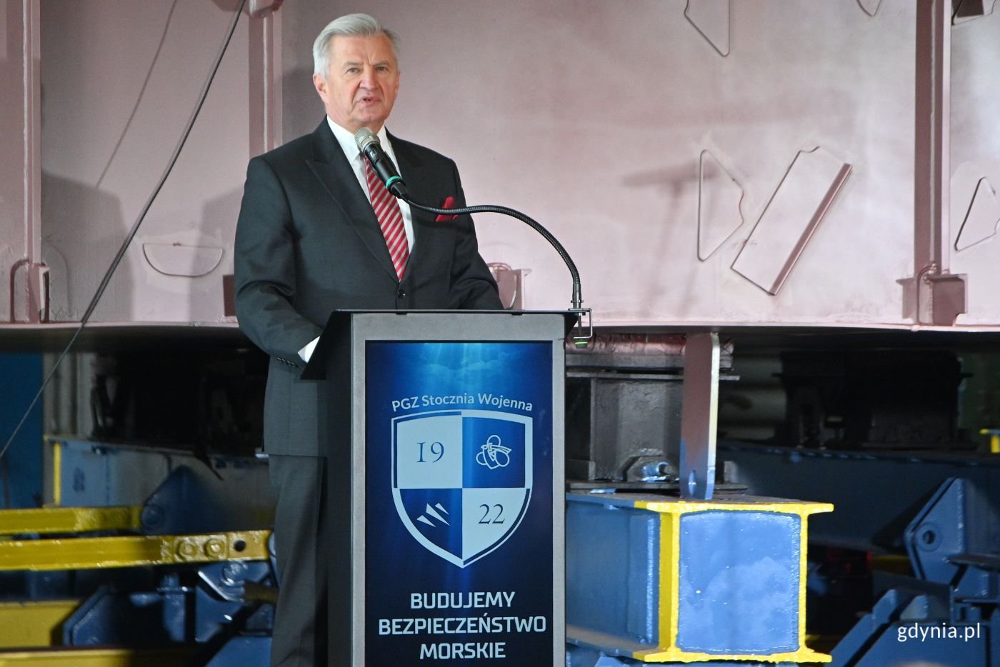 W Stoczni Wojennej powstanie jedna z najnowocześniejszych jednostek w rejonie Morza Bałtyckiego – okręt ratowniczy „Ratownik”. Zapewni on nie tylko większe możliwości w zakresie ratowania załóg okrętów podwodnych, ale również pozwoli na skuteczniejszą ochronę infrastruktury podmorskiej. W 2029 roku okręt ma zostać przekazany Marynarce Wojennej. Okręt „Ratownik” zastąpi wysłużone jednostki ORP „Piast” i ORP „Lech”. Będzie wyposażony w najnowocześniejsze technologie, dzięki czemu będzie mógł zabezpieczać ratownicze okręty podwodne, ochraniać krytyczną infrastrukturę podmorską, a także zapewnić wsparcie działań sojuszniczych NATO w regionie Morza Bałtyckiego i prowadzić kompleksowe operacje ratownicze na morzu. Okręt „Ratownik" to wyspecjalizowana jednostka wsparcia, kluczowa dla zabezpieczenia działań operacyjnych okrętów podwodnych. Nowoczesne wyposażenie ratownicze, duża autonomiczność oraz możliwości działania na pełnym morzu sprawiają, że stanie się jednym z ważniejszych elementów systemu zapewnienia bezpieczeństwa naszym marynarzom i realnym wzmocnieniem zdolności operacyjnych Sił Zbrojnych Rzeczypospolitej – mówi Stanisław Wziątek, podsekretarz stanu w Ministerstwie Obrony Narodowej. Razem budujemy bezpieczną Polskę, w której w 1926 roku powstała Gdynia. To miasto szczęśliwych, pracowitych i dumnych stoczniowców, portowców i marynarzy. Życzymy Gdyni oraz Marynarce Wojennej samych słonecznych i pogodnych dni – dodaje Marcin Ryngwelski, prezes Stoczni Wojennej. Wideo i montaż: Przemysław DopkeNowoczesna jednostka będzie miała 96 m długości, a na jej pokład wejdzie 109 osób. Na 2027 rok zaplanowano wodowanie okrętu, natomiast w 2029 roku ma on zostać przekazany Marynarce Wojennej. W Stoczni Wojennej powstaje nowoczesny okręt ratowniczy, który będzie miał 96 metrów długości. Najważniejsze jest to, że wzmocni on nasze bezpieczeństwo, które jest dla nas bardzo ważne w obecnej sytuacji geopolitycznej – mówi Teresa Bysewska, radna miasta Gdyni, przewodnicząca Komisji Sportu, Turystyki i Rekreacji. Galeria zdjęć Pobierz galerię Na zdjęciu m.in.: Mariusz Małecki, kierownik Programu Strategicznego i kmdr Piotr Skóra, szef Szefostwa Techniki Morskiej w Agencji Uzbrojenia (fot. Magdalena Starnawska) Pobierz zdjęcie Na zdjęciu (od lewej): wicewojewoda Emil Rojek, członek zarządu województwa pomorskiego Adam Gawrylik, dyrektor zarządzający ds. inwestycji Tomasz Gałązka, radna Teresa Bysewska (fot. Magdalena Starnawska) Pobierz zdjęcie Uroczystoste położenie stępki w Stoczni Wojennej (fot. Magdalena Starnawska) Pobierz zdjęcie Stępka pod okręt „Ratownik” (fot. Magdalena Starnawska) Pobierz zdjęcie Stanisław Wziąek, podsekretarz stanu w Ministerstwie Obrony Narodowej (fot. Magdalena Starnawska) Pobierz zdjęcie Emil Rojek, wicewojewoda pomorski (fot. Magdalena Starnawska) Pobierz zdjęcie Na zdjęciu m.in. podsekretarz stanu w Ministerstwie Obrony Narodowej Stanisław Wziątek, członki zarządu PGZ Stoczni Wojennej Beata Koniarska wraz z generałami i oficerami (fot. Magdalena Starnawska) Pobierz zdjęcie Warunki pobierania Wszelkie prawa do zdjęć lub grafik prezentowanych w ramach portalu, należą do Prowadzącego portal lub do podmiotów z nim współpracujących i podlegają ochronie prawnej. Prowadzący portal zezwala na kopiowanie i przedstawianie utworów jedynie w celach niekomercyjnych oraz pod warunkiem zachowania go w oryginalnej postaci i zachowaniem kontekstu tematu, do którego zostało wykorzystaneprzez redakcję gdynia.pl. Opublikowane materiały powinny zawsze zawierać źródło, czyli adres strony www.gdynia.pl. Na publikowanie utworów w innych celach wymagana jest zgoda właściciela strony czyli Prowadzącego portal. Opublikowano: 05.02.2026 12:39 Autor: Magdalena Starnawska (magdalena.starnawska@gdynia.pl) Zmodyfikowano: 05.02.2026 16:04 Zmodyfikował: Aleksandra Dylejko