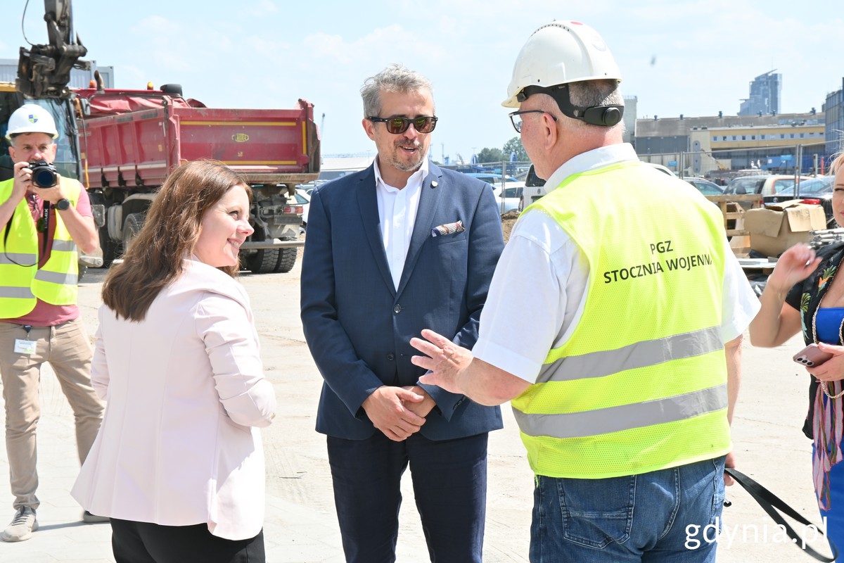 Ostatnie prace przy budowie gigantycznej, najwyższej w Polsce hali integracji kadłubów i mniejszej, ale robiącej również ogromne wrażenie hali produkcyjnej z nowoczesnym zapleczem socjalnym oraz trwający już montaż śródokręcia pierwszej z trzech planowanych do budowy w tym miejscu fregat – to aktualnie dzieje się w PGZ Stoczni Wojennej w Gdyni. W środę prezydent Gdyni Aleksandra Kosiorek, na zaproszenie prezesa stoczni, Pawła Lulewicza, odwiedziła plac budowy i zapoznała się z inwestycją, jakiej jeszcze w historii tej stoczni nie było. Jak mówi Paweł Lulewicz, prezes PGZ Stoczni Wojennej, na jej terenie trwa finalizacja inwestycji wartej aktualnie grubo ponad 300 milionów złotych. To budowa, wyposażenie i uruchomienie gigantycznej hali kadłubowej oraz hali produkcyjnej z zapleczem socjalnym. Ich przeznaczenie? Realizacja największego w historii polskiej Marynarki Wojennej, wartego miliardy złotych zamówienia, jakim jest budowa trzech okrętów klasy "Fregata" w programie "Miecznik". Prezydent Gdyni Aleksandra Kosiorek z wizytą w Stoczni Wojennej. Na zdj. od lewej: Aleksandra Kosiorek, prezydent Gdyni, Paweł Lulewicz, prezes PGZ Stoczni Wojennej oraz Maciej Poprawski, dyrektor operacyjny (fot. Magdalena Śliżewska) Stocznia szansą dla Gdyni Na zaproszenie prezesa Pawła Lulewicza, w środę 10 lipca, plac budowy odwiedziła prezydent Gdyni Aleksandra Kosiorek. Każdy z elementów inwestycji zrobił na niej duże wrażenie. To nie tylko ogromna, najwyższa w Polsce hala kadłubowa, wysoka na ponad 40, a długa na 150 metrów, ale i pełna rozmachu oraz nowoczesnych rozwiązań socjalnych hala produkcyjna. Aleksandra Kosiorek zobaczyła również z bliska proces integracji śródokręcia pierwszej z trzech zaplanowanych do budowy w tym miejscu nowoczesnych fregat. Na zakończenie wizyty otrzymała z rąk prezesa Stoczni Wojennej pamiątkową monetę, wykonaną z okazji położenia stępki pierwszej z trzech budowanych w stoczni fregat, czyli przyszłego ORP Wicher. Hala produkcyjna - nieco mniejsza, ale równie imponująca co hala integracji kadłubów (fot. Magdalena Śliżewska) Prezydent Gdyni nie kryła zadowolenia z wizyty i postępów prac. - Istnienie tego miejsca w Gdyni, w gdyńskim porcie, to ogromna renoma dla Gdyni, ale to również szansa na wspólny rozwój, bo z jednej strony możemy prowadzić tutaj bardzo duże inwestycje, serwisować statki, w tym statki NATO, które tutaj na Bałtyku przecież wciąż operują i potrzebują raz na jakiś czas zawinięcia do portu, przeprowadzenia serwisu. I szansa dla Gdyni, aby przy tej stoczni się rozwijała. Jestem bardzo zadowolona z dzisiejszej wycieczki i wiąże ogromne nadzieje co do przyszłej współpracy – powiedziała nam pani prezydent. Dodała, że jest pod ogromnym wrażeniem zarówno tempa, jak i jakości rozwoju, modernizacji oraz budowy. - Zmiany są dowodem na bardzo sprawne zarządzanie, a wielkie zaangażowanie pracowników wskazuje na kapitał i potencjał osób tam pracujących. To również dla nich powstaje zupełnie nowa infrastruktura, która diametralnie wpłynie na poprawę warunków socjalnych i pracy – zaznaczyła Aleksandra Kosiorek. Najważniejsi są ludzie Po stoczni Aleksandrę Kosiorek oprowadzał nie tylko prezes Paweł Lulewicz. Towarzyszył im również Maciej Poprawski, dyrektor operacyjny, który zna wszystkie tajniki inwestycji i z wielką pasją opowiadał o tym, co już wybudowano i co jeszcze powstanie na terenie Stoczni Wojennej. - Sama hala, sama infrastruktura robi na nas wszystkich ogromne wrażenie, jest to spektakularna inwestycja, największa w historii tej stoczni i jedna z największych w historii polskiego przemysłu okrętowego. Natomiast infrastruktura bez ludzi będzie tylko pewnego rodzaju narzędziem. Najważniejsi są ludzie i to nie jest tylko wyświechtany slogan. Rzeczywiście, w stoczni prowadzimy szereg działań zmierzających do tego, żeby te warunki pracy i płacy były coraz lepsze. Dzięki temu też jesteśmy w stanie pozyskać z rynku znakomitych fachowców, zarówno młodych absolwentów, adeptów pobliskiej Akademii Marynarki Wojennej czy Politechniki Gdańskiej, jak i doświadczonych pracowników – powiedział nam prezes Paweł Lulewicz. Hala kadłubowa robi ogromne wrażenie (fot. Magdalena Śliżewska) Dodał, że filozofią obecnego zarządu PGZ Stoczni Wojennej jest współpraca, czyli pozyskiwanie firm, które działają z powodzeniem na rynku, a nie wyrywanie czy podkupywanie pracowników. - Działamy zgodnie z dewizą, która już dziś widoczna jest na naszej hali, czyli „Stronger together”, silniejsi razem. Stawiamy na kooperacje, na współpracę – podkreślił Paweł Lulewicz. Inwestycje w liczbach Realizacja największego zamówienia w historii Stoczni Wojennej to konkretne liczby i dane techniczne, dotyczące realizowanych i planowanych inwestycji (bez parku maszynowego). Zobaczmy, co już jest, jakie ma lub będzie miało parametry: Hala Integracji Kadłubów Hala ta będzie służyła do integracji kadłubów fregat Miecznik z modułów powstających zarówno w Stoczni Wojennej, jak i u partnera konsorcjum, Remontowa Shipbuilding z Gdańska: długość: 154,3 m, szerokość: 38,5 m, wysokość: 42,99 m, powierzchnia: ok. 6 000 m2, 2 suwnice o udźwigu 100 t, 1 suwnica o udźwigu 15 t, instalacja elektryczna Ex (iskrobezpieczna), wentylacja umożliwiająca malowanie na hali, ogrzewanie podtrzymujące dodatnią temperaturę do -24°C. To warto wiedzieć o Mieczniku (mat. prasowe PGZ Stocznia Wojenna) Hala Produkcyjna W hali będą funkcjonowały wszystkie wydziały wyposażeniowe Stoczni wraz z wymaganymi do procesu produkcyjnego maszynami i urządzeniami, między innymi ślusarnia, ślusarnia ciężka, stanowisko hydrauliki siłowej, warsztat mechaniczny, stanowisko obsługi linii wałów, stanowisko do obsługi wind, pomp i sprężarek: długość: 121,2 m, szerokość: 19,95 m, wysokość: 14,91 m, 