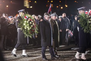 - To były tragiczne dni, które utorowały drogę do polskiej wolności – mówił dziś rano w Gdyni premier Mateusz Morawiecki. Pod pomnikiem Ofiar Grudnia '70 odbyły się poranne uroczystości upamiętniające ofiary wydarzeń sprzed 47 lat. Wzięli w nich udział m.in.: przedstawiciele władz państwowych, parlamentarzyści, władze Gdyni, przedstawiciele NSZZ „Solidarność”, uczestnicy tamtych wydarzeń oraz harcerze i młodzież.„Który skrzywdziłeś człowieka prostego…te słowa Czesława Miłosza niesłychanie mocno przywołują w pamięci grudniową tragedię. W zimny, ciemny poranek 17 grudnia, zginęło aż 13 osób. 5 kolejnych ofiar przyniosły strzały oddane w rejonie dzisiejszego Urzędu Miasta ( wówczas siedziby Prezydium Miejskiej Rady Narodowej). Wśród ofiar byli zaledwie 15-letni chłopcy, uczniowie idący do szkoły. To oficjalne statystyki, ofiar z pewnością było więcej. Wbrew temu, co utrwalała komunistyczna propaganda, użycia broni nie usprawiedliwiały ani akty przemocy ani walka z wojskiem czy milicją. Niemy krzyk, który towarzyszył pochodowi z niesionym na drzwiach zabitym mężczyzną, nie cichnie pomimo upływu lat. A plamy krwi z biało-czerwonej flagi wciąż nie wyblakły. Strzały oddawano z premedytacją, dokonując prawdziwej masakry wśród niewinnych ludzi. Strzelano do całkowicie bezbronnych, młodych i starszych, kobiet i mężczyzn, wysiadających na przystanku SKM Gdynia Stocznia w drodze do pracy. Po latach, wydarzenia te, zrekonstruowane w filmie Antoniego Krauzego „Czarny czwartek”, wciąż budzą grozę i przerażenie. Gdynia zapłaciła najwyższą cenę, choć tu, inaczej niż w sąsiednim Gdańsku, nie podpalono żadnego samochodu, nie wybito żadnej szyby, nie podpalono siedziby partyjnych władz. Pamięć o ofiarach Dokładnie dziś mija 47 lat od tamtych tragicznych wydarzeń. Z tej okazji, pod pomnikiem Ofiar Grudnia '70 w okolicach przystanku SKM Gdynia Stocznia, odbyły się oficjalne uroczystości upamiętniające ofiary grudniowej masakry. Rozpoczęły się od odegrania hymnu narodowego. Następnie szef Biura Bezpieczeństwa Narodowego - Paweł Soloch odczytał list od prezydenta RP Andrzeja Dudy.– Oddajemy hołd naszym rodakom, którzy w zniewolonej ojczyźnie otwarcie upomnieli się o chleb, godność i wolność. Pochylamy głowy przed robotnikami i innymi uczestnikami ulicznych protestów, którzy zginęli wtedy od kul funkcjonariuszy zbrodniczego reżimu – pisał w liście prezydent RP Andrzej Duda. Walka o lepszą Polskę Uroczystości zgromadziły wiele osób. Byli tam m.in. przedstawiciele władz państwowych, parlamentarzyści, przedstawiciele NSZZ „Solidarność” i władze Gdyni. Wziął też w nich udział premier Mateusz Morawiecki, który podkreślał, że bez tamtych wydarzeń wszystko mogłoby się potoczyć inaczej.– Nikt nie przywróci życia tym chłopcom i dziewczynom, tym kobietom i mężczyznom, ale tamta krew nie była na darmo. Była kamieniem milowym na drodze do wolności. Jesteśmy im winni wdzięczność, winni pamięć, bo dzięki nim możemy dzisiaj budować tę lepszą Polskę – mówił premier Mateusz Morawiecki. Wiązanki kwiatów i znicze Po oficjalnych przemówieniach, pod pomnikiem odbyła się wspólna modlitwa. Poprowadził ją Metropolita Gdański abp Sławoj Leszek Głódź. Potem odczytano Apel Pamięci, a żołnierze Marynarki Wojennej oddali salwę honorową na cześć ofiar wydarzeń grudniowych. Następnie uczestnicy uroczystości złożyli wiązanki kwiatów i znicze pod pomnikiem Ofiar Grudnia '70. Wieniec w imieniu władz Gdyni złożył prezydent miasta Wojciech Szczurek wraz z członkami delegacji.– Grudzień 1970 roku to jedna z tragiczniejszych kart naszego miasta, ale warto też pamiętać, że nie byłoby wielkiego polskiego sierpnia, nie byłoby wolności, gdyby nie ofiara robotników, tu na ulicach Gdyni. Dlatego musimy przypominać tamte wydarzenia. Należy też pamiętać o tym, że nowoczesność i przyszłość musimy budować na fundamencie pamięci – mówi Wojciech Szczurek, prezydent Gdyni. Ci, którzy pamiętają Pod pomnikiem zebrali się też mieszkańcy Gdyni, harcerze i ci, którzy byli uczestnikami tamtych wydarzeń i którzy pamiętają, jak wyglądał 17 grudnia 1970 roku. Wciąż dają oni świadectwo tamtych tragicznych dni.– Byłem marynarzem, wróciłem do portu i szedłem na pociąg, żeby dojechać do domu. Idę, a tu przy kolejce strzelanina. Nie wiedziałem co się dzieje. Nikt nie mówił, że będą strzelać. Napadli na nas. Nikt się tego nie spodziewał. Postrzelili mnie w nogi i rękę, inni ludzie padali – opowiada Stanisław Hajduk. Wieczorne uroczystości W Gdyni odbyły się także wieczorne uroczystości upamiętniające ofiary wydarzeń grudniowych z 1970 roku. Uczniowie ze Szkoły Podstawowej nr 40 w Gdyni zaprezentowali spektakl muzyczno-słowny. Następnie w kościele Najświętszego Serca Pana Jezusa odbyła się uroczysta msza święta. Po jej zakończeniu uczestnicy przeszli pod pomnik Ofiar Grudnia '70 na Placu Wolnej Polski przy Urzędzie Miasta. Tam odbyła się dalsza część uroczystości. Odczytany został Apel Poległych, a żołnierze oddali salwę honorową. Uczestnicy złożyli także pod pomnikiem wiązanki kwiatów i znicze. W uroczystościach wzięli udział m.in.: przedstawiciele władz miasta. Galeria zdjęć Pobierz galerię Poranne uroczystości upamiętniające ofiary Grudnia '70 // fot. Karol Stańczak Pobierz zdjęcie Poranne uroczystości upamiętniające ofiary Grudnia '70 // fot. Karol Stańczak Pobierz zdjęcie Poranne uroczystości upamiętniające ofiary Grudnia '70 // fot. Karol Stańczak Pobierz zdjęcie Poranne uroczystości upamiętniające ofiary Grudnia '70 // fot. Karol Stańczak Pobierz zdjęcie Poranne uroczystości upamiętniające ofiary Grudnia '70 // fot. Karol Stańczak Pobierz zdjęcie Poranne uroczystości upamiętniające ofiary Grudnia '70 // fo