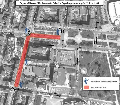 Gdynia w internetowym plebiscycie programu „Świat się kręci" Telewizji Polskiej i Onet.pl została wybrana „Miastem 25-lecia wolności". To tu zaszły największe zmiany po roku 1989 oraz żyje się najlepiej. Gdynianie mają zatem co świętować, a bawić potrafią się doskonale. W sobotę 7 czerwca zapraszamy na wydarzenie podsumowujące ćwierćwiecze wolności "Gdynia miastem 25-lecia wolności Polski". Zaczynamy o godzinie 12.00. Piętrowy autobus wyruszy spod Urzędu Miasta (al. Marsz. Piłsudskiego 52/54) i przejedzie ulicami Gdyni i odwiedzi gdyńskie dzielnice. Na każdym przystanku czekać będą ciekawe atrakcje:- pokaz taneczny grup cheerleaders z Młodzieżowego Domu Kultury w Gdyni (w tym: zespołu ELKA i zespołu Galaxy - finalistek Mistrzostw Polski, reprezentantek Polski na Mistrzostwach Europy Cheerleaders w Manchesterze),- minikonkursy wiedzy o Gdyni,- upominki, niespodzianki.Ostatnim przystankiem specjalnego autobusu będzie gdyński InfoBox! W przestrzeni przed InfoBoxem bawimy się już od godziny 19.00. A w programie:19.00 Mr. LEX20.00 Novika21.00 przyjazd autobusu pod Gdynia InfoBox i występ grupy cheerleaders z MDK21.30 gwiazda wieczoru DAAB22.15 widowiskowy pokaz sztucznych ogni...a potem Gdynia InfoBox zostanie podświetlony na biało-czerwono.PRZYSTANKI AUTOBUSU:START godz. 12.00Urząd Miasta Gdyni parking naprzeciwko Urzędu Miasta • Przejazd ul. Świętojańską → Skwer Kościuszki→ ul. 10 Lutego → ul. Władysława IV → al. Marsz. Piłsudskiego → ul. Śląska → ul. Kielecka → ul. Rolnicza → ul. Chwarznieńska → ul. Widna → ul. Uczniowskagodz. 12.30 I WITOMINO - LEŚNICZÓWKA: Okolice Skweru ks. Mówińskiego przy ul. Stawnejgodz. 12.50 II WITOMINO - RADIOSTACJA Boisko przyszkolne SP 35 - ul. Uczniowska godz. 13.15 III CHWARZNO-WICZLINOTeren rekreacyjny przy ul. Leona Staniszewskiegogodz. 13.30 IV WICZLINO OGRÓDgodz.14.00 V DĄBROWA:ul. Rdestowa/Wiczlińska - skrzyżowanie główne, Biedronka, Stokrotkagodz. 14.20 VI WIELKI KACKul. Gryfa Pomorskiego - przystanek przy supermarkecie i placu zabaw, godz. 14.40 VII KARWINYul. Korzenna - Biedronka, Stokrotkagodz. 15.00 VIII ORŁOWOPlac Górnośląski godz. 15.20 IX ORŁOWO MOLOgodz. 16.00 X REDŁOWO Przystanek na płycie Redłowskiej vis a vis szkoły podstawowej nr 34 godz. 16.20 XI SKWER ARKI godz. 16.50 XII GRABÓWEK Parking przy Biedronce - ul. Morska godz. 17.20 XIII CHYLONIAPark Kiloński godz. 17.50 XIV OBŁUŻEStawek na Obłużugodz. 18.10 XIV OBŁUŻE LEŚNE:Parking przy Szkole Podstawowej 39 - ul. Unruga Powrót autobusu ul. Unruga, Estakadą, ul. Wiśniewskiego, Dworcową , 10 Lutego na Skwer Kościuszki, miejsce postoju naprzeciwko Parku Rady Europy. Podane godziny przyjazdu autobusu są orientacyjne.Wyjazd autobusu z miejsca postoju o godz. 20.45 i przejazd na ul. Świętojańską pod Gdynia InfoBox.Uwaga! W związku z wydarzeniem od godz. 19.15 do 21.45 wyłączone zostaną z ruchu następujące ulice:- odc. ul. Świętojańskiej od ul. Armii Krajowej do Skweru Kościuszki;- Skwer Kościuszki od ul. Świętojańskiej do ul. Żeromskiego. Wyjazd z ul. Żeromskiego w kierunku ul. Świętojańskiej odbywać się będzie przez Skwer Kościuszki- Borchardta- Armii Krajowej lub Skwer Kościuszki- Waszyngtona. Jadąc ul. 10 Lutego od Dworca PKP będzie utrzymany wyłącznie lewoskręt w ul. Świętojańską. Natomiast jadąc ul. Świętojańską od Placu Kaszubskiego w kierunku ul. 10 Lutego będzie tylko możliwość skrętu w prawo w ul. 10 Lutego. Kierowcy jadąc ul. Świętojańską od Urzędu Miasta, przed skrzyżowaniem z ul. Armii Krajowej będą mieli możliwość skrętu w prawo lub w lewo. Dojazd do budynków zlokalizowanych na Skwerze Kościuszki do godz. 21.45 będzie możliwy ulicami Armii Krajowej- Borchardta- Skwer Kościuszki. Od godz. 21.45 - 22.30 na czas pokazu sztucznych ogni dodatkowo wyłączony zostanie z ruchu Skwer Kościuszki pomiędzy ul. Waszyngtona a ul. Żeromskiego. Wszyscy piesi i kierowcy proszeni są o opuszczenie przed godz. 21.45 Skweru Kościuszki w strefie pokazu sztucznych ogni. Zarząd Dróg i Zieleni w Gdyni prosi o podporządkowanie się do zmienionej organizacji ruchu oraz stosowania się do poleceń i sygnałów dawanych przez osoby kierujące ruchem. W związku z imprezą inaczej kursować będą autobusy i trolejbusy ZKM. Linie 22, 23 i 24Trolejbusy linii 22, 23 i 24 w kierunku Dworca Gł. PKP i Stoczni Gdynia, od przystanku „Żwirki i Wigury" do przystanku „Plac Kaszubski - Świętojańska" kursować będą ul. Świętojańską, Obrońców Wybrzeża, Władysława IV, 10 Lutego i Świętojańską.Na trasie objazdu obowiązywać będą przystanki:- „Armii Krajowej" przy ul. Władysława IV - I stanowisko;- „Centrum Handlowe Batory" przy ul. 10 Lutego.Trolejbusy linii 22, 23 i 24 w kierunku Cisowy i Karwin, od przystanku „Plac Kaszubski - Świętojańska" do przystanku „Żwirki i Wigury" kursować będą ul. Świętojańską, 10 Lutego, Władysława IV, Obrońców Wybrzeża i Świętojańską.Na trasie objazdu obowiązywać będą przystanki:- „Centrum Handlowe Batory" przy ul. 10 Lutego;- „Armii Krajowej" przy ul. Władysława IV - I stanowisko.Linia 710 (kursy od strony Redłowa)Większość kursów trolejbusów linii 710 wykonana zostanie objazdem: od przystanku „Żwirki i Wigury" do przystanku „3 Maja" ul. Świętojańską, Obrońców Wybrzeża, Władysława IV i 10 Lutego.Na trasie objazdu obowiązywać będą przystanki:- „Armii Krajowej" przy ul. Władysława IV - I stanowisko;- „Centrum Handlowe Batory" przy ul. 10 Lutego.Odjazdy trolejbusów linii 710 z Kaczych Buków o godz. 21:02 oraz z Dąbrowy Miętowej o godz. 21:21 i 22:06, wykonane zostaną objazdem: od przystanku "Harcerska" do przystanku "Bpa Okoniewskiego" al. Zwycięstwa, al. Piłsudskiego, ul. Śląską, Warszawską i Morską.Na trasie objazdu obowiązywać będą wszystkie przystanki innych linii. Opublikowano: 06.06.2014 00:00 Autor: D