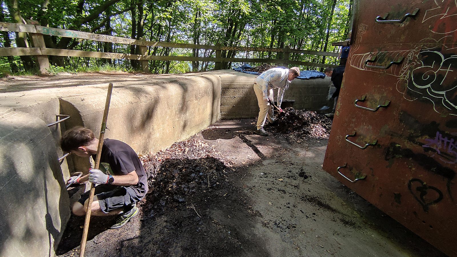 W maju i czerwcu w Redłowie historia znów ożyła – pasjonaci i wolontariusze wspólnymi siłami odświeżyli stanowiska artyleryjskie po dawnej 11. Baterii Artylerii Stałej. To właśnie tutaj znajduje się najlepiej zachowana powojenna bateria nadbrzeżna w Polsce i najatrakcyjniejszy zabytek militarny w Gdyni. Latem przyciągnie miłośników militariów i turystów spragnionych niecodziennych wrażeń. Historyczna 11. Bateria Artylerii Stałej (BAS), położona na szczycie klifowego brzegu w Redłowie, to pierwsza z jedenastu powojennych baterii artylerii nadbrzeżnej wybudowanych w latach 1946-1959 wzdłuż całego wybrzeża polskiego od Międzyzdrojów aż do ujścia Wisły. Trudny dostęp do stanowisk artyleryjskich, położonych na wysokości około 50 m nad poziomem morza sprawił, że armaty nie zostały zdemontowane i pozostały na stanowiskach po ich opuszczeniu przez wojsko.Stanowisko ogniowe nr 104 (fot. materiały pana Dariusza Dębskiego)Od niemal 20 lat przy obiektach po byłej 11. BAS odbywają się prace o różnym zakresie, mające na celu zapewnienie właściwego stanu zachowania tego zespołu. Początkowo w pracach brali udział wolontariusze i miłośnicy fortyfikacji zrzeszeni w Pomorskim Stowarzyszeniu Ochrony Fortyfikacji „Reduta”. Obecnie działania kontynuowane są przez członków Pomorskiej Komisji Krajoznawczej PTTK, członków Oddziału PTTK Marynarki Wojennej oraz Oddziału PTTK Morski w Gdyni, społecznych opiekunów zabytków, a także młodzież z gdyńskich szkół.Uczestnicy prac porządkują stanowisko ogniowe (fot. materiały pana Dariusza Dębskiego)W tym roku, podobnie jak w ubiegłych latach, organizatorem i kierującym pracami był pan Dariusz Dębski – przewodniczący Pomorskiej Komisji Krajoznawczej PTTK, społeczny opiekun zabytków i członek Komisji Opieki nad Zabytkami Zarządu Głównego PTTK. Przedsięwzięcia odbywały się w porozumieniu z Miejskim Konserwatorem Zabytków w Gdyni i Ogrodnikiem Miasta, odpowiedzialnym za rezerwat „Kępa Redłowska”. Prace przebiegały dwuetapowo i wzięło w nich udział ponad dwadzieścia osób, z czego główną grupę zaangażowanych stanowili uczniowie drugiej klasy z Zespołu Szkół Chłodniczych i Elektronicznych w Gdyni, pod opieką nauczyciela – pana Mariusza Antoniuka.Naprawa zniszczonych oznaczeń kierunkowych; na zdjęciach pan Dariusz Dębski – inicjator i kierownik prac (fot. materiały pana Dariusza Dębskiego)Tegoroczne działania obejmowały m. in. całkowite uporządkowanie stanowiska ogniowego nr 104 i częściowo stanowiska 103. Ponadto w obrębie stanowisk i armat zabezpieczono środkami przeciwkorozyjnymi (ze środków własnych) powierzchnię niektórych niemalowanych elementów metalowych, w tym fragmentów armat, wind, otworów wentylacyjnych, futryn i drzwi magazynów. Zamontowano pięć nowych oznaczeń kierunków dojścia do stanowisk artyleryjskich oraz naprawiono zniszczone ogrodzenie przy oznakowanym szlaku spacerowym. Wspólne zdjęcie uczestników pierwszego etapu prac (fot. materiały pana Dariusza Dębskiego) Prowadzone prace zainteresowały kilka grup turystów, którzy zostali zapoznani z historią i rolą 11. BAS, a także tragicznymi losami twórcy i dowódcy dywizjonu artylerii nadbrzeżnej – komandora Zbigniewa Przybyszewskiego. Warto wspomnieć, że przez teren stanowisk artyleryjskich przebiega żółty szlak trójmiejski, dzięki czemu obiekty, położone w odległości około 700 metrów od Polanki Redłowskiej, są łatwo dostępne za sprawą wytyczonej i oznakowanej trasy. Zachęcamy do odwiedzenia 11. BAS – mapa obszaru, a także dodatkowe informacje o stanowiskach artyleryjskich znajdują się w folderze. Do pobrania Bateria Artyleryjska w Redłowie - folder pdf1046kb Opublikowano: 21.07.2025 17:10 Autor: Maria Hotel (maria.hotel@gdynia.pl) Zmodyfikowano: 22.07.2025 10:27 Zmodyfikował: Paweł Jałoszewski