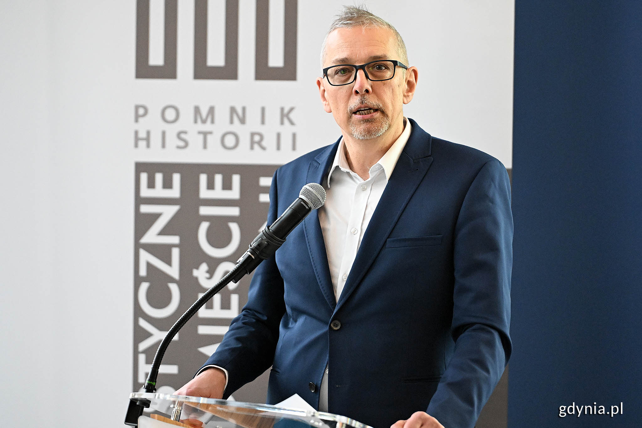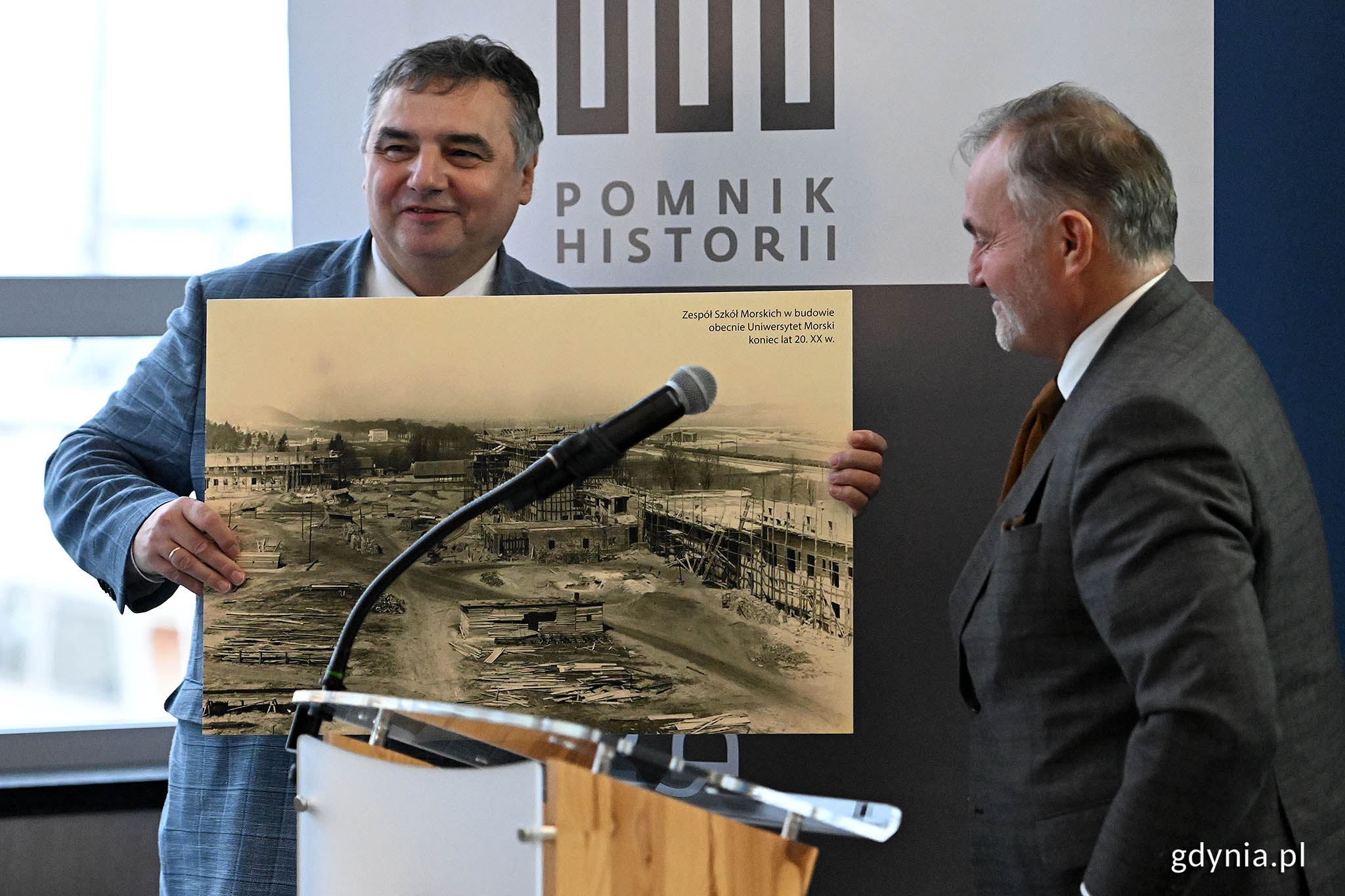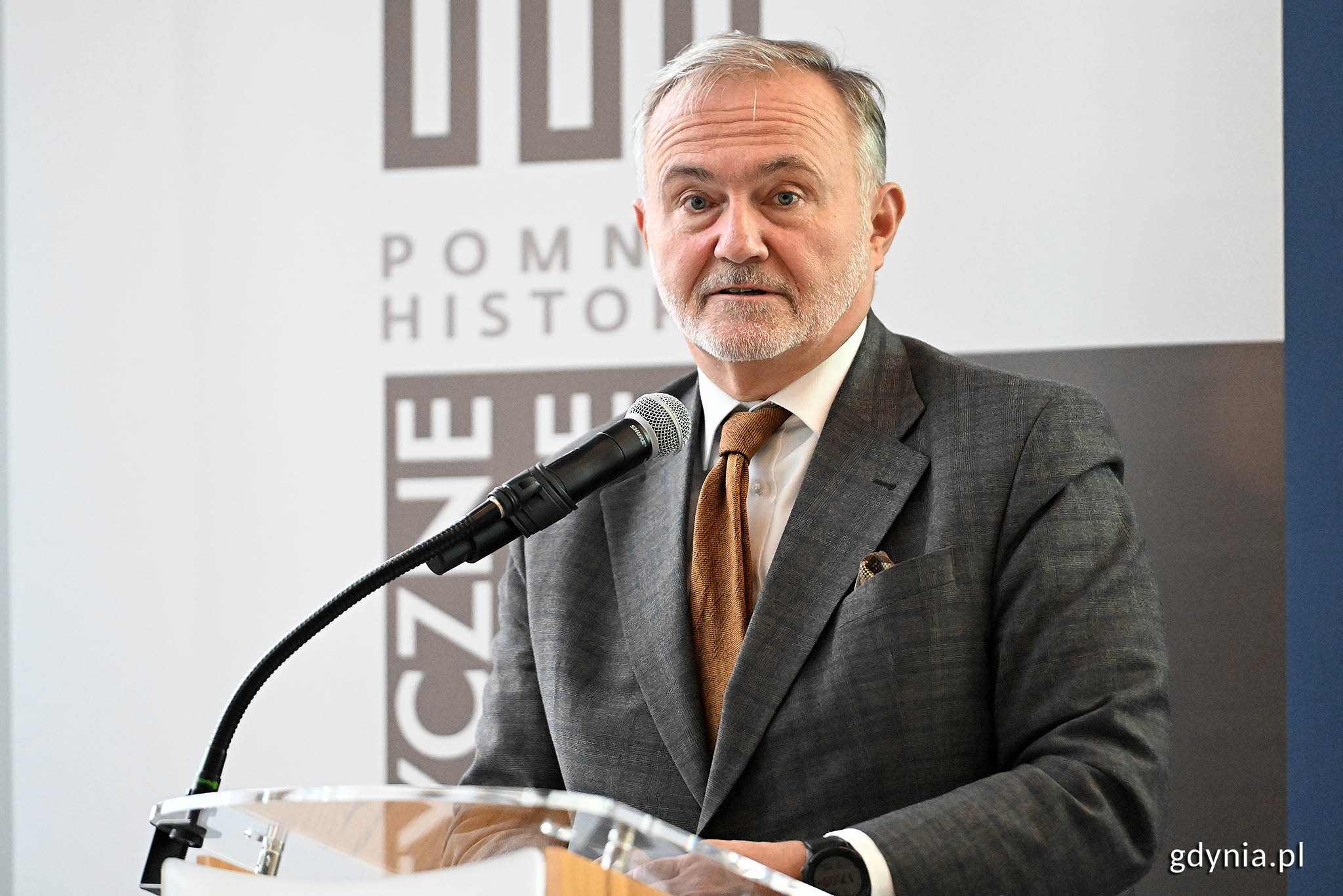 W czwartek, 14 marca, w Auli Wydziału Nawigacyjnego Uniwersytetu Morskiego w Gdyni odbyło się spotkanie pod hasłem „Wspólnie dbamy o gdyńskie zabytki”. Jego celem było zarówno podsumowanie działań, związanych z ochroną gdyńskich zabytków w 2023 roku, jak i uhonorowanie Marka Stępy, byłego wiceprezydenta Gdyni i wieloletniego naczelnika wydziału dziedzictwa za wieloletnie działania na rzecz ochrony dziedzictwa miasta. Program spotkania, prowadzonego przez Miejskiego Konserwatora Zabytków Roberta Hirscha przewidywał m.in. prezentację materiału filmowego z cyklu „Modernizm okiem mewy”, wystąpienia prezydenta Gdyni Wojciecha Szczurka, JM Rektora UMG Adama Weintrita, gospodarza obiektu oraz przygotowaną przez Biuro Miejskiego Konserwatora Zabytków prezentację ukazującą wykonane w 2023 roku w kilkunastu obiektach prace konserwatorskie. Wystąpienie prezydenta Gdyni Wojciecha Szczurka podczas spotkania „Wspólnie dbamy o gdyńskie zabytki”. Fot. Michał Puszczewicz Prezydent Gdyni Wojciech Szczurek podziękował przybyłym za wspólne działania na rzecz ochrony dziedzictwa Gdyni. - Jesteśmy w jednym z najpiękniejszych budynków naszego miasta, budynku Nawigacji, siedzibie Akademii Morskiej na skwerze Kościuszki. Dzisiaj dziękujemy inwestorom, konserwatorom, różnym aktywistom miejskim, którzy włączają się w działania na rzecz gdyńskich zabytków. Podsumujemy ubiegły rok i będziemy mówić o naszych planach - mówił nam gospodarz Gdyni przed rozpoczęciem spotkania. JM Rektor UMG Adam Weintrit odbiera z rąk Wojciech Szczurka reprodukcję zdjęcia z budowy dzisiejszego UMG. Fot. Michał Puszczewicz Jak powiedział Miejski Konserwator Zabytków Robert Hirsch, było to już szóste wydarzenie z cyklu „Wspólnie dbamy o gdyńskie zabytki”. - Gościmy na nim właścicieli zabytków, administratorów, konserwatorów zabytków, także inspektorów nadzoru i przede wszystkim miłośników zabytków. Zawsze odbywa się takie spotkanie w wyjątkowym miejscu, w ważnym zabytku Gdyni. Jest to taka forma wzajemnego wsparcia wszystkich ludzi, którzy kochają zabytki Gdyni i taki jest sens spotkania. Cieszymy się, że Uniwersytet Morski udzielił nam gościny. W tej wspanialej, ikonicznej architekturze dzisiaj właśnie się spotykamy – podkreślił Robert Hirsch. Miejski Konserwator Zabytków Robert Hirsch. Fot. Michał Puszczewicz Program czwartkowego spotkania przewidywał jeszcze jeden ważny punkt. - Dzisiaj też podziękujemy osobie, która włożyła wiele serca w ochronę dziedzictwa historycznego naszego miasta, wieloletniemu prezydentowi Gdyni Markowi Stępie, za jego wkład w nadzór nad dziedzictwem Gdyni – zdradził nam Wojciech Szczurek przed spotkaniem. Po prezentacji podsumowującej ochronę zabytków w 2023 roku prezydent Wojciech Szczurek oraz konserwator Robert Hirsch wręczyli Markowi Stępie kwiaty i planszę pamiątkową za wieloletnie działania na rzecz zabytków Gdyni. - Odbyło się kolejne spotkanie z cyklu „Wspólnie dbamy o gdyńskie zabytki”. W ramach tej dbałości zadbano również o wieloletniego wiceprezydenta miasta Gdyni, który ochronę zabytków w Gdyni uruchomił, a sam już przechodząc na emeryturę stał się swego rodzaju zabytkiem – powiedział nam żartobliwie Marek Stępa. - Jest mi bardzo miło, że ten mój wkład został doceniony i podsumowany dzisiaj – dodał były wiceprezydent Gdyni i wieloletni naczelnik Wydziału Dziedzictwa. Po spotkaniu uczestnicy wykonali sobie wspólne zdjęcie i po krótkiej przerwie zostali oprowadzeni po gmachu UMG. Pamiątkowej zdjęcie na zakończenie spotkania. W pierwszym rzędzie stoją m.in. były wiceprezydent Gdyni Marek Stępa, prezydent Gdyni Wojciech Szczurek oraz JM Rektor UMG Adam Weintrit. Fot. Michał Puszczewicz Galeria zdjęć Pobierz galerię Spotkanie „Wspólnie dbamy o gdyńskie zabytki” na wydziale Nawigacji UMG. Fot. Michał Puszczewicz Pobierz zdjęcie Budynek UMG. Fot. Michał Puszczewicz Pobierz zdjęcie Spotkanie „Wspólnie dbamy o gdyńskie zabytki” na wydziale Nawigacji UMG. Fot. Michał Puszczewicz Pobierz zdjęcie Spotkanie „Wspólnie dbamy o gdyńskie zabytki” na wydziale Nawigacji UMG. Fot. Michał Puszczewicz Pobierz zdjęcie Spotkanie „Wspólnie dbamy o gdyńskie zabytki” na wydziale Nawigacji UMG. Fot. Michał Puszczewicz Pobierz zdjęcie Spotkanie „Wspólnie dbamy o gdyńskie zabytki” na wydziale Nawigacji UMG. Fot. Michał Puszczewicz Pobierz zdjęcie Spotkanie „Wspólnie dbamy o gdyńskie zabytki” na wydziale Nawigacji UMG. Fot. Michał Puszczewicz Pobierz zdjęcie Warunki pobierania Wszelkie prawa do zdjęć lub grafik prezentowanych w ramach portalu, należą do Prowadzącego portal lub do podmiotów z nim współpracujących i podlegają ochronie prawnej. Prowadzący portal zezwala na kopiowanie i przedstawianie utworów jedynie w celach niekomercyjnych oraz pod warunkiem zachowania go w oryginalnej postaci i zachowaniem kontekstu tematu, do którego zostało wykorzystaneprzez redakcję gdynia.pl. Opublikowane materiały powinny zawsze zawierać źródło, czyli adres strony www.gdynia.pl. Na publikowanie utworów w innych celach wymagana jest zgoda właściciela strony czyli Prowadzącego portal. Opublikowano: 15.03.2024 10:39 Autor: Zygmunt Gołąb (z.golab@gdynia.pl) Zmodyfikowano: 15.03.2024 11:15 Zmodyfikował: Agnieszka Janowicz