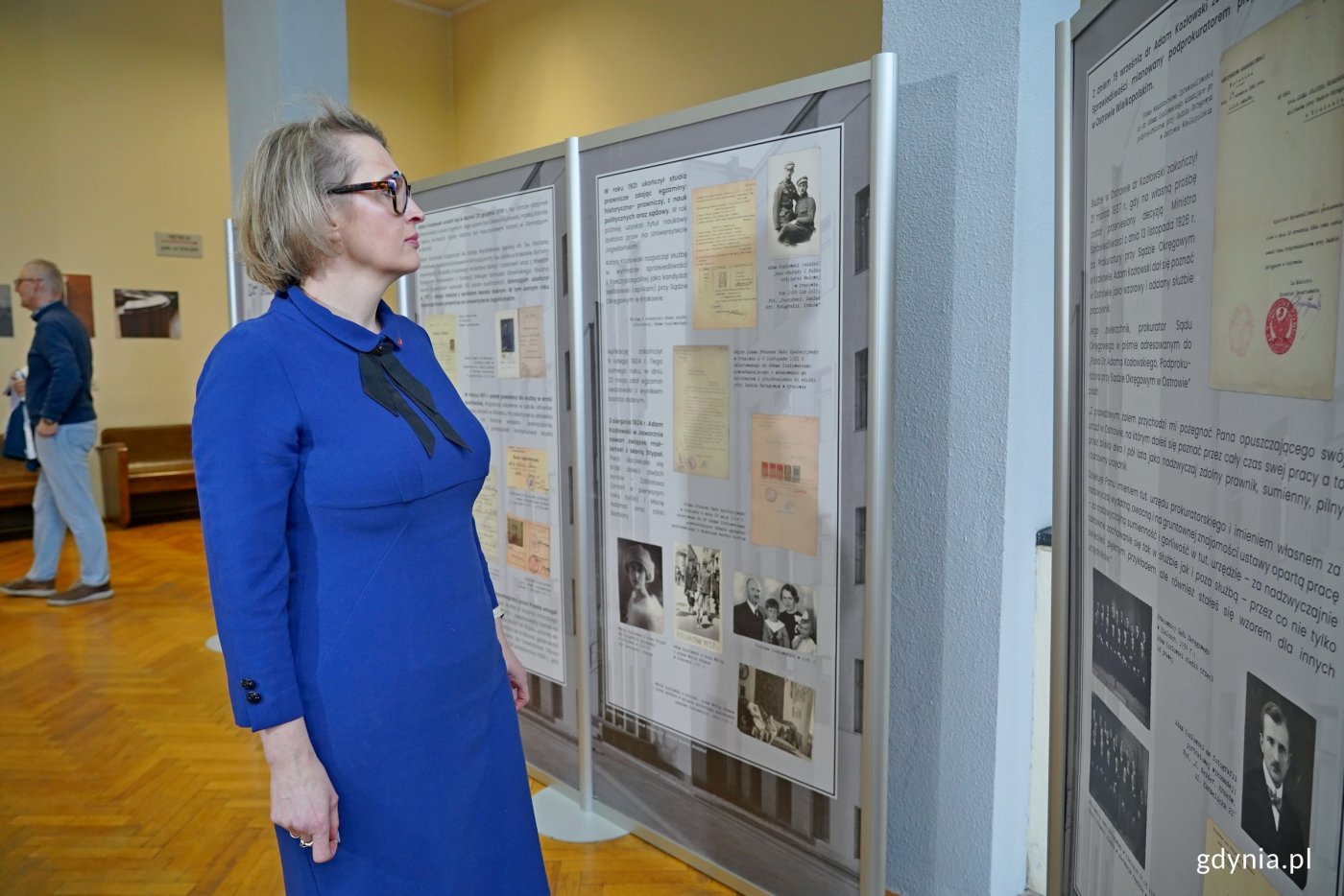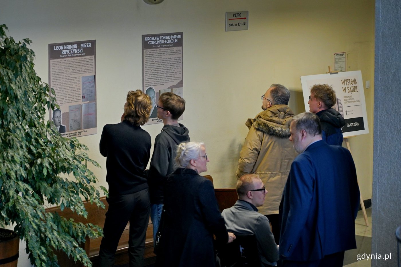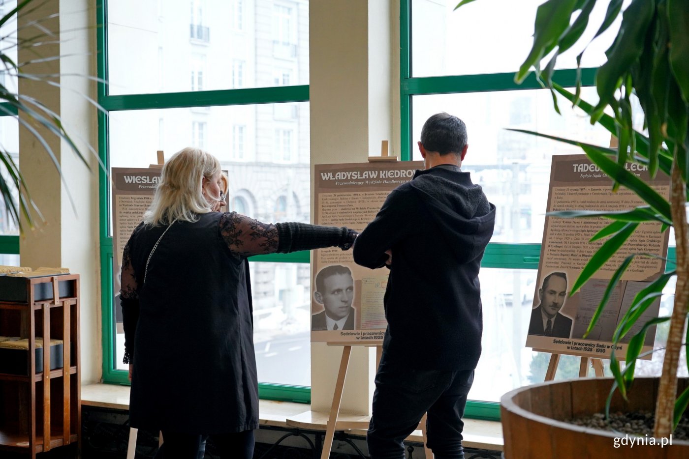 Przedwojenny gabinet sędziego, kopia oryginalnego planu budynku, dokumenty związane z budową tego miejsca czy biogramy sędziów i pracowników – m.in. to będzie można zobaczyć na wystawie, którą przygotowali pracownicy Sądu Rejonowego w Gdyni. Ekspozycja jest rozlokowana na parterze oraz trzech piętrach. Będzie otwarta dla wszystkich zainteresowanych od poniedziałku, 26 stycznia w godzinach pracy sądu. Sąd Rejonowy w Gdyni (Pl. Konstytucji 5) kryje wiele tajemnic, ale i architektoniczne detale. Będzie można je poznać, oglądając wystawę przygotowaną przez pracowników instytucji. Opowiada ona o historii tego miejsca, pracownikach czy rozwiązaniach, które zastosowano w budynku. Wystawa została stworzona dzięki inicjatywie pracowników, zupełnie bez okazji, ale ze względu na to, że uwielbiamy budynek naszego sądu. Kryje wiele tajemnic, przepiękne detale architektoniczne i chcieliśmy się po prostu nim pochwalić. Stąd ta wystawa. Opowiada ona o budynku, o ludziach, którzy pracowali tutaj. Pragniemy państwu przedstawić detale architektoniczne, biografie pracowników, sędziów i zachęcić do zwiedzania naszego budynku nie tylko w celach ściśle związanych z wymiarem sprawiedliwości, ale przede wszystkim, by podziwiać piękne wnętrza, jakie tutaj mamy – mówi Monika Selin, prezes Sądu Rejonowego w Gdyni. Wideo i montaż: Sławomir OkońEkspozycja odkrywa architektoniczny skarb gdyńskiego modernizmu, który przetrwał w stanie niezmienionym przez 90 lat. Odwiedzając wystawę w sądzie, wszyscy zainteresowani będą mogli zapoznać się z historią młodych i zdolnych architektów, którzy wygrali konkurs na projekt budynku, zachwycić się pięknem detali w budynku i na fotografiach przedwojennych oraz współczesnych, poznać przedwojenny systemem ogrzewania i napowietrzania budynku firmy Waberski i Spółka z Warszawy, poznać historię Sądu Powiatowego, Grodzkiego i Okręgowego w Gdyni oraz losy sędziów i pracowników w okresie 1928-1950. Można również przenieść się w czasie i zajrzeć do przedwojennego gabinetu sędziego czy zapoznać się z aktami prawdziwych procesów przeciwko zbrodniarzom hitlerowskim.Oficjalna inauguracja wystawy odbyło się w piątek, 23 stycznia. Uczestniczyli w nim zaproszeni goście, m.in. samorządowcy, obecni i dawni pracownicy Sądu Rejonowego w Gdyni oraz ich rodziny, przedstawiciele Muzeum Piaśnickiego czy pomorskich sądów, a także historycy. Prezydent Gdyni reprezentowała radczyni prawna Aleksandra Maślińska, a Radę Miasta Gdyni – radna Agnieszka Tokarska. Zapraszam mieszkańców Gdyni na wystawę. Dowiemy się, skąd i kto miał pomysł na budowę tego gmachu, dlaczego powstał on w tym miejscu, jakie ma znaczenie dla mieszkańców i jakie znaczenie mieli dla mieszkańców wówczas urzędujący tu sędziowie i prokuratorzy – zaznacza Tokarska. Dla wszystkich zainteresowanych wystawa będzie otwarta od poniedziałku, 26 stycznia. Można ją oglądać w godzinach pracy sądu: w poniedziałki w godz. 8:00-18:00, a od wtorku do piątku w godz. 8:00-15:00. Ekspozycja będzie dostępna do 30 września.Wystawa jest rozlokowana na kilku piętrach. Na niskim parterze znajduje się infokiosk z aktami z prawdziwych procesów sądowych, a także zdjęcia i informacje na temat systemu grzewczego. Na I piętrze umieszczono biogramy sędziów i pracowników sądu. Tam też można zobaczyć przedwojenny wystrój gabinetu sędziego. Na II piętrze jest ekspozycja zawierająca informacje o genezie i budowie gmachu sądu wzbogacona o biogramy architektów. A na III piętrze znajduje się wystawa poświęcona prokuratorowi Adamowi Kozłowskiemu oraz zdigitalizowane plany budynku sądu. Galeria zdjęć Pobierz galerię Tablica informująca o wystawie w sądzie ustawiona na korytarzu sądowym (fot. Magdalena Czernek) Pobierz zdjęcie Monika Selin, prezes Sądu Rejonowego w Gdyni, podczas inauguracji wystawy (fot. Magdalena Czernek) Pobierz zdjęcie Wśród gości zaproszonych na inaugurację znalazły się m.in. radczyni prawna Aleksandra Maślińska i radna miasta Agnieszka Tokarska (fot. Magdalena Czernek) Pobierz zdjęcie Inscenizacja rozprawy sądowej z lat 30. XX wieku zaprezentowana w ramach inauguracji wystawy w Sądzie Rejonowym w Gdyni (fot. Magdalena Czernek) Pobierz zdjęcie Goście uczestniczący w inauguracji wystawy w Sądzie Rejonowym w Gdyni (fot. Magdalena Czernek) Pobierz zdjęcie Goście zaproszeni na inaugurację wystawy w sądzie przyglądający się ekspozycji (fot. Magdalena Czernek) Pobierz zdjęcie Radna miasta Agnieszka Tokarska przyglądająca się wystawie w Sądzie Rejonowym w Gdyni (fot. Magdalena Czernek) Pobierz zdjęcie Goście zaproszeni na inaugurację wystawy w sądzie przyglądający się ekspozycji (fot. Magdalena Czernek) Pobierz zdjęcie Goście zaproszeni na inaugurację wystawy w sądzie przyglądający się ekspozycji (fot. Magdalena Czernek) Pobierz zdjęcie Goście zaproszeni na inaugurację wystawy w sądzie przyglądający się ekspozycji (fot. Magdalena Czernek) Pobierz zdjęcie Goście zaproszeni na inaugurację wystawy w sądzie przyglądający się ekspozycji (fot. Magdalena Czernek) Pobierz zdjęcie Jedne z plansz będących częścią wystawy w Sądzie Rejonowym w Gdyni (fot. Magdalena Czernek) Pobierz zdjęcie Goście zaproszeni na inaugurację wystawy w sądzie przyglądający się ekspozycji (fot. Magdalena Czernek) Pobierz zdjęcie Goście zaproszeni na inaugurację wystawy w sądzie przyglądający się ekspozycji (fot. Magdalena Czernek) Pobierz zdjęcie Goście zaproszeni na inaugurację wystawy w sądzie przyglądający się ekspozycji (fot. Magdalena Czernek) Pobierz zdjęcie Aranżacja przedwojennego gabinetu sędziego na ekspozycji w Sądzie Rejonowym w Gdyni (fot. Magdalena Czernek) Pobierz zdjęcie Warunki pobierania Wszelkie prawa do zdjęć lub grafik prezentowanych w ramach portalu, należą do Prowadzącego portal lub do podmiotów z nim ws