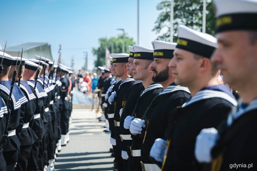 Żołnierze, marynarze i wszyscy, którzy bezpośrednio czuwają nad międzynarodowym bezpieczeństwem Polski odchodzą swoje święto. W poniedziałkowe południe, tradycyjnie 15 sierpnia w Gdyni przy pomniku Polski Morskiej odbyły się oficjalne uroczystości z okazji Święta Wojska Polskiego, a z pokładu historycznego niszczyciela ORP „Błyskawica” wybrzmiał okolicznościowy salut armatni. Dokładnie 102 lata temu – historyczny i heroiczny triumf w Bitwie Warszawskiej i powstrzymanie imperialistycznych zapędów bolszewików, dziś – duma z niepodległej i niezależnej ojczyzny, która jest wierna swoim tradycjom. 15 sierpnia po raz kolejny oddziały i jednostki wojskowe w całym kraju obchodzą swoje święto, czyli Święto Wojska Polskiego.W Gdyni lokalne oficjalne obchody z udziałem wojskowej orkiestry i z honorowymi salwami odbyły się na skwerze Kościuszki, przy miejscu symbolicznym – pomniku Polski Morskiej. To tutaj, na oczach kilkuset mieszkańców i turystów przyglądających się z zaciekawieniem odbyły się wojskowe uroczystości. - W dniu Święta Wojska Polskiego chylimy czoła przed dorobkiem naszych poprzedników, czcimy pamięć wszystkich znanych i bezimiennych żołnierzy różnych formacji, ludzi o najrozmaitszych poglądach politycznych, którzy tocząc śmiertelny bój z Armią Czerwoną dali świadectwo umiłowania ojczyzny, wolności i godności ludzkiej. Ideały wolności i niepodległości tamtego okresu dziś utwierdzają i moralnie umacniają sens naszej służby dla dobra Rzeczpospolitej Polskiej – wybrzmiała oficjalna przemowa odczytana w czasie uroczystości. Przypomnijmy, że Święto Wojska Polskiego obchodzone co roku 15 sierpnia to symboliczne upamiętnienie jednego z największych w historii zwycięstw polskich sił zbrojnych, czyli wspomnianej Bitwie Warszawskiej. To tradycja, która sięga jeszcze czasów II Rzeczypospolitej, gdy rocznice triumfu nad sowietami były obchodzone niezwykle hucznie. Choć po II wojnie światowej obchodów zaniechano, nigdy nie zostały one anulowany w żaden oficjalny sposób, za pomocą aktu prawnego. Ostatecznie zwyczaj obchodzenia najważniejszego święta polskich sił zbrojnych 15 sierpnia przywrócono na mocy ustawy, którą polski sejm podjął w 1992 roku.Delegacje złożyły wiązanki przy pomniku Polski Morskiej, fot. Kamil ZłochW poniedziałek na wszystkich okrętach Marynarki Wojennej pojawiły się Wielkie Gale Banderowe. Wcześniej marynarskie delegacje upamiętniły swoich poprzedników w Kwaterze Pamięci zlokalizowanej na oksywskim Cmentarzu Marynarki Wojennej.W gdyńskich uroczystościach przy pomniku Polski Morskiej wzięli natomiast udział nie tylko przedstawiciele Marynarki Wojennej, ale też m.in. samorządowcy, senatorowie, posłowie na sejm czy reprezentanci innych lokalnych organizacji oraz – oczywiście – mieszkańcy i turyści, którzy z zaciekawieniem podziwiali wojskowy ceremoniał. To okazja do zobaczenia m.in. defilady, salwy honorowej w wykonaniu marynarzy czy świątecznego salutu armatniego z dział na pokładzie legendarnego niszczyciela ORP „Błyskawica”, które wystrzeliły dokładnie 21 razy.Prezydent Gdyni, Wojciech Szczurek wygłosił okolicznościowe przemówienie, fot. Kamil ZłochMiasto Gdynię reprezentowała kilkuosobowa delegacja złożona z prezydenta Wojciecha Szczurka, przewodniczącej Rady Miasta Gdyni Joanny Zielińskiej oraz radnych Elżbiety Raczyńskiej i Zenona Rody. Prezydent Szczurek wygłosił okolicznościowe przemówienie, w którym podkreślił silną rolę polskiej Marynarki Wojennej w budowaniu lokalnej, gdyńskiej tożsamości. - Gdynia zrodziła się z morza, ale zanim powstała, był port wojenny, była Marynarka Wojenna, port handlowy, a dopiero potem miasto, dlatego zawsze nasze serca kierujemy w kierunku tej szczególnej i bliskiej wszystkim gdynianom formacji. Panie i Panowie oficerowie, podoficerowie, marynarze, w dniu Waszego święta chciałbym w imieniu społeczności miasta Gdyni złożyć wszystkim najserdeczniejsze słowa szacunku i wdzięczności. Mamy świadomość, że pełnicie bardzo odpowiedzialną służbę, a ostatnie miesiące pokazują, jak krucha potrafi być wolność i jak musimy być przygotowani do także zbrojnego wysiłku obrony Rzeczpospolitej. Mamy świadomość, jak wielka odpowiedzialność spoczywa na Państwa barkach – mówił prezydent Gdyni, Wojciech Szczurek. Prezydent w swoim oficjalnym wystąpieniu odniósł się także do bieżącej sytuacji geopolitycznej i wojny w Ukrainie, podkreślając że kwestia bezpieczeństwa międzynarodowego przybrała na znaczeniu i dotyczy nie tylko kraju ogarniętego wojną, ale także Polski i świata zachodniego. - Siłą rzeczy nasze oczy kierujemy na naszych braci, Ukraińców, którzy dziś walczą tak samo jak wtedy Polacy. To dzisiaj młoda Ukraina, która buduje zręby swojej państwowości musi się mierzyć z imperializmem rosyjskim. To dzisiaj na ustach całej Europy i świata jest bohaterstwo żołnierzy ukraińskich, którzy wobec przytłaczających sił wroga tak dzielnie stawiają opór, potrafiąc skutecznie zadawać ciosy wojskom rosyjskim. (…) Dzisiaj nasze wysiłki muszą zmierzać do tego, byśmy wspierali walczącą Ukrainę, bo mamy wszyscy świadomość, że żołnierz ukraiński, że naród ukraiński walczy nie tylko o wolność Ukrainy, ale walczy o wolność Polski, wolnej Europy i wolnego świata – podkreślił Wojciech Szczurek. Obchody związane ze Świętem Wojska Polskiego rozpoczęły się w Gdyni jeszcze w piątek, 13 sierpnia – wówczas m.in. na uroczystych zbiórkach, podczas których wręczono odznaczenia i akty mianowania na wyższe stopnie wojskowe spotkali się żołnierze i pracownicy jednostek wchodzących w skład 8. Flotylli Okrętów Wojennych Marynarki Wojennej.Mieszkańcy i turyści przyglądali się wojskowym uroczystościom, fot. Kamil ZłochJeszcze w poniedziałkowe popołudnie mieszkańcy mogą
