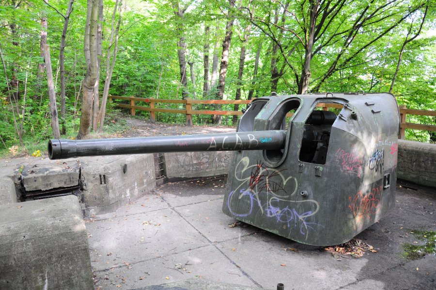 Odrestaurowane armaty są najbardziej efektowną częścią 11. Baterii Artylerii Stałej (BAS) w Gdyni Redłowie. 11. BAS to najlepiej zachowana bateria nadbrzeżna w Polsce, a jednocześnie najatrakcyjniejszy zabytek militarny w Gdyni. Historyczne relikty z czasów zimnej wojny – armaty stanowisk ogniowych zostały poddane bieżącej konserwacji, oczyszczeniu i malowaniu w charakterystyczne maskowanie odzwierciedlające trzy różne okresy ich służby. Bateria redłowska wchodziła w skład 31. Dywizjonu Artylerii Nadbrzeżnej, formowanego w latach 1946-1959 wzdłuż całego polskiego wybrzeża od Międzyzdrojów aż do ujścia Wisły. Usytuowana na wysokim klifie około 50 m n.p.m., miała bronić podejść do Portu w Gdyni Oksywiu - Głównej Bazy Marynarki Wojennej. 22 września 1950 r. otrzymała tytuł 11. Baterii Artylerii Stałej, a pięć lat później została włączona w skład 32. Dywizjonu Artylerii Nadbrzeżnej utworzonego w Orłowie. W 1963 r. rozpoczęła się stopniowa redukcja wojska, która ostatecznie zakończyła się 12 marca 1974 r. decyzją o rozformowaniu jednostki. Opuszczona, narażona na niszczące działanie czasu, przyrody i ludzi, bateria redłowska ulegała stopniowemu procesowi niszczenia. Dopiero rok 2005 przyniósł ponowne zainteresowanie baterią i początek stopniowej rewaloryzacji stanowisk ogniowych. Do działania włączyło się Pomorskie Stowarzyszenie Ochrony Fortyfikacji „Reduta”, Pomorskie Forum Eksploracyjne, Pomorska Komisja Krajoznawcza PTTK, Marynarka Wojenna, Komenda Miejska Państwowej Straży Pożarnej w Gdyni, Rada Dzielnicy Redłowo, Biuro Miejskiego Konserwatora Zabytków w Gdyni oraz prywatne firmy. Część obiektów 11. BAS leży w granicach zamkniętej jednostki wojskowej w północno – zachodniej części Rezerwatu „Kępa Redłowska”. Stanowiska ogniowe z armatami znajdują się jednak na ogólnodostępnym terenie, ok. 700 m na południe od Polanki Redłowskej, prowadzi do nich żółty Szlak Kępy Redłowskiej, możliwe jest ich zwiedzanie.Uwaga. Obiekt jest zabytkiem militarnym, który nie był przystosowany do zwiedzania przez osoby postronne. Prace, sfinansowane z budżetu Gminy Gdynia, wykonała firma STUDNIAK DESIGN. Efekty prezentujemy na załączonych fotografiach. Zwiedzanie musi odbywać się z zachowaniem szczególnej ostrożności! Galeria zdjęć Pobierz galerię Stanowisko ogniowe nr 4 przed odrestaurowaniem // fot. Michał Kowalski Pobierz zdjęcie Stanowisko ogniowe nr 1 po restauracji // fot. Biuro Miejskiego Konserwatora Zabytków Pobierz zdjęcie Stanowisko ogniowe nr 1 przed odrestaurowaniem // fot. Michał Kowalski Pobierz zdjęcie Stanowisko ogniowe nr 1 po restauracji // fot. Biuro Miejskiego Konserwatora Zabytków Pobierz zdjęcie Stanowisko ogniowe nr 3 przed odrestaurowaniem // fot. Michał Kowalski Pobierz zdjęcie Stanowisko ogniowe nr 3 po restauracji // fot. Biuro Miejskiego Konserwatora Zabytków Pobierz zdjęcie Stanowisko ogniowe // fot. Biuro Miejskiego Konserwatora Zabytków Pobierz zdjęcie Stanowisko ogniowe nr 1 przed odrestaurowaniem // fot. Michał Kowalski Pobierz zdjęcie Stanowisko ogniowe nr 4 po restauracji // fot. Biuro Miejskiego Konserwatora Zabytków Pobierz zdjęcie Stanowisko ogniowe nr 3 od strony wejścia // fot. Biuro Miejskiego Konserwatora Zabytków Pobierz zdjęcie Warunki pobierania Wszelkie prawa do zdjęć lub grafik prezentowanych w ramach portalu, należą do Prowadzącego portal lub do podmiotów z nim współpracujących i podlegają ochronie prawnej. Prowadzący portal zezwala na kopiowanie i przedstawianie utworów jedynie w celach niekomercyjnych oraz pod warunkiem zachowania go w oryginalnej postaci i zachowaniem kontekstu tematu, do którego zostało wykorzystaneprzez redakcję gdynia.pl. Opublikowane materiały powinny zawsze zawierać źródło, czyli adres strony www.gdynia.pl. Na publikowanie utworów w innych celach wymagana jest zgoda właściciela strony czyli Prowadzącego portal. Do pobrania Ulotka do pobrania - Bateria Artyleryjska w Redłowie pdf1046kb Opublikowano: 17.10.2017 10:50 Autor: Anna Częścik (a.czescik@gdynia.pl) Zmodyfikowano: 18.10.2017 11:57 Zmodyfikował: Dorota Nelke