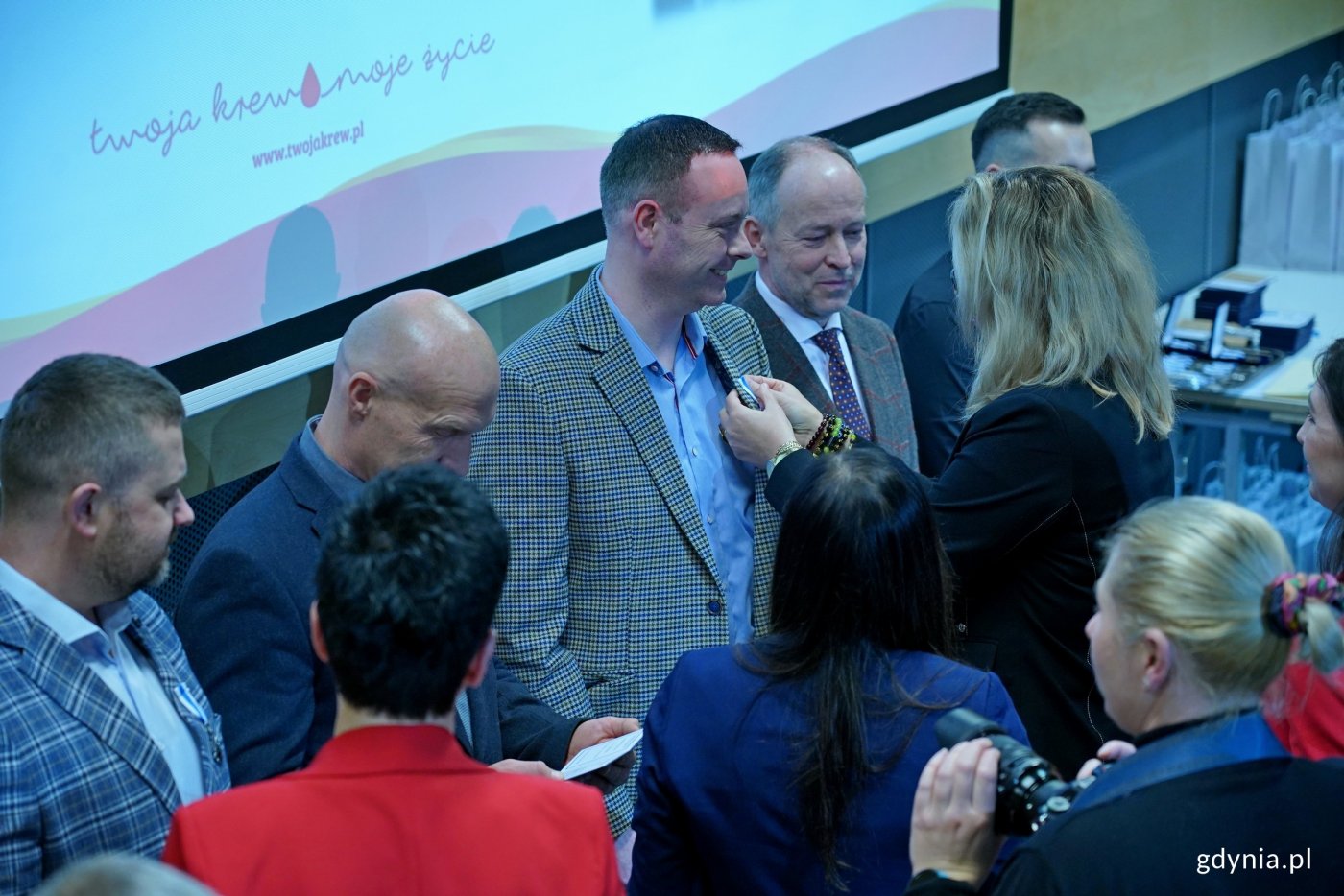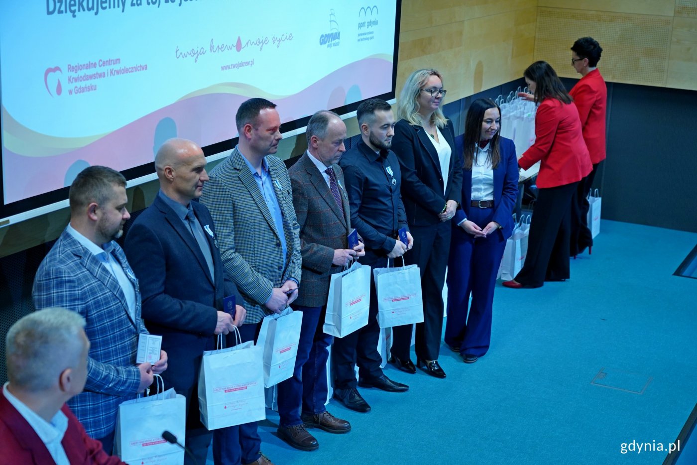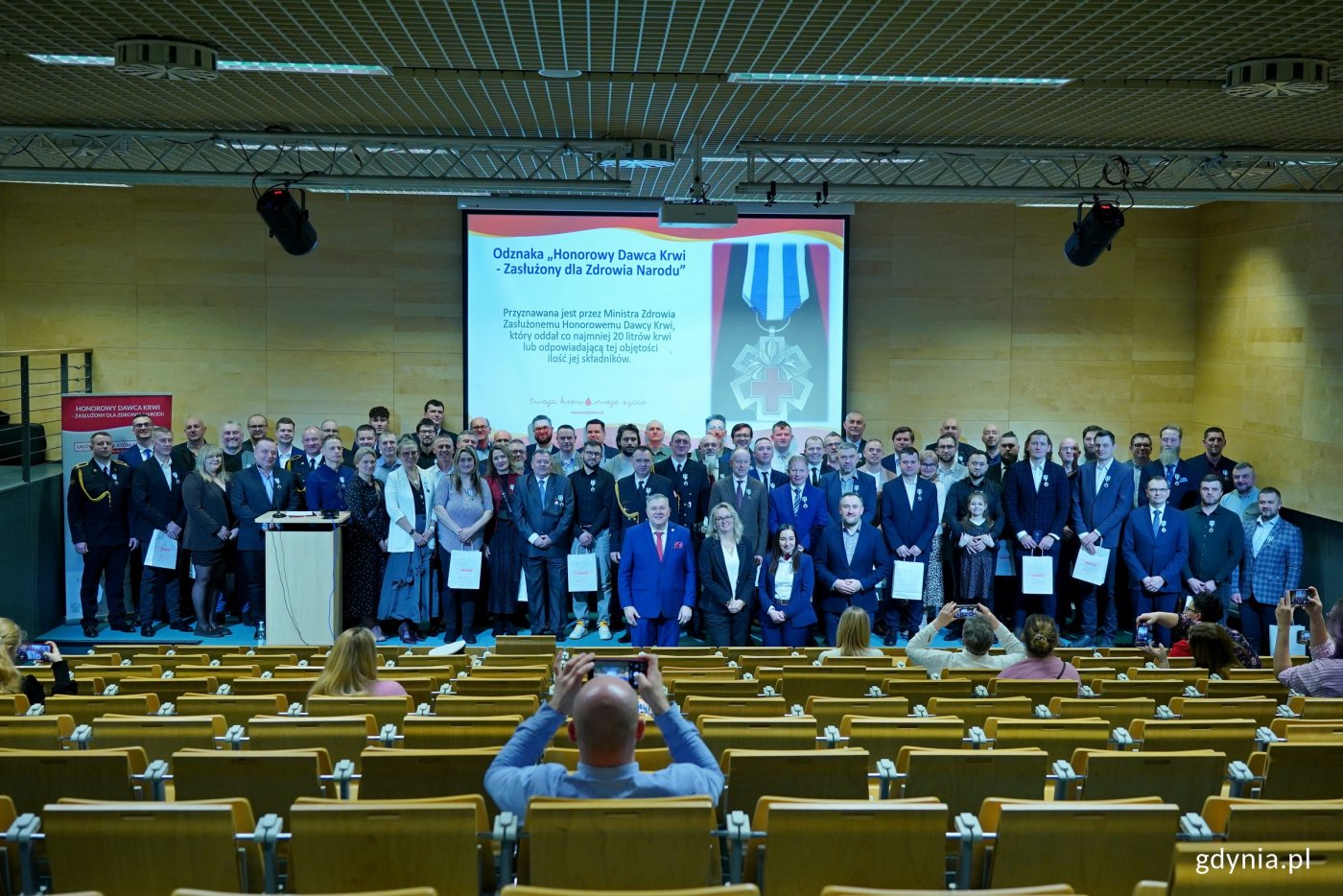 Dzielą się z innymi najcenniejszym darem. Są nazywani cichymi bohaterami, bo niosą pomoc i inspirują innych. Ponad 100 krwiodawców z Pomorza zostało uhonorowanych odznaczeniami Honorowy Dawca Krwi Zasłużony dla Zdrowia Narodu, które są przyznawane przez ministra zdrowia. Wśród nich 45 osób z Gdyni, a także mieszkańcy Wejherowa i Kartuz. Uroczysta gala wręczenia odznaczeń odbyła się 3 marca w Pomorskim Parku Naukowo-Technologicznym. Krew ratuje życie. To dar, którego nie da się wyprodukować. Dlatego jest tak cenny. Gdynianie chętnie się nim dzielą. Pokazali podczas akcji „Sto litrów krwi na stulecie Gdyni”. W jej ramach udało się zebrać 118 litrów tego płynu. Nie byłoby to możliwe bez udziału honorowych dawców krwi.Krwiodawcy z Pomorza, którzy oddali ponad 20 litrów krwi, zostali uhonorowani przez ministra zdrowia resortowymi odznaczeniami Honorowy Dawca Krwi Zasłużony dla Zdrowia Narodu. Uroczysta gala, podczas której je wręczono, odbyła się we wtorek, 3 marca w Pomorskim Parku Naukowo-Technologicznym. Odznaczenia otrzymało ponad 100 osób z Gdyni, Wejherowa i Kartuz, co pokazało wspólnotę i solidarność mieszkańców regionu na rzecz ratowania ludzkiego życia. Wideo i montaż: Dominika Nycz45 honorowym krwiodawcom z Gdyni odznaczenia i legitymacje wręczyli wiceprezydent Tomasz Augustyniak i dr hab. Marlena Robakowska – dyrektor Regionalnego Centrum Krwiodawstwa i Krwiolecznictwa w Gdańsku. Był to wyraz podziękowania za ich zaangażowanie. Dzisiejsza okazja to jedyne w swoim rodzaju uroczystość, podczas której honoruje się tych krwiodawców, którzy są zasłużeni dla polskiego narodu, a za takich uważa się tych, którzy oddali ponad 20 litrów krwi. Dla nas jest to szczególnie ważne, bo zachęcamy wieloma działaniami, które realizujemy w mieście, do tego, aby krew oddawać. To dar serca, który ratuje życie. Natomiast przy tej okazji też dziękujemy krwiodawcom za to, co się udało wspólnie w Gdyni w ostatnim czasie zrobić. To nasza akcja „Sto litrów krwi na stulecie miasta”. Całkiem niedawno miała ona swój finał, który zakończył się wielkim sukcesem. Bez tych osób na pewno by się to nie udało – mówi Tomasz Augustyniak, wiceprezydent Gdyni.Dar krwi jest darem najważniejszym. Bez krwi nie da się uratować wielu żyć. Bez krwi wciąż nie da się przeprowadzić wielu zabiegów czy budować dawstwa narządów. To jest dar, którego nie sposób przecenić. Trzeba pamiętać, że wszyscy, którzy oddają krew, są po prostu cichymi bohaterami. Natomiast takie uroczystości są też momentem, w którym możemy sobie pozwolić na pokazanie tych cichych bohaterów naszego systemu ochrony zdrowia – podkreśla dr hab. Marlena Robakowska, dyrektor Regionalnego Centrum Krwiodawstwa i Krwiolecznictwa w Gdańsku. Podczas gali uhonorowano również 45 krwiodawców z Wejherowa oraz 11 z Kartuz. Galeria zdjęć Pobierz galerię Dr hab. Marlena Robakowska – dyrektor Regionalnego Centrum Krwiodawstwa i Krwiolecznictwa w Gdańsku przemawiająca podczas gali honorującej dawców krwi z regionu (fot. Magdalena Czernek) Pobierz zdjęcie Wiceprezydent Gdyni Tomasz Augustyniak przemawiający podczas gali honorującej dawców krwi z regionu (fot. Magdalena Czernek) Pobierz zdjęcie Uczestnicy gali honorującej dawców krwi z regionu (fot. Magdalena Czernek) Pobierz zdjęcie Wiceprezydent Gdyni Tomasz Augustyniak przemawiający podczas gali honorującej dawców krwi z regionu (fot. Magdalena Czernek) Pobierz zdjęcie Uczestnicy gali honorującej dawców krwi z regionu (fot. Magdalena Czernek) Pobierz zdjęcie Iwona Piastowska – sekretarz miasta Wejherowa, przemawiająca podczas gali honorującej dawców krwi z regionu (fot. Magdalena Czernek) Pobierz zdjęcie Mieczysław Gołuński, burmistrz Kartuz, przemawiający podczas gali honorującej dawców krwi z regionu (fot. Magdalena Czernek) Pobierz zdjęcie Wiceprezydent Gdyni Tomasz Augustyniak i dr hab. Marlena Robakowska – dyrektor Regionalnego Centrum Krwiodawstwa i Krwiolecznictwa w Gdańsku wręczający odznaki i legitymacje honorowym dawcom krwi z Gdyni (fot. Magdalena Czernek) Pobierz zdjęcie Odznaczeni honorowi dawcy krwi z Gdyni wraz z wiceprezydentem Tomaszem Augustyniakiem i dr hab. Marleną Robakowską – dyrektor Regionalnego Centrum Krwiodawstwa i Krwiolecznictwa w Gdańsku podczas gali (fot. Magdalena Czernek) Pobierz zdjęcie Wiceprezydent Gdyni Tomasz Augustyniak i dr hab. Marlena Robakowska – dyrektor Regionalnego Centrum Krwiodawstwa i Krwiolecznictwa w Gdańsku wręczający odznaki i legitymacje honorowym dawcom krwi z Gdyni (fot. Magdalena Czernek) Pobierz zdjęcie Wiceprezydent Gdyni Tomasz Augustyniak i dr hab. Marlena Robakowska – dyrektor Regionalnego Centrum Krwiodawstwa i Krwiolecznictwa w Gdańsku wręczający odznaki i legitymacje honorowym dawcom krwi z Gdyni (fot. Magdalena Czernek) Pobierz zdjęcie Odznaczeni honorowi dawcy krwi z Gdyni wraz z wiceprezydentem Tomaszem Augustyniakiem i dr hab. Marleną Robakowską – dyrektor Regionalnego Centrum Krwiodawstwa i Krwiolecznictwa w Gdańsku podczas gali (fot. Magdalena Czernek) Pobierz zdjęcie Wiceprezydent Gdyni Tomasz Augustyniak i dr hab. Marlena Robakowska – dyrektor Regionalnego Centrum Krwiodawstwa i Krwiolecznictwa w Gdańsku wręczający odznaki i legitymacje honorowym dawcom krwi z Gdyni (fot. Magdalena Czernek) Pobierz zdjęcie Odznaczeni honorowi dawcy krwi z Gdyni wraz z wiceprezydentem Tomaszem Augustyniakiem i dr hab. Marleną Robakowską – dyrektor Regionalnego Centrum Krwiodawstwa i Krwiolecznictwa w Gdańsku podczas gali (fot. Magdalena Czernek) Pobierz zdjęcie Wiceprezydent Gdyni Tomasz Augustyniak i dr hab. Marlena Robakowska – dyrektor Regionalnego Centrum Krwiodawstwa i Krwiolecznictwa w Gdańsku wręczający odznaki i legitymacje honorowym dawcom krwi z Gdyni (fot. Magdalena Czernek) Pobierz zdjęcie Odznaczeni honorowi dawcy krwi z Gdyni wraz z