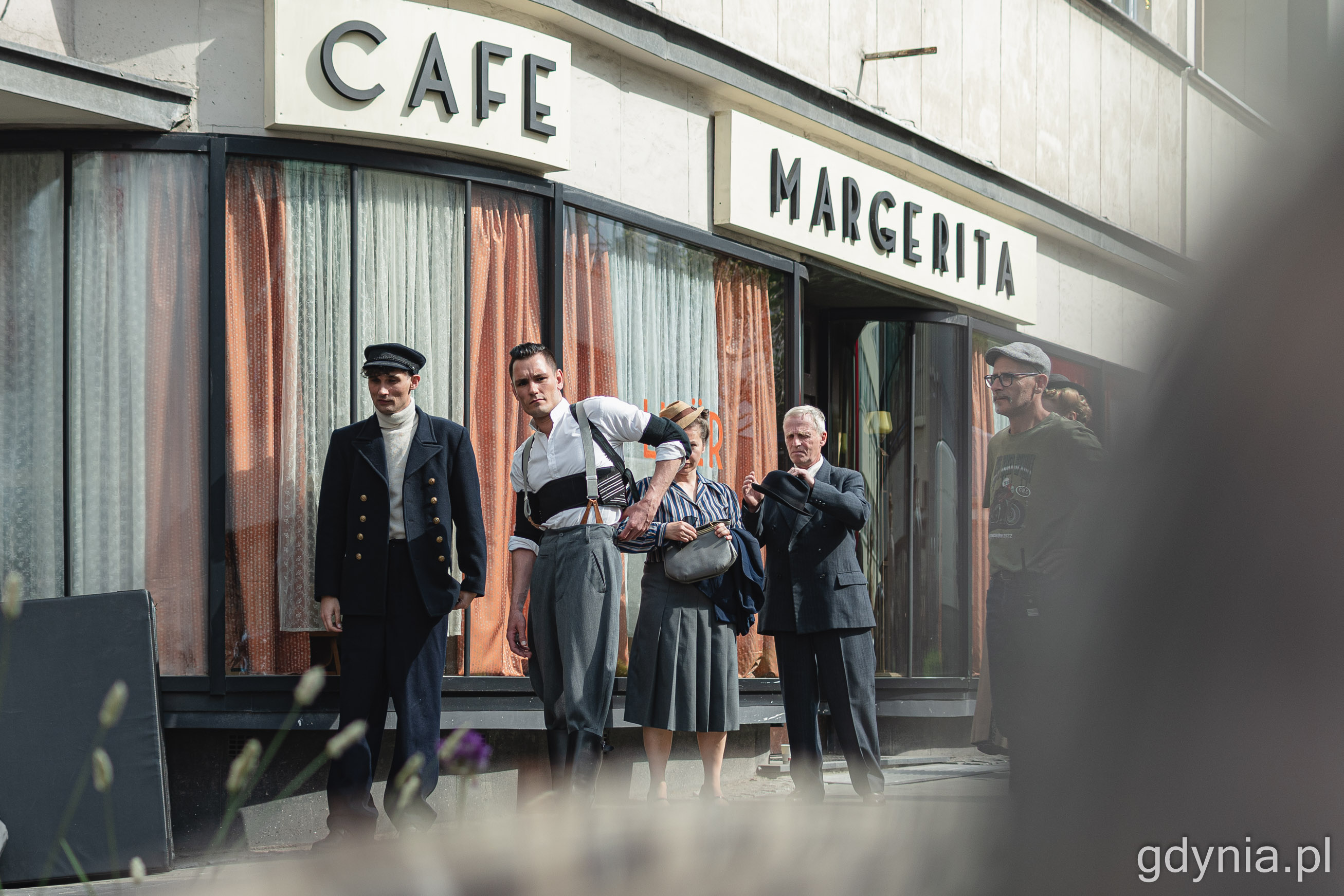 Niektórzy pamiętają, jak wiosną w naszym mieście pojawiły się złowrogie sztandary z hitlerowskimi swastykami, samochody z epoki i witryny sklepowe z niemieckimi napisami. Na szczęście okazało się wówczas, że to tylko plan filmowy nowej produkcji TVP „Zatoka szpiegów”. Pierwszy odcinek serialu obejrzymy już 7 stycznia. W tle wojennych perypetii pojawi się wiele znanych gdynianom miejsc. Zdjęcia do historycznego serialu TVP „Zatoka Szpiegów” w reżyserii Michała Rogalskiego kręcono w różnych lokalizacjach Trójmiasta, w tym również w Gdyni. W maju na kilka dni na ul. 3 Maja i w okolicach placu Grunwaldzkiego pojawiły się sztandary ze swastykami, stylizowane na niemieckie witryny sklepowe, a kawiarnia „Cyganeria” zmieniła nazwę na „Cafe Margerita”.Nad 9-odcinkowym serialem dla TVP pracowała ekipa Akson Studio. Do przygotowania planu i scenografii z epoki zaangażowana była cała rzesza ludzi. Około 50 ludzi pracowała na to, żeby osiągnąć odpowiedni efekt inscenizacyjny. Cała ekipa serialu liczyła sobie 140 osób. Do tego doszli specjaliści od budowy dekoracji. Efekty ciężkiej pracy m.in. scenografa, reżysera i operatora finalnie będziemy podziwiać na kanale TVP1 już od 7 stycznia 2024 roku. Wojna, intryga i miłość Na planie serialu „Zatoka Szpiegów”. Fot. Kamil Złoch/archiwumFabuła „Zatoki szpiegów” inspirowana jest prawdziwymi wydarzeniami, które miały miejsce w pierwszych latach II wojny światowej. Chodzi m.in. o wizytę w Gdyni pancernika „Bismarck” czy niemieckie prace nad torpedami.Franz Neumann jest młodym porucznikiem Abwehry. Wywodzi się z dobrej niemieckiej rodziny od lat mieszkającej w Gdańsku, ale któregoś dnia odkrywa swoje polskie pochodzenie. Początkowo wierny obywatel Trzeciej Rzeszy, w rezultacie skomplikowanej intrygi decyduje się zostać polskim szpiegiem.Franz na swojej drodze spotka kobiety, z którymi połączą go skomplikowane relacje. M.in. Polkę Annę – wychowaną na styku dwóch kultur i dwóch wrogich narodów oraz fascynującą Niemkę Gretę, żonę komandora Kesslera, którego działania ma szpiegować Franz.Zagrożony dekonspiracją, okłamywany przez najbliższych, kontrolowany przez najbliższego przyjaciela Engela, młody oficer musi wybierać pomiędzy lojalnością wobec rodziny, wiernością ojczyźnie, a skomplikowanymi relacjami z kobietami. W rolach głównych serialu zobaczymy m.in.: Bartosza Gelnera, Mariusza Bonaszewskiego, Karolinę Kominek, Marię Świłpłę, Wiktorię Supryn i Michała Balickiego. Reżyserem jest Michał Rogalski. Scenariusz napisali Michał Godzic i Wojciech Lepianka. Opublikowano: 20.12.2023 08:08 Autor: Magdalena Śliżewska (magdalena.slizewska@gdynia.pl) Zmodyfikowano: 20.12.2023 16:52 Zmodyfikował: Agnieszka Janowicz