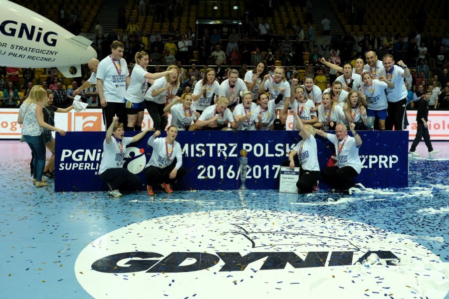 Szczypiornistki Vistalu Gdynia rozegrały jedno z najważniejszych spotkań w historii klubu. Wygrywając w Gdynia Arenie 24-22 z Metraco Zagłębie Lubin sięgnęły po drugie w historii Mistrzostwo Polski. W imieniu władz miasta sukcesu gratulował zapalony kibic gdyńskich szczypiornistek, wiceprezydent Marek Stępa. Poprzedni tytuł najlepszej drużyny w kraju pamięta z obecnej ekipy Vistalu Małgorzata Gapska. To jedna z najbardziej doświadczonych zawodniczek w kadrze gdyńskiej drużyny, mająca na swoim koncie także występy na mistrzostwach świata. Ponadto bramkarka Vistalu mogła liczyć w obecnym sezonie na swoje koleżanki na tej pozycji jak Weronika Kordowiecka, czy Irena Szwonka.Gdynianki obok rywalek z Lubina były w sezonie 2016/2017 najlepszą drużyną w lidze pod względem wygranych spotkań. Szczypiornistki Vistalu przed dzisiejszym meczem zwyciężyły w 23 spotkaniach, 2 kończyły się remisem, zaś w 6 grach schodziły z parkietu pokonane.Oczy gdyńskich kibiców dzisiejszego popołudnia były zwrócone na Monikę Kobylińską. To jedna z najbardziej wartościowych kart jaką w swej talii posiadał trener Paweł Tetelewski. Dla szczypiornistki Vistalu był to ostatni mecz w rozgrywkach PGNiG Superligi przed wyjazdem do Niemiec. Za naszą zachodnią granicą rozgrywająca będzie kontynuowała karierę w TuS Metzingern. I pożegnanie wypadło doskonale – Kobylińska zdobyła aż 5 goli.Środowy finał rozgrywek PGNiG Superligi Kobiet przyniósł także drugie pożegnanie. Z klubu odchodzi Paweł Tetelewski, który prowadził gdynianki przez trzy lata.Vistal ma na swoim koncie już dwa tytuły Mistrza Polski. Ponadto gdyńskie szczypiornistki mogą się poszczycić jednym wicemistrzostwem kraju, zaś czterokrotnie nasze zawodniczki stawały na najniższym stopniu podium a także trzykrotnie zdobywały Puchar Polski.fot. Dawid Linkowski, gdyniasport.pl Galeria zdjęć Pobierz galerię Vistal Gdynia mistrzem Polski w sezonie 2016/2017, fot. Dawid Linkowski, gdyniasport.pl Pobierz zdjęcie Vistal Gdynia mistrzem Polski w sezonie 2016/2017, fot. Dawid Linkowski, gdyniasport.pl Pobierz zdjęcie Vistal Gdynia mistrzem Polski w sezonie 2016/2017, fot. Dawid Linkowski, gdyniasport.pl Pobierz zdjęcie Vistal Gdynia mistrzem Polski w sezonie 2016/2017, fot. Dawid Linkowski, gdyniasport.pl Pobierz zdjęcie Vistal Gdynia mistrzem Polski w sezonie 2016/2017, fot. Dawid Linkowski, gdyniasport.pl Pobierz zdjęcie Vistal Gdynia mistrzem Polski w sezonie 2016/2017, fot. Dawid Linkowski, gdyniasport.pl Pobierz zdjęcie Vistal Gdynia mistrzem Polski w sezonie 2016/2017, fot. Dawid Linkowski, gdyniasport.pl Pobierz zdjęcie Vistal Gdynia mistrzem Polski w sezonie 2016/2017, fot. Dawid Linkowski, gdyniasport.pl Pobierz zdjęcie Vistal Gdynia mistrzem Polski w sezonie 2016/2017, fot. Dawid Linkowski, gdyniasport.pl Pobierz zdjęcie Vistal Gdynia mistrzem Polski w sezonie 2016/2017, fot. Dawid Linkowski, gdyniasport.pl Pobierz zdjęcie Vistal Gdynia mistrzem Polski w sezonie 2016/2017, fot. Dawid Linkowski, gdyniasport.pl Pobierz zdjęcie Vistal Gdynia mistrzem Polski w sezonie 2016/2017, fot. Dawid Linkowski, gdyniasport.pl Pobierz zdjęcie Vistal Gdynia mistrzem Polski w sezonie 2016/2017, fot. Dawid Linkowski, gdyniasport.pl Pobierz zdjęcie Vistal Gdynia mistrzem Polski w sezonie 2016/2017, fot. Dawid Linkowski, gdyniasport.pl Pobierz zdjęcie Vistal Gdynia mistrzem Polski w sezonie 2016/2017, fot. Dawid Linkowski, gdyniasport.pl Pobierz zdjęcie Vistal Gdynia mistrzem Polski w sezonie 2016/2017, fot. Dawid Linkowski, gdyniasport.pl Pobierz zdjęcie Vistal Gdynia mistrzem Polski w sezonie 2016/2017, fot. Dawid Linkowski, gdyniasport.pl Pobierz zdjęcie Vistal Gdynia mistrzem Polski w sezonie 2016/2017, fot. Dawid Linkowski, gdyniasport.pl Pobierz zdjęcie Vistal Gdynia mistrzem Polski w sezonie 2016/2017, fot. Dawid Linkowski, gdyniasport.pl Pobierz zdjęcie Vistal Gdynia mistrzem Polski w sezonie 2016/2017, fot. Dawid Linkowski, gdyniasport.pl Pobierz zdjęcie Vistal Gdynia mistrzem Polski w sezonie 2016/2017, fot. Dawid Linkowski, gdyniasport.pl Pobierz zdjęcie Vistal Gdynia mistrzem Polski w sezonie 2016/2017, fot. Dawid Linkowski, gdyniasport.pl Pobierz zdjęcie Vistal Gdynia mistrzem Polski w sezonie 2016/2017, fot. Dawid Linkowski, gdyniasport.pl Pobierz zdjęcie Vistal Gdynia mistrzem Polski w sezonie 2016/2017, fot. Dawid Linkowski, gdyniasport.pl Pobierz zdjęcie Warunki pobierania Wszelkie prawa do zdjęć lub grafik prezentowanych w ramach portalu, należą do Prowadzącego portal lub do podmiotów z nim współpracujących i podlegają ochronie prawnej. Prowadzący portal zezwala na kopiowanie i przedstawianie utworów jedynie w celach niekomercyjnych oraz pod warunkiem zachowania go w oryginalnej postaci i zachowaniem kontekstu tematu, do którego zostało wykorzystaneprzez redakcję gdynia.pl. Opublikowane materiały powinny zawsze zawierać źródło, czyli adres strony www.gdynia.pl. Na publikowanie utworów w innych celach wymagana jest zgoda właściciela strony czyli Prowadzącego portal. Opublikowano: 17.05.2017 21:20 Autor: Sebastian Drausal, Gdyńskie Centrum Kontaktu (s.drausal@gdynia.pl) Zmodyfikowano: 18.05.2017 08:57 Zmodyfikował: Sebastian Drausal