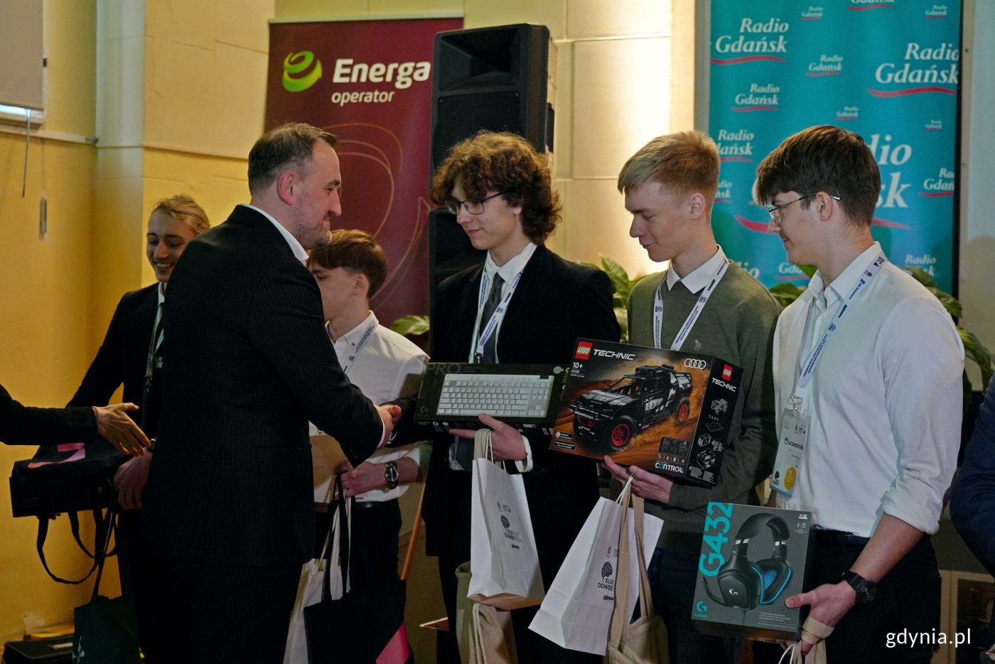 Wykazali się wiedzą i umiejętnościami technicznymi na wysokim poziomie – najlepsi z finalistów XLIX Ogólnopolskiej Olimpiady Wiedzy Elektrycznej i Elektronicznej zostali nagrodzeni. Uroczysta gala odbyła się w piątek, 27 lutego w Zespole Szkół Chłodniczych i Elektronicznych w Gdyni. Przez dwa dni mierzyli się z zaawansowanymi zadaniami i musieli wykazać się wiedzą specjalistyczną. Ponad stu finalistów Ogólnopolskiej Olimpiady Wiedzy Elektrycznej i Elektronicznej sprawdzało swoje umiejętności w gościnnej przestrzeni Zespołu Szkół Chłodniczych i Elektronicznych w Gdyni. Uczestnicy rywalizowali z sześciu kategoriach. Były to: automatyka, elektronika, elektryka, informatyka, mechatronika oraz teleinformatyka. W piątek, 27 lutego odbyła się gala finałowa konkursu, podczas której poznaliśmy laureatów w poszczególnych dziedzinach. Gratulujemy zwycięzcom tej olimpiady. Jesteśmy dumni z tego, że odbyła się ona w Gdyni, bo to olimpiada ogólnopolska, która po raz pierwszy gości w naszym województwie, po raz pierwszy w Gdyni. Podobnie dumni jesteśmy z tego, że wśród laureatów jest przedstawiciel gdyńskiej szkoły. Rozwijamy i wzmacniamy w ostatnich latach szkolnictwo zawodowe, szczególnie te, które mieści się w kategorii tak zwanych zawodów przyszłości. Tych zawodów, które będą na Pomorzu, ale i w całej Polsce bardzo potrzebne w kontekście wyzwań i dużych projektów, jakie będą realizowane w naszym kraju w najbliższych latach – mówi Tomasz Augustyniak, wiceprezydent Gdyni. Wideo i montaż: Przemysław DopkeKto okazał się najlepszy? W kategorii „Elektryka” na podium znaleźli się: I miejsce: Wojciech Jagiełło z Zespołu Szkół Łączności w Krakowie, II miejsce: Marcin Łączak z Zespołu Szkół Zawodowych Nr 1 w Dębicy, III miejsce: Szymon Śledziowski z Zespołu Szkół Elektrycznych nr 1 w Krakowie. Finaliści oraz laureaci Ogólnopolskiej Olimpiady Wiedzy Elektrycznej i Elektronicznej w kategorii „Elektryka” wraz z wiceprezydentem Gdyni Tomaszem Augustyniakiem, Karoliną Lipińską ze spółki Energa Operator oraz dyrektor ZSChiE Dorotą Kotwicką (fot. Magdalena Czernek)W kategorii „Teleinformatyka” największą wiedzą wykazali się: I miejsce: Krzysztof Kowalik z Technikum Elektronicznego im. Obrońców Lublina 1939 roku w Lublinie, II miejsce: Jakub Biel z Zespołu Szkół Technicznych i Placówek im. Stanisława Staszica w Nowym Targu, III miejsce: Wiktor Marek Truchan z Technikum Elektronicznego Nr 7 im. Wojska Polskiego w Bydgoszczy. Finaliści oraz laureaci Ogólnopolskiej Olimpiady Wiedzy Elektrycznej i Elektronicznej w kategorii „Teleinformatyka” wraz z przedstawicielem organizatora olimpiady oraz dyrektor ZSChiE Dorotą Kotwicką (fot. Magdalena Czernek)Z kolei w kategorii „Informatyka” najwyższe lokaty zdobyli: I miejsce: Aleksander Szkrobol z Zespołu Szkół Elektronicznych, Elektrycznych i Mechanicznych w Bielsku Białej, II miejsce: Paweł Bielecki z Zespołu Szkół Łączności w Krakowie, III miejsce: Paweł Stolarski z Zespołu Szkół Elektrycznych w Kielcach. Na VI miejscu w tej dziedzinie znalazł się uczeń Zespołu Szkół Chłodniczych i Elektronicznych w Gdyni – Krzysztof Pijanowski.Finaliści oraz laureaci Ogólnopolskiej Olimpiady Wiedzy Elektrycznej i Elektronicznej w kategorii „Informatyka” wraz z przedstawicielem organizatora olimpiady oraz dyrektor ZSChiE Dorotą Kotwicką (fot. Magdalena Czernek)W kategorii „Mechatronika” najlepsze wyniki osiągnęli: I miejsce: Radosław Sobiesiak z Lubelskiego Centrum Kształcenia Zawodowego i Ustawicznego w Lublinie, II miejsce: Krzysztof Baran z Lubelskiego Centrum Kształcenia Zawodowego i Ustawicznego w Lublinie, III miejsce: Mikołaj Żarczyński z Zespołu Szkół Elektryczno-Elektronicznych im. M.T.Hubera w Szczecinie. Finaliści oraz laureaci Ogólnopolskiej Olimpiady Wiedzy Elektrycznej i Elektronicznej w kategorii „Mechatronika” (fot. Magdalena Czernek)W kategorii „Automatyka” najwyższe laury zdobyli: I miejsce: Hieronim Gałaś z Zespołu Szkół Elektrycznych nr 1 w Krakowie, II miejsce: Jacek Szot z Zespołu Szkół Mechanicznych nr 1 im. Szczepana Humberta w Krakowie, III miejsce: Antoni Łowigus z Zespołu Szkół Elektrycznych w Gorzowie Wielkopolskim. Finaliści oraz laureaci Ogólnopolskiej Olimpiady Wiedzy Elektrycznej i Elektronicznej w kategorii „Automatyka” wraz z przedstawicielką Radmoru oraz dyrektor ZSChiE Dorotą Kotwicką (fot. Magdalena Czernek) Przede wszystkim jest duża satysfakcja z samego uczestnictwa i wygranej. To długa podróż, żeby dotrzeć na sam szczyt, ale to też bardzo satysfakcjonująca droga. Trzeba przejść przez długi etap edukacji, ale jednak wiedza zostaje i potem owocuje, a to jest dopiero początek jednak kariery, więc to potem się przyda jeszcze bardziej – mówi Hieronim Gałaś, zwycięzca w kategorii „Automatyka”, uczeń Zespołu Szkół Elektrycznych nr 1 w Krakowie. Natomiast w kategorii „Elektronika” na podium znaleźli się: I miejsce: Paweł Staniak z Zespołu Szkół Łączności w Krakowie, II miejsce: Dominik Kruszewski z Zespołu Szkół Elektrycznych im. prof. Janusza Groszkowskiego w Białymstoku, III miejsce: Łukasz Zawada z Zespołu Szkół Łączności w Krakowie. W tej kategorii wśród laureatów znalazła się jedyna uczestniczka. Weronika Grochalska z Zespołu Szkół Elektronicznych w Bydgoszczy zajęła V miejsce. To świetne uczucie, na pewno duma i chęć rozwijania swoich zainteresowań na pewno. Olimpiada daje wiele możliwości, daje indeksy, daje stypendia później, więc zachęca do działania na pewno. Myślę, że to jest też dobre przygotowanie na studia. W przyszłości będziemy chcieli się rozwijać na pewno, więc to otwiera też wiele dróg – podkreśla Weronika Grochalska. Finaliści oraz laureaci Ogólnopolskiej Olimpiady Wiedzy Elektrycznej i Elektronicznej w kategorii „Elektronika” (
