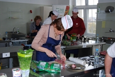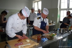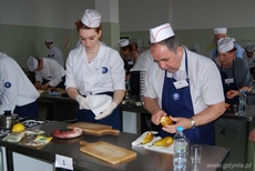9 kwietnia 2014 r. w Zespole Szkół Hotelarsko-Gastronomicznych w Gdyni odbyła się druga edycja konkursu „Znani i lubiani gotują z uczniami".Uczestnikami konkursu były znane osoby cieszące się autorytetem i zaufaniem w regionie: Pani Ewa Łowkiel - Wiceprezydent Miasta Gdyni, Pani Krystyna Przyborowska - Naczelnik Wydziału Edukacji UM Gdyni, Pan Jerzy Zając - Dyrektor Urzędu Miasta Gdyni, Pani Teresa Kamińska - Prezes Zarządu Pomorskiej Specjalnej Strefy Ekonomicznej, Pan Igor Michalski - dyrektor Teatru Muzycznego , Pan Stanisław Wierycho - dyrektor Oddziału Terenowego Agencji Rynku Rolnego, Pan Mirosław Czechowski - prorektor ds. nauki Akademii Morskiej w Gdyni, Pan Jarosław Teska - prodziekan ds. nauki Wydziału Dowodzenia i Operacji Morskich Akademii Marynarki Wojennej w Gdyni, Pan Jarosław Marczewski - reprezentujący firmę MAXIMUS, Pan Paweł Sztenderski - współwłaściciel firmy Carving Gniech, mistrz Europy w carvingu oraz uczniowie Technikum Gastronomicznego w Gdyni: Nikola Janiszewska, Magda Witkowska, Bartosz Lidzbarski, Tomasz Grota, Michał Fedurek, Daniel Kurecki, Kamil Domański, Grzegorz Marzejon, Krystian Necel, Łukasz Dólny. Drogą losowania zostało utworzonych 10 dwuosobowych zespołów składających się z gościa i ucznia. Zespół w ciągu 100 min musiał przygotować danie zasadnicze (4 porcje) składające się z polędwiczki wieprzowej, dodatku skrobiowego, warzywnego i sosu. Wszyscy uczestnicy konkursu bardzo się starali, żeby potrawy wyróżniały się smakiem i efektownym podaniem. Na stołach królowała polędwiczka pieczona faszerowana, duszona i smażona w towarzystwie kaszy gryczanej, soczewicy czarnej, ziemniaków au gradin i puree z pasternaku oraz sosy śliwkowo-czekoladowy, wiśniowy i grzybowy karmelizowany cherry.Nad częścią merytoryczną konkursu czuwało profesjonalne jury, któremu przewodniczył Krzysztof Szulborski Prezes Stowarzyszenia Kucharzy Polskich.Przewodniczący jury ogłaszając wyniki konkursu, zwrócił uwagę na innowacyjną formułę konkursu, w którym łączy się umiejętności, kreatywność i dotychczasowe doświadczenie kulinarne zaproszonych Gości i uczniów Zespołu Szkół Hotelarsko-Gastronomicznych. Miejsce pierwsze zajął zespół w składzie: Jerzy Zając i uczeń kl. II Technikum Gastronomicznego Kamil Domański ,Drugie miejsce zajął zespół w składzie: Stanisław Wierych i uczennica kl. III Technikum Gastronomicznego Nikola Janiszewska, Trzecie miejsce przypadło zespołowi w składzie: Teresa Kamińska i uczeń kl. III Technikum Gastronomicznego Daniel Kurecki.Wszyscy uczestnicy konkursu zostali nagrodzeni upominkami.fot. ZSHG Opublikowano: 10.04.2014 00:00 Autor: Michał Kowalski (2011)