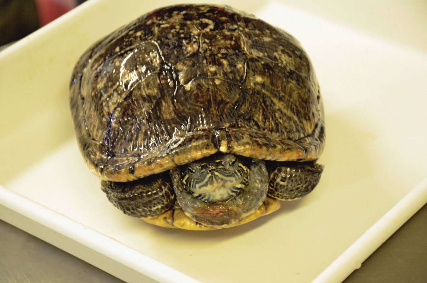 Wyrzucony na śmietnik, zawinięty w czarny foliowy worek, a wcześniej maltretowany przez swojego właściciela. Porzucony żółw czerwonolicy trafił z licznymi urazami na początku miesiąca do Akwarium Gdyńskiego. Zwierzę zostało natychmiast poddane leczeniu, ale pełen powrót do zdrowia wymagać będzie czasu. Pracownicy akwarium już teraz szukają dla niego nowego, odpowiedzialnego domu.Ponoć w każdej historii trzeba doszukiwać się pozytywów. W przypadku bestialsko potraktowanego i wyrzuconego na pewną śmierć żółwia nie jest to jednak takie proste. Zwierzę trafiło do Akwarium Gdyńskiego po tym, jak znaleźli je pracownicy sortowni śmieci Ekodolina. Jego popękana i zdeformowana skorupa świadczy o tym, że przed wyrzuceniem ktoś musiał się nad nim znęcać.– Zdarza się, że trafiają do nas osoby chcące pozbyć się swoich podopiecznych. Jednak ten przypadek to pierwszy raz, gdy żywe zwierzę trafiło do nas ze śmietniska. Chociaż sytuacja jest niestandardowa, nie mogliśmy postąpić inaczej. Mamy teraz nadzieję znaleźć dla żółwia nowy, kochający dom. Póki co czekamy na wyniki badań, które wykażą jak długo potrwa jego rekonwalescencja – mówi Grażyna Niedoszytko z Akwarium Gdyńskiego.Jak dowiadujemy się w akwarium, sytuacji, w których właściciele pozbywają się żółwi i innych, bardziej egzotycznych zwierząt jest, niestety, sporo. Niechlubny proceder pozbywania się żółwi ozdobnych (w tym czerwololicego) sprawił, że został on wpisany w Polsce na listę najbardziej inwazyjnych, obcych gatunków.Znużeni obowiązkami właściciele wypuszczają zwierzęta na wolność – do oczek wodnych, stawów czy rzek. Niewielu jednak wie, że uwalnianie żółwi do środowiska może zagrozić rodzimym gatunkom, w szczególności występującemu w Polsce naturalnie żółwiowi błotnemu. Za takie zachowanie grozi kara grzywny, a nawet areszt. Co więcej, posiadanie obcych i uznanych za inwazyjne gatunków zwierząt wymaga specjalnego certyfikatu. Więcej o skomplikowanej sytuacji żółwia czerwonolicego i innych gatunków inwazyjnych w naszym kraju można przeczytać na stronie Polskiego Towarzystwa Ochrony Przyrody Salamandra.Tymczasem uratowany z wysypiska żółw dochodzi do siebie. Pracownicy Akwarium Gdyńskiego liczą, że uda się znaleźć dla niego nowy dom. Termin, w którym trafiłby do nowego właściciela, zależny jest jednak od postępów w leczeniu. Osoba, która zdecydowałaby się na przygarnięcie zwierzęcia musi sprawę gruntownie przemyśleć – chociażby ze względu na warunki, jakie trzeba stworzyć, aby zwierzę czuło się dobrze w naszym domu.Żółwie czerwonolice mogą żyć nawet do 30 lat, są mięso- i roślinożerne, a ich skorupy mogą osiągać rozmiar do 30 cm. Potrzebują sporego terrarium (o wymiarach ok. 100x60x45 cm) z dostępem do wody oraz sztucznym oświetleniem, ponieważ zwierzęta te uwielbiają się wygrzewać. Jeżeli jesteś w stanie zapewnić takie warunki uratowanemu żółwiowi – zapraszamy do kontaktu z pracownikami Akwarium Gdyńskiego. Niech ta smutna historia znajdzie swoje szczęśliwe zakończenie. Galeria zdjęć Pobierz galerię Żółw czerwonolicy przechodzi rekonwalescencję w Akwarium Gdyńskim // fot. Ula Gryglicka Pobierz zdjęcie Żółw czerwonolicy przechodzi rekonwalescencję w Akwarium Gdyńskim // fot. Ula Gryglicka Pobierz zdjęcie Żółw czerwonolicy przechodzi rekonwalescencję w Akwarium Gdyńskim // fot. Ula Gryglicka Pobierz zdjęcie Warunki pobierania Wszelkie prawa do zdjęć lub grafik prezentowanych w ramach portalu, należą do Prowadzącego portal lub do podmiotów z nim współpracujących i podlegają ochronie prawnej. Prowadzący portal zezwala na kopiowanie i przedstawianie utworów jedynie w celach niekomercyjnych oraz pod warunkiem zachowania go w oryginalnej postaci i zachowaniem kontekstu tematu, do którego zostało wykorzystaneprzez redakcję gdynia.pl. Opublikowane materiały powinny zawsze zawierać źródło, czyli adres strony www.gdynia.pl. Na publikowanie utworów w innych celach wymagana jest zgoda właściciela strony czyli Prowadzącego portal. Opublikowano: 13.09.2017 11:20 Autor: Barbara Betlejewska (b.betlejewska@gdynia.pl) Zmodyfikowano: 15.09.2017 11:50 Zmodyfikował: Barbara Betlejewska