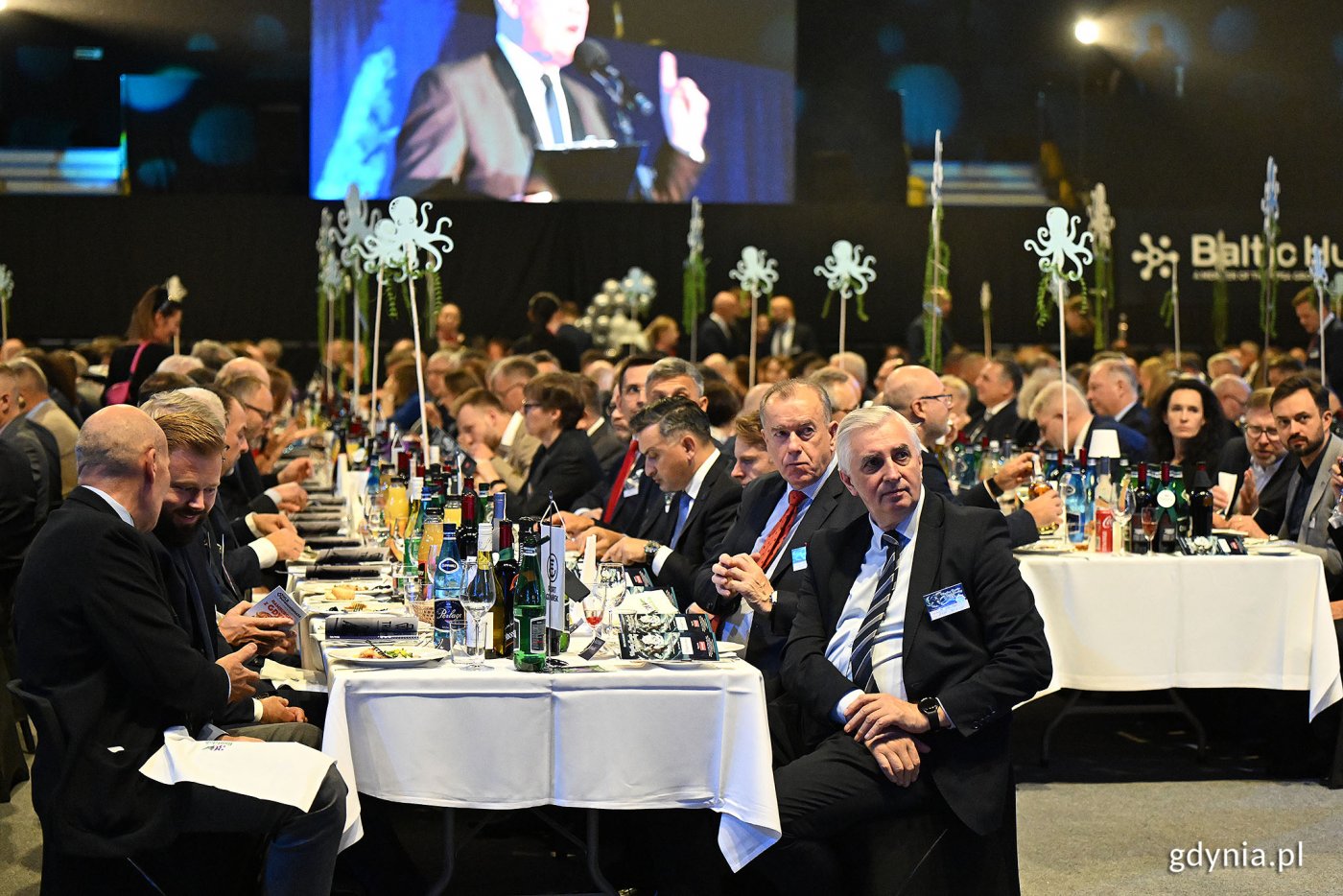 Przedstawiciele biznesu morskiego wybrzeża gdańskiego spotkali się na „Wspólnej Kaczce” już po raz 25. Wydarzenie odbyło się 10 października w hali Polsat Plus Arena Gdynia. Wzięło w nim udział ponad dwa tysiące gości zaproszonych przez 182 firmy szeroko rozumianej branży morskiej. „Wspólna Kaczka” jest uwieńczeniem Forum Gospodarki Morskiej. W piątkowy wieczór, 10 października, przedstawiciele wszystkich największych polskich firm branży morskiej: portów, przedsiębiorstw żeglugowych, firm spedycyjnych i logistycznych, stoczni, a także podmiotów z nimi współpracujących, jak również agenci, maklerzy, brokerzy, rzeczoznawcy i ubezpieczyciele morscy spotkali się przy 207 stołach. Wszystko to za sprawą „Wspólnej Kaczki” – wydarzenia, które jest uwieńczeniem Forum Gospodarki Morskiej.Gośćmi spotkania byli także przedstawiciele Ministerstwa Infrastruktury, reprezentanci władz samorządowych Gdyni i Gdańska oraz województwa pomorskiego, a także parlamentarzyści RP. Tak liczna i reprezentatywna obecność podkreśla wagę i znaczenie spotkania, na którym pod jednym dachem zasiadają przyjaciele, współpracownicy i konkurenci. Tym razem w portowej scenerii, i jak zwykle w miłej atmosferze, mogli porozmawiać o interesach.Na zdj. Jacek Karnowski, sekretarz stanu w Ministerstwie Funduszy i Polityki Regionalnej w towarzystwie prezydent Gdyni Aleksandry Kosiorek oraz wiceprezydentów Oktawii Gorzeńskiej i Tomasza Augustyniaka (fot. Michał Puszczewicz)Gościem specjalnym tegorocznego wydarzenia był największy terminal kontenerowy na Bałtyku – Baltic Hub z Gdańska, który w czerwcu br. uruchomił kolejne nabrzeże terminalowe T3. Inwestycja ta zwiększa roczną zdolność przeładunkową terminalu o 1,5 mln TEU. Łączna zdolność przeładunkowa terminalu wynosi 4,5 mln TEU rocznie, co czyni go jednym z najważniejszych węzłów logistycznych w regionie. Bursztynowe nagrody przyznane Podczas spotkania wręczono również nagrody honorowe Krajowej Izby Gospodarki Morskiej za najbardziej spektakularne osiągnięcia w gospodarce morskiej w 2024 roku.Nagroda Honorowa „Bursztynowa Kaczka” trafiła do Uniwersytetu Morskiego w Gdyni za stworzenie Centrum Offshore w Gdańsku – kluczowego ośrodka badawczego i edukacyjnego morskiej energetyki wiatrowej. Centrum realizuje istotne dla sektora MEW badania i pomiary na morzu i stanowi ważny krok do stworzenia planowanej przez uczelnię polskiej doliny offshore.Natomiast wyróżnienia honorowe „Bursztynowe Jajko” otrzymali: CMA-CGM Polska Sp. z o.o.: za wprowadzenie nowej klasy statków LNG, które zaczęły zawijać do Polski w kwietniu 2024 r. przyczyniając się do rozwoju zrównoważonej żeglugi dzięki skutecznej redukcji emisji CO2, siarki i zanieczyszczenia drobnymi cząsteczkami, Finnlines Polska Sp. z o.o.: za uruchomienie nowego połączenie ro-pax między Malmö w Szwecji i Świnoujściem, zapewniającego codzienne odpłynięcia w obu kierunkach. Nowe połączenie poszerzyło zakres usług i sieci połączeń Polski z Szwecją, jednocześnie wzmacniając bezpieczeństwo dostaw pomiędzy państwami Morza Bałtyckiego. Finomar Sp. z o.o.: za zbudowanie i zwodowanie największego statku w historii firmy – statku rybackiego dla norweskiego armatora do humanitarnego połowu ryb. Statek o wymiarach 50mx12m został wybudowany przy użyciu pontonu zatapialnego „Finomar 1”. Z kolei „Bursztynowy Ster”, nagroda przyznawana osobie zasłużonej dla gospodarki morskiej, przypadł w udziale prof. Andrzejowi Grzelakowskiemu: za niekwestionowany wkład w rozwój gospodarki morskiej, w szczególności branży portowej i branży TSL, wieloletni wkład w kształcenie wysokiej klasy kadr dla obu sektorów, dbałość o praktyczne zastosowanie wiedzy w branży morskiej, a także zaangażowanie w rozwój samorządu gospodarczego poprzez aktywny udział w pracach i działaniach Polskiej Izby Spedycji i Logistyki.Wydarzenie jak zwykle poprzedził turniej golfowy „Wspólna Kaczka Golf Cup”, który rozegrano 9 października na polu Tokary Golf Cup. Impreza zgromadziła liczne grono uczestników, a wśród nich zarówno profesjonalnych graczy, jak również amatorów, którzy są zainteresowani tym sportem.„Wspólna Kaczka” wieńczy Forum Gospodarki Morskiej, które jest znaczącym miejscem dyskusji o najważniejszych sprawach i problemach branży morskiej w naszym kraju. Rozmowy tam zapoczątkowane były kontynuowane w trakcie spotkania. Zdecydowana większość przedstawicieli starych i nowych firm miała zapewne dużo do powiedzenia o tym, jak radzą sobie na trudnym rynku TSL, żeglugowym, kontenerowym czy stoczniowym. Galeria zdjęć Pobierz galerię Tegoroczni laureaci w towarzystwie Arkadiusza Marchewki, sekretarza stanu w Ministerstwie Infrastruktury (fot. Michał Puszczewicz) Pobierz zdjęcie „Bursztynowa Kaczka” trafiła do Uniwersytetu Morskiego w Gdyni. Na zdj. m.in. Arkadiusz Marchewka, sekretarz stanu w Ministerstwie Infrastruktury i Adam Weintrit, rektor Uniwersytetu Morskiego w Gdyni (fot. Michał Puszczewicz) Pobierz zdjęcie Na zdj. prezydent Gdyni Aleksandra Kosiorek (fot. Michał Puszczewicz) Pobierz zdjęcie Na zdj. Arkadiusz Marchewka, sekretarza stanu w Ministerstwie Infrastruktury i Jacek Karnowski, sekretarz stanu w Ministerstwie Funduszy i Polityki Regionalnej (fot. Michał Puszczewicz) Pobierz zdjęcie Przy wspólnym stole m.in.: Arkadiusz Marchewka, sekretarza stanu w Ministerstwie Infrastruktury, prezydent Aleksandra Kosiorek i wiceprezydentka Oktawia Gorzeńska (fot. Michał Puszczewicz) Pobierz zdjęcie Na zdj. m.in. Tadeusz Szemiot, przewodniczący Rady Miasta Gdyni (fot. Michał Puszczewicz) Pobierz zdjęcie Na zdj. (od lewej): prezydent Gdyni Aleksandra Kosiorek, Gavin Gulia, ambasador Republiki Malty w Polsce i wicewojewoda pomorski Emil Rojek (fot. Michał Puszczewicz) Pobierz zdjęcie Na zdj. m.in. Aleksandra Dulkiewicz, prezydent Gdańska i 