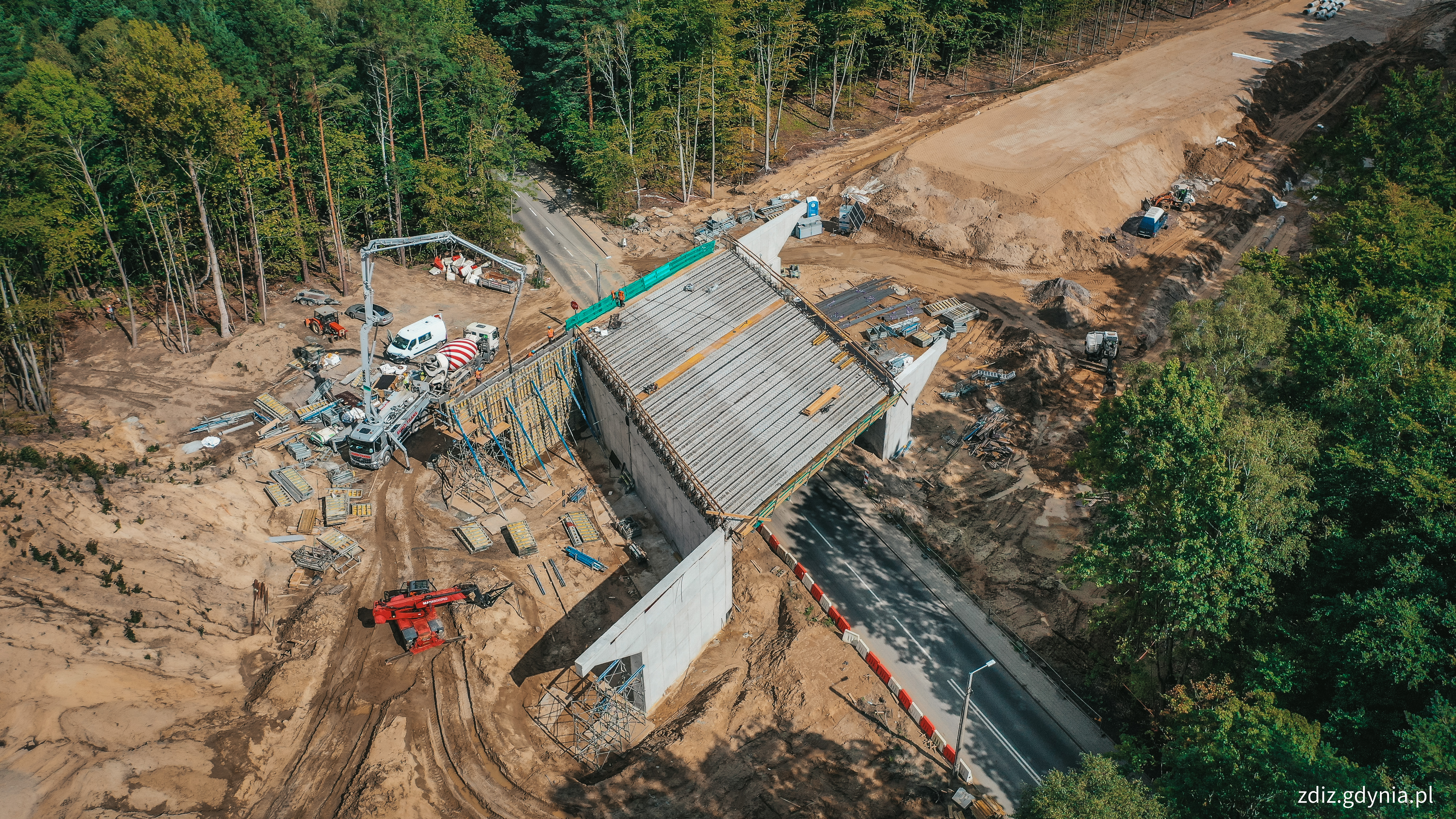Na budowie Obwodnicy Witomina zakończono montaż konstrukcji stalowej na kładce KT2 nad ul. Witomińską. Na kolejny tydzień przewidywane są m.in. dalsze prace przy obiektach mostowych PZD3 i PZD4 oraz roboty ziemne na odcinkach inwestycji. Pierwsze samochody mają pojechać obwodnicą Witomina na początku 2027 roku. - Obwodnica Witomina to kluczowy projekt, którego realizacja pozwoli nam ułatwić dojazd do i z centrum Gdyni tysiącom mieszkańców dzielnic zachodnich. Mamy świadomość utrudnień wynikających ze zmian w organizacji ruchu i wprowadzamy je po dokładnej analizie wszystkich wariantów, tak aby zminimalizować zatory na odcinkach od Chwarzna-Wiczlina do śródmieścia. Na bieżąco będziemy reagować na sytuację drogową, przede wszystkim na codzienne zatory w rejonie inwestycji – mówi Tomasz Gałązka, dyrektor zarządzający ds. inwestycji. Po oddaniu inwestycji do użytku, na ulicy Chwarznieńskiej przywrócone zostaną dwa pasy dla wszystkich użytkowników ruchu, natomiast buspasy pojawią się na samej obwodnicy Witomina. W miejscu dotychczasowego zakończenia kontrapasa będzie skrzyżowanie ul. Chwarznieńskiej z obwodnicą dzielnicy Witomino. Na budowie obwodnicy Witomina zakończono montaż konstrukcji stalowej na kładce KT2 nad ul. Witomińską, konstrukcji z blachy falistej na obiekcie PZD4 oraz montaż belek prefabrykowanych. Zabetonowano skrzydła obiektu – przyczółku P1 na obiekcie WD5. Kontynuowane roboty to: wykonywanie rowu krytego za obiektem WD5 z prawej strony projektowej, zasypki obiektów PZD3 i PZD4, prace ziemne na tych odcinkach, usuwanie kolizji teletechnicznych i Tristar na ul. Kieleckiej, montaż rur preizolowanych SPIRO na sieci ciepłowniczej. konstrukcja stalowa na kładce KT2 nad ul. Witomińską, fot. M.Mielewski, ZDIZ GdyniaW najbliższym czasie planowane jest: obiekt KT2 – montaż dodatkowych obejm na konstrukcji stalowej, kontynuacja wykonania obiektów mostowych PZD3 i PZD4 – zasypek mostowych i uciąglenie nasypów drogowych, obiekt WD5 - przyczółek P1 – zbrojenie i deskowanie ustroju nośnego, kontynuacja robót ziemnych na odcinku PZD3 – PZD4 oraz km 0+500 – 0+600 oraz na odcinku PZD4 – ul. Witomińska, kontynuacja usuwania kolizji teletechnicznych i kolizji Tristar na ul. Kieleckiej, rozpoczęcie przebudowy sieci gazowej wzdłuż ulicy Kieleckiej, przygotowanie do usunięcia kolizji energetycznych, kontynuacja montażu rur sieci ciepłowniczej, kontynuacja prac przy rowie krytym, za obiektem WD5 z prawej strony projektowej. Przypomnijmy, że Gdynia otrzymała dofinansowanie w wysokości: 8 106 665 zł na realizację tej inwestycji. To środki z rezerwy subwencji ogólnej, którą zarządza Ministerstwo Infrastruktury, przeznaczone na inwestycje, remonty, utrzymanie i zarządzanie drogami. Pochodzą z puli 220 mln zł na zwiększenie dofinansowania na projekty zgłaszane przez powiaty, miasta na prawach powiatu i województwa. Inwestycje realizuje konsorcjum Polimex Infrastruktura – Polimex Mostostal. Całkowity koszt to 78 549 311,39 zł. Opublikowano: 05.09.2025 14:00 Autor: Dorota Matejczyk (dorota.matejczyk@gdynia.pl)