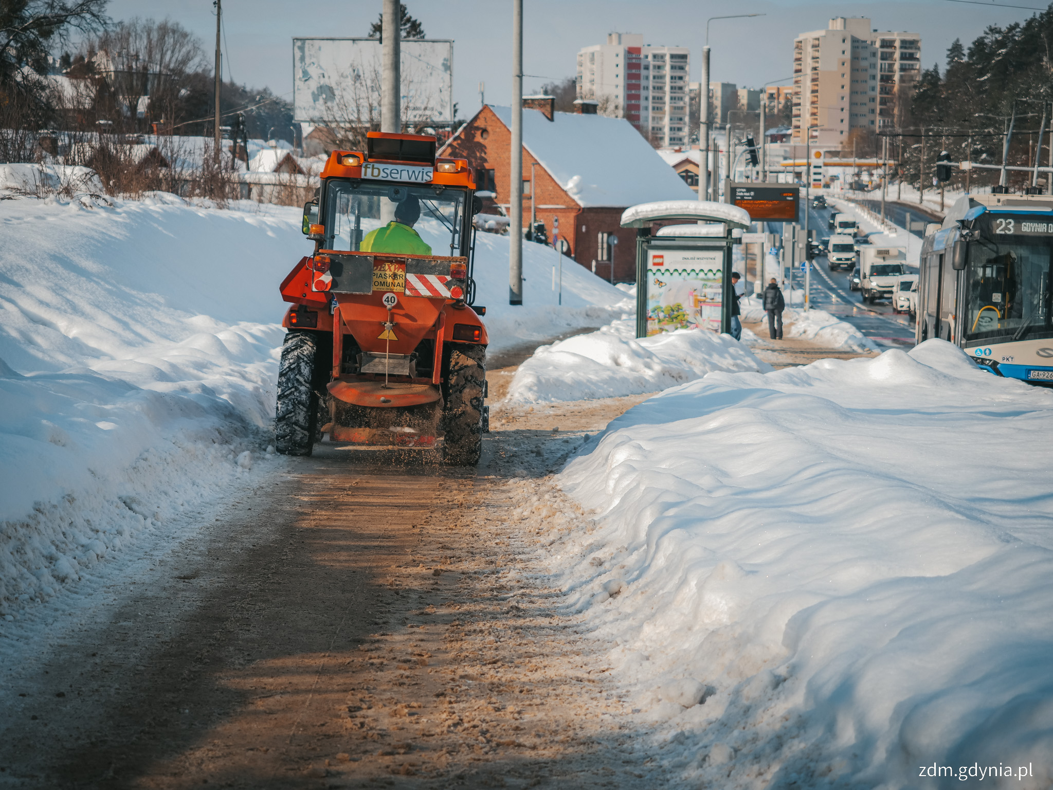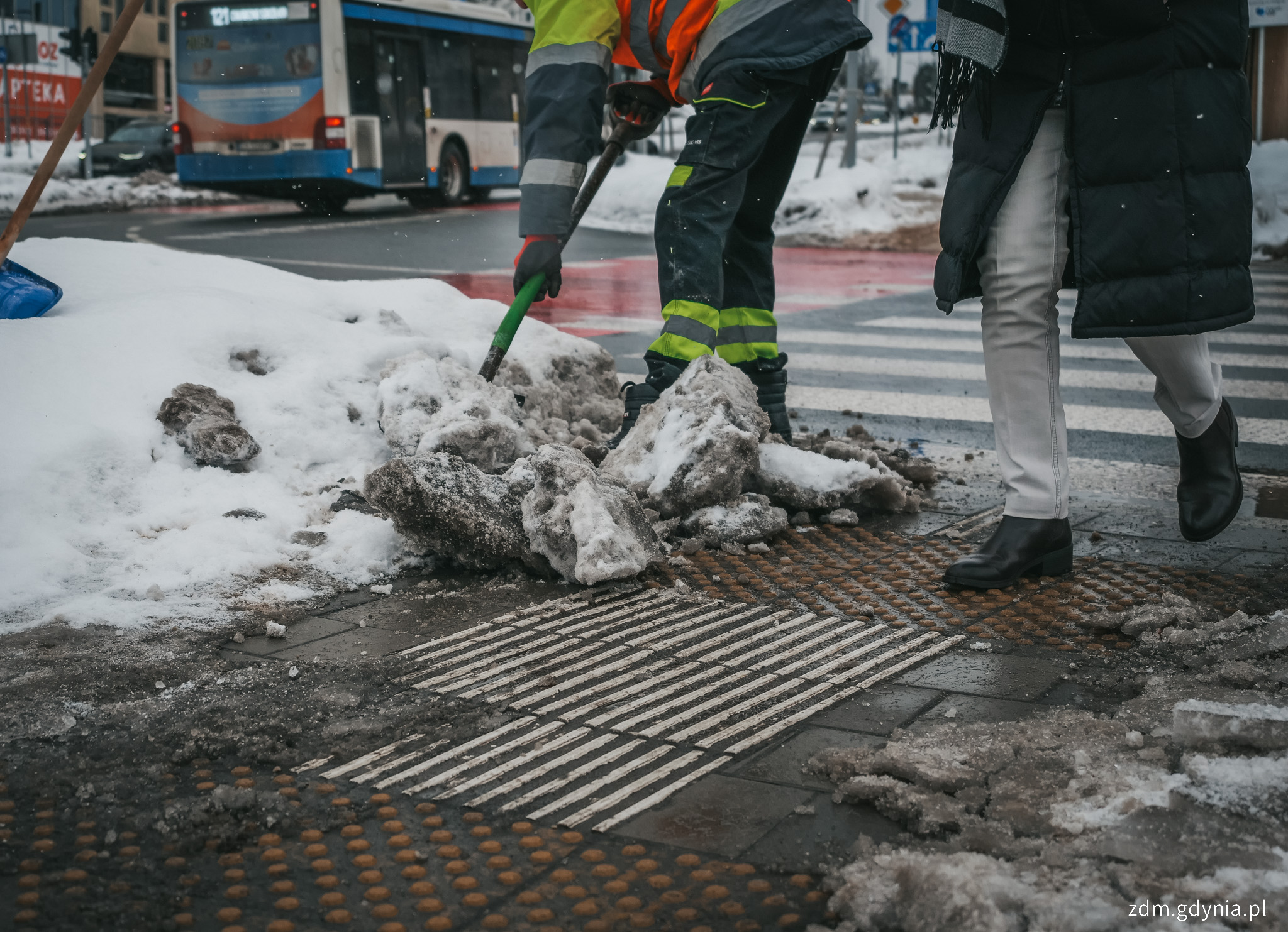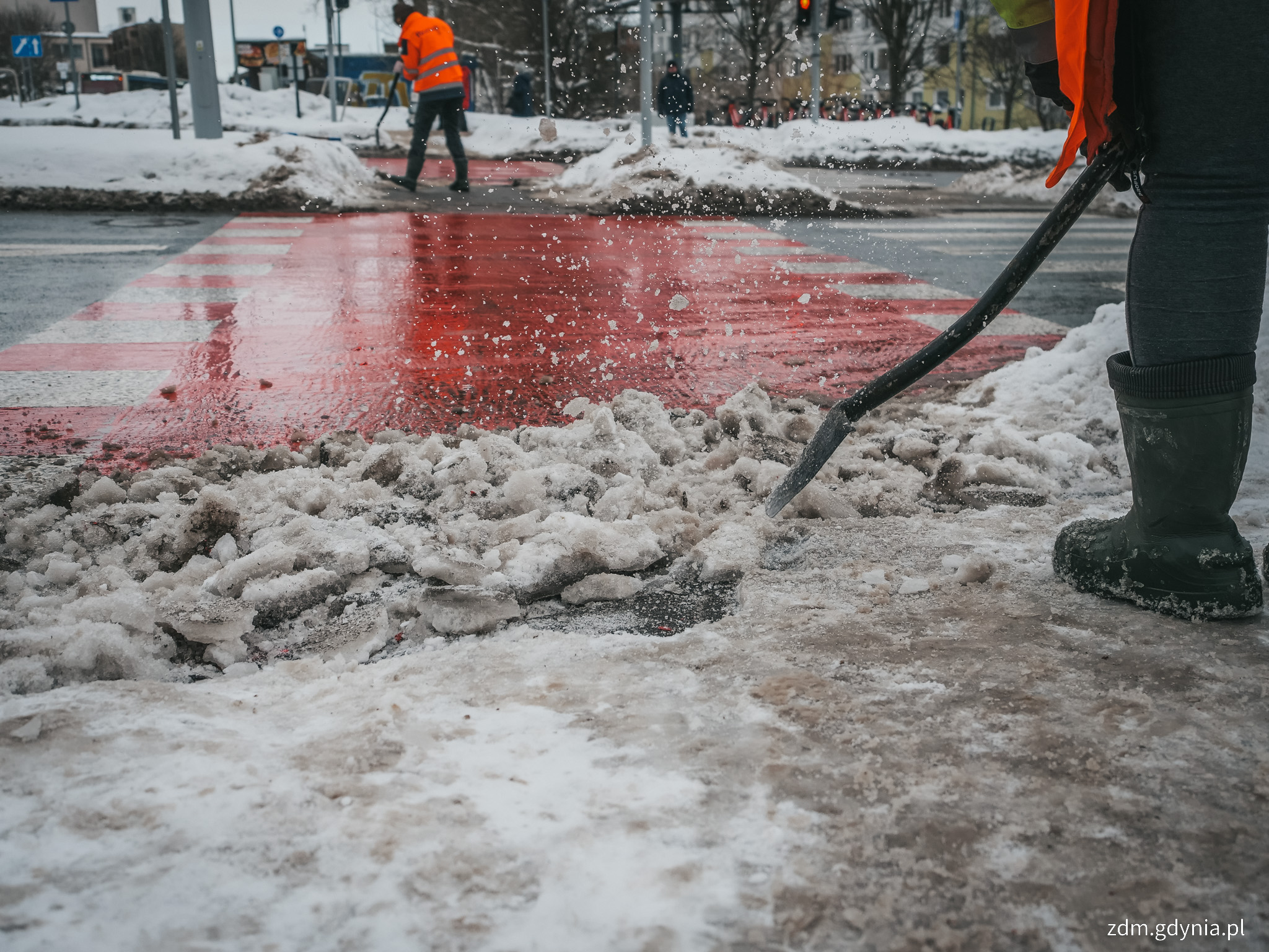 Choć zimowy krajobraz potrafi zachwycać, dla Zarządu Dróg Miejskich w Gdyni jest to jeden z najtrudniejszych sezonów w ostatnich latach. Tegoroczna zima zapisuje się w statystykach jako rekordowa zarówno pod względem zużytych materiałów, jak i poniesionych kosztów. Od początku Akcji Zima, czyli od 14 listopada 2025 roku do 16 lutego 2026 roku, koszt działań wyniósł ponad 10,7 mln zł.Odśnieżanie oraz posypywanie piaskiem chodnika przy ul. Wielkopolskiej (fot. Marcin Mielewski)Zdarzały się doby, w których koszt prowadzonych prac sięgał około pół miliona złotych. Były to okresy intensywnych i długotrwałych opadów śniegu lub marznącego deszczu, kiedy konieczne było prowadzenie nieprzerwanych interwencji – wielokrotnych wyjazdów pługosolarek, pracy sprzętu w dziewięciu sektorach miasta oraz intensywnych prac ręcznych przy usuwaniu śniegu i lodu.Dla porównania: w sezonie 2023-2024 koszt wyniósł ponad 9 mln zł, w sezonie 2024-2025 – około 7,7 mln zł. Jeszcze wyraźniej skalę tej zimy pokazuje zużycie soli i materiałów do zimowego utrzymania: sezon 2023-2024 – 5534 tony, sezon 2024-2025 – 4432 tony, sezon 2025-2026 – 6497 ton (stan na 16 lutego 2026 r.). Tegoroczna zima jest jedną z najbardziej wymagających w ostatnich latach. Do połowy lutego wydaliśmy już ponad 10,7 mln zł i zużyliśmy blisko 6,5 tysiąca ton soli. To więcej niż w całym poprzednim sezonie. Dla naszych służb to bardzo intensywny i trudny okres, ale działamy nieprzerwanie. Trzeba też pamiętać, że Akcja Zima trwa do końca marca – mówi Dawid Czechowski, wicedyrektor Zarządu Dróg Miejskich w Gdyni. Usuwanie skutego lodu sprzed przejścia dla pieszych przy ul. Wielkopolskiej (fot. Marcin Mielewski)Wzrost kosztów i zużycia materiałów wynika przede wszystkim z wyjątkowo trudnych warunków atmosferycznych – długotrwałych i intensywnych opadów śniegu, opadów marznącego deszczu oraz utrzymujących się niskich temperatur, miejscami spadających poniżej -10°C.Od początku roku odnotowano rekordową liczbę wyjazdów posypywarek. Tak intensywnego początku roku nie było od dawna. Wiele dni z opadami śniegu i utrzymującą się pokrywą śnieżną, a także kilkukrotne zagrożenie gołoledzią sprawiły, że pierwsze półtora miesiąca roku to wyjątkowo wymagający czas dla pracowników LiZUD-u oraz firm zewnętrznych. Obsługują one cztery sektory z jezdniami o mniejszym znaczeniu komunikacyjnym oraz osiem rejonów odpowiedzialnych za chodniki, drogi dla rowerów, przystanki komunikacji miejskiej i miejsca postojowe w Śródmiejskiej Strefie Płatnego Parkowania na terenie całej Gdyni. Ulice a chodniki – dwa różne światy Odśnieżanie i posypywanie chodnika oraz peronu autobusowego przy ul. Chwarznieńskiej (fot. Marcin Mielewski)Utrzymanie jezdni jest technicznie łatwiejsze niż utrzymanie terenów dla pieszych. Pługopiaskarki i solarki mogą przejechać całą długość ulicy – ich pracę może spowolnić głównie ruch drogowy lub źle zaparkowane samochody, szczególnie na węższych ulicach.Zupełnie inaczej wygląda sytuacja na chodnikach, drogach rowerowych, przystankach autobusowych czy miejscach postojowych w Śródmiejskiej Strefie Płatnego Parkowania. To ogromny obszar objęty działaniami. W wielu miejscach można wykorzystać specjalne traktorki, ale w innych prace wykonywane są wyłącznie ręcznie – przy użyciu łopat, szufli i piasku.Usuwanie skutego lodu sprzed przejścia dla pieszych przy ul. Rolniczej (fot. Marcin Mielewski)Przy marznących opadach i utrzymujących się ujemnych temperaturach konieczne jest ręczne skuwanie lodu. Rozkuwane są m.in. przejścia dla pieszych, aby zapewnić bezpieczeństwo w najbardziej newralgicznych punktach miasta. To ciężka, fizyczna praca wykonywana często w trudnych, zmiennych warunkach – od śnieżycy po marznący deszcz.Usuwanie skutego lodu sprzed przejazdu dla rowerów przy ul. Małokackiej (fot. Marcin Mielewski)Dodatkowym wyzwaniem jest zmienność pogody. Zdarza się, że miejsce, które odśnieżono, a nawet skute z lodu, po kilku godzinach ponownie pokrywa się warstwą śniegu lub lodu. To oznacza powrót do punktu wyjścia i konieczność powtórzenia tych samych czynności. Odkute z lodu dojścia do przejść dla pieszych (fot. Marcin Mielewski) Czarna jezdnia? Nie zawsze to możliwe Warto podkreślić, że podczas intensywnych opadów śniegu nie ma możliwości stałego utrzymania nawierzchni w stanie tzw. czarnej jezdni. Nawet krótko po przejeździe pługosolarki droga może ponownie zostać pokryta śniegiem.Celem Akcji Zima nie jest całkowite wyeliminowanie skutków zimy, lecz minimalizowanie zagrożeń, zapobieganie śliskości oraz zapewnienie przejezdności i bezpieczeństwa. Wspólna odpowiedzialność Bezpieczeństwo pieszych i kierowców zależy nie tylko od działań miasta, ale również od odpowiedzialności właścicieli i zarządców nieruchomości. Akcja Zima nie obejmuje wszystkich chodników i dróg.Obowiązek odśnieżania spoczywa m.in. na: właścicielach i zarządcach posesji prywatnych, wspólnot i spółdzielni, zarządcach terenów kolejowych, innych zarządcach dróg – krajowych czy wojewódzkich. W tym sezonie widać, że wielu właścicieli nieruchomości regularnie oczyszcza swoje chodniki, dbając o bezpieczeństwo przechodniów. Zdarzają się jednak sytuacje, w których problem wynika z niewiedzy, do kogo należy dany odcinek chodnika. Warto pamiętać, że w takich warunkach pogodowych kluczowa jest wspólna praca dla wspólnego dobra – chodzi o bezpieczeństwo nas wszystkich.Miasto przypomina również o prawidłowym parkowaniu pojazdów. Samochody pozostawione w sposób nieprawidłowy utrudniają prowadzenie prac związanych z zimowym utrzymaniem dróg i chodników, a czasem wręcz uniemożliwiają przejazd sprzętu. Akcja Zima trwa Choć w prognozach na kolejny tydzień lutego pojawiają się dodatnie tempe