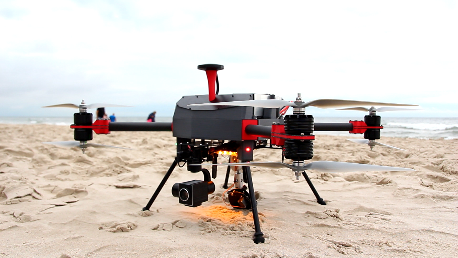 Jest gotowy do pracy po 15 sekundach od uruchomienia, ma dwudziestometrowy hol i może zrzucić bojkę ratunkową. W Pomorskim Parku Naukowo-Technologicznym w Gdyni powstał innowacyjny, prototypowy dron, który pomaga w ratowaniu tonących. Można go też użyć podczas akcji poszukiwawczych. Ma być rewolucją w pracy ratowników i reagowaniu na groźne zdarzenia na wodzie. Dron już pracuje i patroluje plażę w Jastrzębiej Górze. Kolejne egzemplarze trafią do Karwi i Ostrowia.Kiedy ktoś się topi, nie ma chwili do stracenia. Liczy się każda sekunda. Dotarcie do takiej osoby wpław lub dopłynięcie łodzią trwa. W Pomorskim Parku Naukowo-Technologicznym w Gdyni powstał dron, który pomoże ratownikom. Stworzyła go firma aiRPAS Machines. Pełni on funkcje poszukiwawczo-ratownicze. Służy do patrolowania plaży i kąpieliska, a w przypadku niebezpiecznych sytuacji na wodzie może działać od razu i pomóc tonącemu. Całą akcję koordynuje ratownik, dzięki kamerze umieszczonej na urządzeniu.– Po 15 sekundach od uruchomienia dron jest już w powietrzu. Dzięki temu można szybko podlecieć nim w konkretne miejsce i zawisnąć nad daną osobą. Kamera umieszczona na dronie rejestruje w rozdzielczości full HD i ma dziesięciokrotne zbliżenie optyczne. Umożliwia to przybliżenie obrazu i pozwala ocenić, czy osoba w wodzie tylko płynie czy tonie i potrzebuje pomocy. Dodatkowo dron może zrzucić jej bojkę ratunkową, która umieszczona jest na dwudziestometrowym holu. Jeżeli nie trafimy nią dokładnie, to można ją doholować we właściwe miejsce, a jednocześnie cały czas obserwować, czy osoba potrzebująca pomocy chwyciła tę bojkę, czy jest przytomna. I w ten sposób przyciągnąć człowieka do brzegu – tłumaczy Sebastian Nowicki z aiRPAS Machines.Podobne urządzenia są już stosowane na świecie, m.in. na plażach w Australii czy w Stanach Zjednoczonych. Jednak tam drony zrzucają tylko bojkę, która przy zderzeniu z wodą sama się pompuje. Nie mają natomiast możliwości pociągnięcia topiącej się osoby do brzegu. Właśnie to wyróżnia drona stworzonego w Gdyni od innych. Ratownictwo wodne to jednak nie jedyna sytuacja, w której ten dron może pomóc. Sprawdzi się też w akcjach poszukiwawczych. Dron pozwala na obserwacje z wysokości 70 lub 100 metrów. Dzięki temu bardzo szybko można przeczesać większy teren. Kolejna jego zaleta to możliwość prowadzenia akcji także w trudno dostępnym terenie i pomoc ratownikom w zlokalizowaniu zaginionych osób.– Istnieje możliwość zrzutu z drona bojki sygnalizacyjnej, która będzie wysyłała sygnał GPS, świetlny oraz dźwiękowy i w taki sposób wskaże służbom ratowniczym lokalizację zaginionej osoby. Koordynaty GPS będą widoczne w bazie ratunkowej. Jeżeli dodatkowo dron będzie wyposażony w kamerę termowizyjną, to poszukiwanie stanie się jeszcze łatwiejsze. Funkcja termowizji pozwoli na zlokalizowanie źródła ciepła. A dzięki kamerze z zoomem można zweryfikować, czy to rzeczywiście człowiek a nie np. zwierzę czy nagrzany kamień – opowiada Nowicki.Skąd pomysł na stworzenie takiego drona? Konstruktorzy zainspirowali się ideą, którą przedstawiło im Gdyńskie Centrum Sportu.– Na początku zeszłego roku zgłosiło się do nas Gdyńskie Centrum Sportu. Powiedzieli, że są zainteresowani dronem, który patrolowałby trójmiejskie plaże. Założenie było takie, że miałby on oblatywać na raz wzdłuż wszystkich gdyńskich kąpielisk – od Orłowa do Babich Dołów. Niestety nie było to możliwe technicznie. Zobaczyliśmy jednak w tym pomyśle potencjał i stwierdziliśmy, że warto byłoby stworzyć takiego drona, który w ramach jednej plaży, mógłby robić patrole i ratować ludzi – mówi Nowicki. Już działa I tak projekt ruszył. Wszystko potoczyło się bardzo szybko. AiRPAS Machines złożyło w Pomorskim Parku Naukowo-Technologicznym projekt o dofinansowanie tego pomysłu z Narodowego Centrum Badań i Rozwoju. Grant otrzymali pod koniec ubiegłego roku. Stworzyli pierwszy działający prototyp, a wyniki testów były imponujące.– Już przed zakończeniem projektu badawczo-rozwojowego zdołaliśmy go skonstruować na tyle skutecznie, że przeprowadziliśmy już szereg pozorowanych akcji ratowniczych. Ostatnio w Jastrzębiej Górze zrobiliśmy nawet test holowania osoby, która ważyła 120 kg, była w kapoku i holowaliśmy ją 120 metrów od brzegu. Skutecznie. Dron poradził sobie z tym, mimo tego, że była wietrzna pogoda i fala – zaznacza Nowicki.Dron już działa i już pomaga ochraniać plażowiczów. Kupił go WOPR Gniewino. Patroluje plażę w Jastrzębiej Górze. Ratownicy są z niego bardzo zadowoleni.– Z początku nie wierzyliśmy, że skonstruowanie drona, który przyciągnie człowieka do brzegu się uda, ale jest. Sprawdza się doskonale i jest bardzo dobry. Na szczęście nie musieliśmy go jeszcze używać do prawdziwej akcji ratunkowej. Teraz robimy tylko pokazowe ćwiczenia na kąpieliskach, żeby ludzie mieli świadomość, że taki sprzęt mamy. Często o ocaleniu życia człowieka decyduje 20 czy 30 sekund, dlatego taki dron bardzo się przyda. Uratowanie choćby jednego życia jest tego warte – mówi Ryszard Loewenau, prezes gniewińskiego WOPR.Po sezonie maszyna ma być jeszcze zmodernizowana.– Zakładamy, że na początku 2019 roku będzie już gotowa udoskonalona wersja z transponderem, kamerą termowizyjną, bojkami sygnalizacyjnymi. Ten dron to konstrukcja modułowa i wiele można na niego upchnąć. Celem jest produkcja nisko i średnioseryjna – mówi Sebastian Nowicki z aiRPAS Machines.Wyprodukowane zostaną też kolejne egzemplarze, które trafią do Karwi i Ostrowia. Opublikowano: 23.08.2018 15:00 Autor: Magdalena Czernek (magdalena.czernek@gdynia.pl)