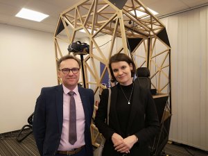 31 stycznia w Gdyni miała miejsce premiera symulatora szkoleniowego Crew Transfer Vessel (CTV), który wesprze personel morskich farm wiatrowych. Uroczystość uświetniła ceremonia chrztu jednostki. Wszystko odbyło się w wirtualnym świecie, jak na premierę wirtualnego symulatora przystało, a matką chrzestną zgodziła się być Małgorzata Bartosik, wiceszefowa Wind Europe z Brukseli, najważniejszej organizacji europejskiej zrzeszającej interesantów energetyki wiatrowej. – Myślę, że to dzisiaj ważne wydarzenie. To bardzo innowacyjne narzędzie szkolenia personelu. Jestem pewna, że przyczyni się do sukcesu Centrum Nowych Kompetencji. I to bardzo ważne, bo to gdyński podmiot. Ale też jestem przekonana, że będzie to miało szersze znaczenie dla gospodarki morskiej, bo przecież dzisiaj w każdej branży, a w szczególności tych, które są wysoko specjalistyczne, mierzymy się przede wszystkim z niedoborem rąk do pracy, a w szczególności z niedoborem rąk dobrze wyszkolonych. Jeśli zatem powstaje nam nowe narzędzie, które jest nie tylko innowacyjne, ale też małe, zgrabne, lekkie, łatwe do zastosowania, przez to ogranicza czas i koszty szkolenia, możemy liczyć na to, że zwiększy się ten pul kadry, którą można zatrudniać. A dzisiaj przy rozwoju tego wszystkiego, co dzieje się na morzu, przy rozwoju energetyki wiatrowej, różnego rodzaju innych biznesów to jedna z podstawowych potrzeb – mówi Katarzyna Gruszecka-Spychała, wiceprezydent Gdyni ds. gospodarki. Symulator pozwoli szkolić personel farm wiatrowych, a tym samym wesprze segment offshore. W warunkach stacjonarnych ludzie związani z gospodarką morską i mający doświadczenie w kierowaniu jednostkami pływającymi będą mogli przećwiczyć sytuacje podwyższonego ryzyka, które zdarzają się na otwartym morzu. Dotyczy to nie tylko skipperów dowożących personel na farmy wiatrowe, ale też serwisantów, ekip ratunkowych i innych ludzi morza, którzy poruszają się po nim w trudnych warunkach pogodowych, często w nocy lub w sytuacji ograniczonej widoczności.Jest nie tylko praktyczny, ale także piękny. Urządzenie składa się z fotela skippera z pulpitem oraz lekkiej i stylowej obudowy wykonanej z trwałej i estetycznej sklejki.Tomasz Lisiecki, prezes Centrum Nowych Kompetencji tak mówi o tym urządzeniu: – Za mną stoi jedyny na świecie symulator wirtualnej rzeczywistości do szkoleń skipperów, czyli sterników, łodzi służących do transferu ludzi na morskie farmy wiatrowe. W skrócie CTV (Crew Transfer Vessel). Przy okazji grantu na badania i rozwój, jaki otrzymaliśmy na badanie modelu zachowań skipperów podpływających do turbin wiatrowych w czasie ich budowy, obsługi i serwisowania, zbudowaliśmy cały program. W rezultacie będziemy mogli w sposób skuteczny, tani i ekologiczny przetrenować osoby, które są już w jakim stopniu związane z gospodarką morską. W warunkach wirtualnej rzeczywistości będą one mogły przećwiczyć niebezpieczne sytuacje, które mogą wystąpić w ich codziennym życiu. „μGranty B+R dla przedsiębiorstw” to regionalny program dofinansowania usług B+R, w którym pomorscy przedsiębiorcy mogą aplikować o bezzwrotne wsparcie na zakup usług badawczo-rozwojowych w projektach o wartości do 200 tys. zł.Projekt realizowany przez Excento Sp. z o.o. (spółka celowa Politechniki Gdańskiej) w partnerstwie z Regionalną Izbą Gospodarczą Pomorza , Centrum Innowacji Medycznych Sp. z o.o. (spółka celowa Gdańskiego Uniwersytetu Medycznego) oraz Univentum Labs (spółka celowa Uniwersytetu Gdańskiego).Projekt jest współfinansowany przez Unię Europejską w ramach Europejskiego Funduszu Rozwoju Regionalnego, Program Operacyjny Województwa Pomorskiego na lata 2014-2020, Oś Priorytetowa I. Komercjalizacja wiedzy, Działanie: 01.01. Ekspansja przez innowacje.Centrum Nowych Kompetencji Sp. z o.o. mieści się przy ul. Hryniewickiego 8a. Galeria zdjęć Pobierz galerię Symulator pozwoli szkolić personel farm wiatrowych. Na zdjęciu Tomasz Lisiecki oraz Katarzyna Gruszecka-Spychała//fot. Karolina Szypelt Pobierz zdjęcie Symulator pozwoli szkolić personel farm wiatrowych. Na zdjęciu Tomasz Lisiecki oraz Katarzyna Gruszecka-Spychała//fot. Karolina Szypelt Pobierz zdjęcie Symulator pozwoli szkolić personel farm wiatrowych//fot. Karolina Szypelt Pobierz zdjęcie Symulator pozwoli szkolić personel farm wiatrowych. Na zdjęciu Tomasz Lisiecki oraz Katarzyna Gruszecka-Spychała//fot. Karolina Szypelt Pobierz zdjęcie Urządzenie składa się z fotela skippera w pulpitem oraz lekkiej i stylowej obudowy wykonanej z trwałej i estetycznej sklejki//fot. Karolina Szypelt//fot. Karolina Szypelt Pobierz zdjęcie Symulator pozwoli szkolić personel farm wiatrowych. Na zdjęciu Tomasz Lisiecki oraz Katarzyna Gruszecka-Spychała//fot. Karolina Szypelt Pobierz zdjęcie Urządzenie składa się z fotela skippera w pulpitem oraz lekkiej i stylowej obudowy wykonanej z trwałej i estetycznej sklejki//fot. Karolina Szypelt Pobierz zdjęcie Urządzenie składa się z fotela skippera w pulpitem oraz lekkiej i stylowej obudowy wykonanej z trwałej i estetycznej sklejki//fot. Karolina Szypelt Pobierz zdjęcie Urządzenie składa się z fotela skippera w pulpitem oraz lekkiej i stylowej obudowy wykonanej z trwałej i estetycznej sklejki Pobierz zdjęcie Urządzenie składa się z fotela skippera w pulpitem oraz lekkiej i stylowej obudowy wykonanej z trwałej i estetycznej sklejki//fot. Karolina Szypelt Pobierz zdjęcie Urządzenie składa się z fotela skippera w pulpitem oraz lekkiej i stylowej obudowy wykonanej z trwałej i estetycznej sklejki//fot. Karolina Szypelt Pobierz zdjęcie Symulator pozwoli szkolić personel farm wiatrowych. Na zdjęciu Tomasz Lisiecki//fot. Karolina Szypelt Pobierz zdjęcie Symulator pozwoli szkolić personel farm wiatrowych. Na zdjęciu Tomasz Lisiecki oraz Katarzyna Gruszecka-Spychała//fot. Karolina Szypelt Pobie