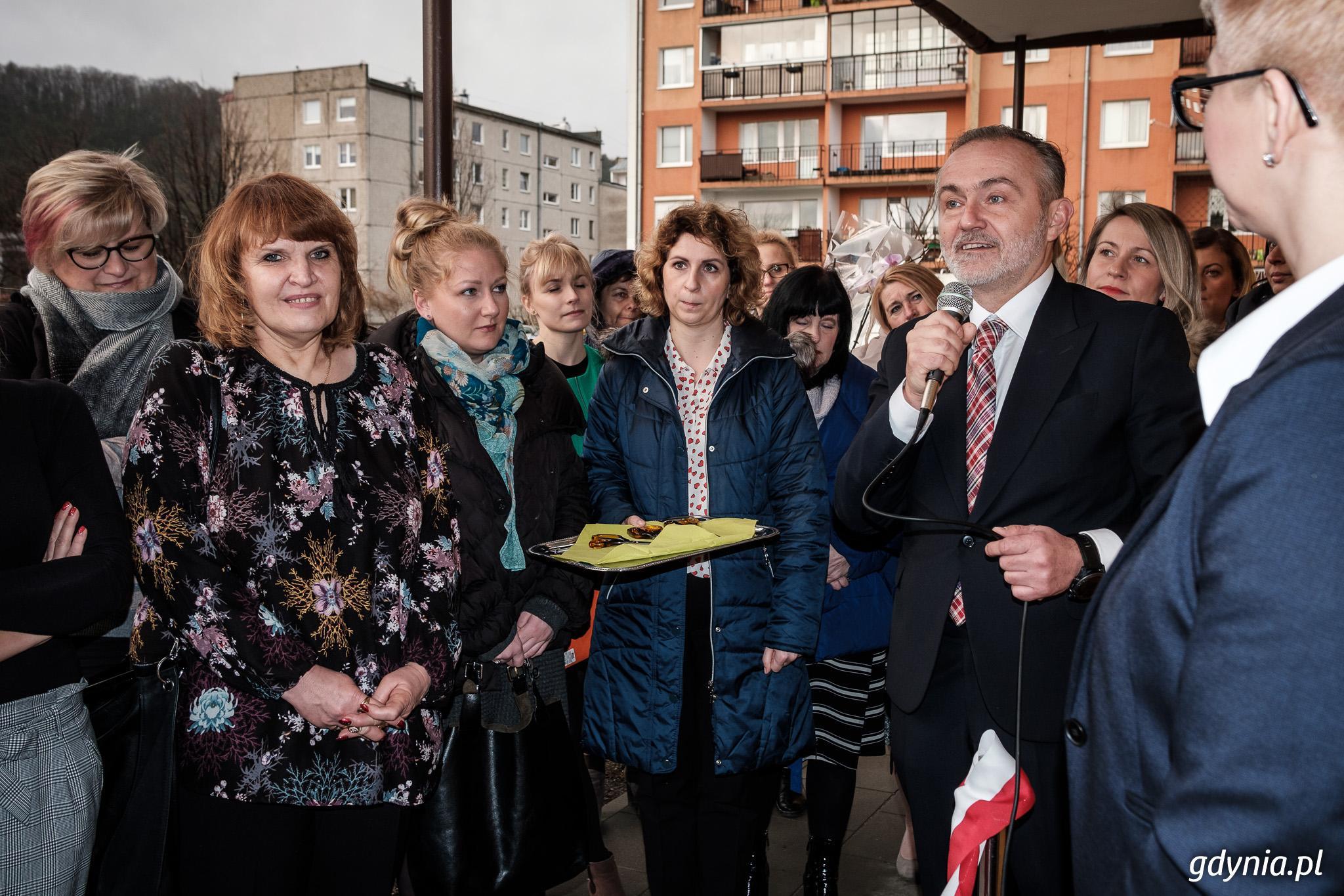 Koniczynka – taką nazwę wybrali gdynianie dla nowego żłobka w facebookowym plebiscycie. Dzisiaj oficjalnie zainaugurowano jego działalność. Dzieci po raz pierwszy skorzystają z opieki w najbliższy poniedziałek, czeka na nie 80 miejsc. "Koniczynka" to druga, po przedszkolu, inwestycja otwierana w Przystani Morskiej stworzonej w dawnym budynku Zespołu Szkół Ekologicznych. Działalność żłobka rozpoczęto dzisiaj symbolicznym przecięciem wstęgi i odsłonięciem tablicy. - Musimy dbać o to, żeby młodzi rodzice mieli możliwość zapewnienia odpowiedniej opieki dla swoich dzieci i to jest właśnie takie miejsce. Prace adaptacyjne budynku wykonane są naprawdę imponująco, przede wszystkim bardzo funkcjonalnie zaprojektowana przestrzeń, odpowiednio dobrane kolory, zabawki. Myślę, że wszystkie dzieci będą czuły się tu wspaniale - mówił podczas otwarcia Wojciech Szczurek prezydent Gdyni.Żłobek podzielony jest na trzy grupy, każda ma do dyspozycji przestronną, urządzoną w pastelowych barwach salę zabaw i sypialnię. Poszczególne grupy mają "łąkowe" nazwy. Najmłodsza, Dmuchawce, do której uczęszczać będzie 26 dzieci w wieku od roku do roku i pięciu miesięcy. Kolejna, Stokrotki liczyć będzie także 26 maluchów, ale starszych, bo w wieku od półtora roku do 2 lat. I ostatnia Bratki to 28 prawdziwych „starszaków”, które skończyły dwa lata i miesiąc, a nie mają jeszcze lat trzech. Każdą grupą opiekować się będą trzy starsze opiekunki oraz jedna młodsza.- Dzieci będą edukowane wg autorskich programów dydaktycznych, w szczególności dzieci z najstarszej grupy, które przygotowywać będziemy do przedszkola. Naszym celem jest także wprowadzenie zajęć rytmicznych w każdej grupie wiekowej - mówi Agnieszka Welfle-Pobłocka, dyrektor żłobka Koniczynka. W placówce poza salami zabaw i sypialniami, znajduje się także gabinet pielęgniarki, łazienki dostosowane do potrzeb osób niepełnosprawnych, szatnia i wózkarnia. Jest również zaplecze kuchenne i podjazd dla osób niepełnosprawnych. Dzieci mają do dyspozycji mnóstwo pomocy dydaktycznych i zabawek dostosowanych do wieku, w tym sporo ekologicznych, wykonanych z drewna. W każdej sali zabaw znajduje się też telewizor z odtwarzaczem DVD, dostępny jest internet. Koniczynka ma również własny plac zabaw wyposażony w atestowane sprzęty - m.in. specjalnie zamykaną piaskownicę. - Obiekt po Zespole Szkół Ekologicznych przystosowaliśmy do zupełnie nowej funkcji. Przystań Morska to coś w rodzaju domu sąsiedzkiego, miejsce, w którym mamy realizować różne zadania dedykowane mieszkańcom. Już spotykaliśmy się przy okazji otwarcia przedszkola, które znajduje się piętro wyżej, dziś żłobek, za chwilę będziemy mówić o przychodni, części sportowej imediatece, a w przyszłości o części dedykowanej seniorom- mówi Bartosz Bartoszewicz wiceprezydent Gdyni. Łączna kwota inwestycji wynosi 2.213.069,13 zł. Na dostosowanie części budynku na potrzeby placówki miasto przeznaczyło 1.413.069,13 zł. Wsparcie z ministerialnego programu Maluch - 800.000,00 zł. Żłobek to druga, po przedszkolu, placówka otwierana w Przystani Morskiej. Na wiosnę planowana jest inauguracja części sportowej. Oprócz tego w Przystani znajdzie się przychodnia (planowane otwarcie w maju 2018 roku), mediateka oraz centrum opiekuńcze (sierpień 2018). Projekt Przystań zakłada budowę ośrodków wspierających rozwój społeczności dzielnic na różnych płaszczyznach, będących sąsiedzkimi centrami życia. Przystań Morska jest pierwszym z nich. W 2018 powstać mają także Przystań Chylonia i Przystań Oksywie, a w 2019 roku Przystań Witomino. Galeria zdjęć Pobierz galerię Żłobek "Koniczynka" już otwarty, fot. Dawid Linkowski Pobierz zdjęcie Żłobek "Koniczynka" już otwarty, fot. Dawid Linkowski Pobierz zdjęcie Żłobek "Koniczynka" już otwarty, fot. Dawid Linkowski Pobierz zdjęcie Żłobek "Koniczynka" już otwarty, fot. Dawid Linkowski Pobierz zdjęcie Żłobek "Koniczynka" już otwarty, fot. Dawid Linkowski Pobierz zdjęcie Żłobek "Koniczynka" już otwarty, fot. Dawid Linkowski Pobierz zdjęcie Żłobek "Koniczynka" już otwarty, fot. Dawid Linkowski Pobierz zdjęcie Żłobek "Koniczynka" już otwarty, fot. Dawid Linkowski Pobierz zdjęcie Żłobek "Koniczynka" już otwarty, fot. Dawid Linkowski Pobierz zdjęcie Żłobek "Koniczynka" już otwarty, fot. Dawid Linkowski Pobierz zdjęcie Żłobek "Koniczynka" już otwarty, fot. Dawid Linkowski Pobierz zdjęcie Żłobek "Koniczynka" już otwarty, fot. Dawid Linkowski Pobierz zdjęcie Żłobek "Koniczynka" już otwarty, fot. Dawid Linkowski Pobierz zdjęcie Żłobek "Koniczynka" już otwarty, fot. Dawid Linkowski Pobierz zdjęcie Żłobek "Koniczynka" już otwarty, fot. Dawid Linkowski Pobierz zdjęcie Żłobek "Koniczynka" już otwarty, fot. Dawid Linkowski Pobierz zdjęcie Żłobek "Koniczynka" już otwarty, fot. Dawid Linkowski Pobierz zdjęcie Żłobek "Koniczynka" już otwarty, fot. Dawid Linkowski Pobierz zdjęcie Żłobek "Koniczynka" już otwarty, fot. Dawid Linkowski Pobierz zdjęcie Żłobek "Koniczynka" już otwarty, fot. Dawid Linkowski Pobierz zdjęcie Żłobek "Koniczynka" już otwarty, fot. Dawid Linkowski Pobierz zdjęcie Żłobek "Koniczynka" już otwarty, fot. Dawid Linkowski Pobierz zdjęcie Żłobek "Koniczynka" już otwarty, fot. Dawid Linkowski Pobierz zdjęcie Żłobek "Koniczynka" już otwarty, fot. Dawid Linkowski Pobierz zdjęcie Żłobek "Koniczynka" już otwarty, fot. Dawid Linkowski Pobierz zdjęcie Żłobek "Koniczynka" już otwarty, fot. Dawid Linkowski Pobierz zdjęcie Żłobek "Koniczynka" już otwarty, fot. Dawid Linkowski Pobierz zdjęcie Żłobek "Koniczynka" już otwarty, fot. Dawid Linkowski Pobierz zdjęcie Żłobek "Koniczynka" już otwarty, fot. Dawid Linkowski Pobierz zdjęcie Żłobek "Koniczynka" już otwarty, fot. Dawid Linkowski Pobierz zdjęcie Żłobek