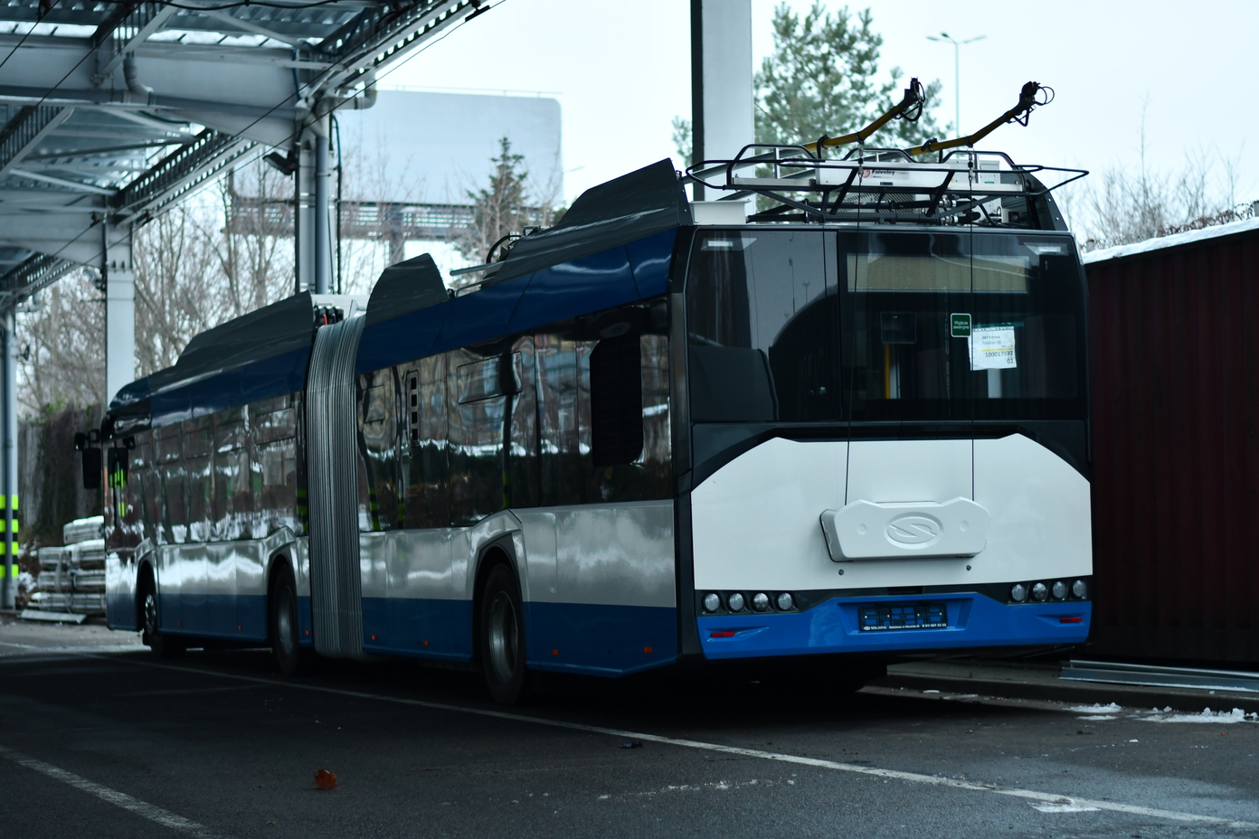 Gdyńska komunikacja miejska sukcesywnie stawia na elektromobilność. Tabor PKT właśnie powiększa się o dwa nowoczesne pojazdy, które już w styczniu wyjadą na trasy. Tabor PKT wzbogacił się o pierwszy z dwóch trolejbusów. Razem z obecną dostawą PKT będzie posiadało 18 Solarisów Trollino 18. Drugi pojazd zostanie dostarczony do Gdyni do 20 grudnia. Tabor PKT wzbogacił się o pierwszy z dwóch trolejbusów. Fot PKT w Gdyni - Często powtarzam, że w Gdyni zaczęliśmy z elektromobilnością jeszcze zanim to hasło powstało, bo przecież pierwsze trolejbusy wyruszyły na ulice kilkadziesiąt lat temu - mówi Katarzyna Gruszecka-Spychała, wiceprezydent Gdyni ds. gospodarki. - To powód, dla którego dziś tak dobrze nam idzie, jeśli chodzi o zeroemisyjną komunikację miejską. Nie stresują nas żadne ustawowe limity, które należy wyrabiać w zakresie tego typu pojazdów, bo dla nas są po prostu oczywiste do spełnienia, w głównej mierze dzięki flocie trolejbusowej. Bardzo się cieszę, że mieszkańcy naszego miasta już wkrótce będą mogli jeździć dwoma nowoczesnymi pojazdami, które nie tylko są przyjazne dla środowiska, ale też oferują ogromny komfort jazdy dla pasażerów - podkreśla Katarzyna Gruszecka-Spychała. Nowe trolejbusy przegubowe są wyposażone w baterie litowo-tytanowe LTO dzięki którym mogą przejechać ponad 20 kilometrów poza siecią trakcyjną. Trolejbusy standardowo wyposażone są w klimatyzację, ogrzewanie, monitoring, elektroniczne wyświetlacze. Są również przystosowane dla osób z niesprawnością. Ich specyfikacja jest identyczna z obecnie jeżdżącymi trolejbusami. - Trolejbusy wyjadą na trasy w styczniu 2024 roku - zapowiada Tomasz Labuda, zastępca Prezesa Zarządu PKT w Gdyni. Projekt uzyskał dofinansowanie w ramach Działania 11.Transport miejski (Oś priorytetowa XI REACT-EU ) Programu Operacyjnego Infrastruktura i Środowisko 2014 – 2020. Wartość kontraktu to 7,2 mln zł netto, z tego dofinansowanie wyniosło 4,8 mln zł netto. Zakup realizowany został w ramach projektu „Rozwój zeroemisyjnego transportu publicznego w Gdyni poprzez zakup elektrycznych pojazdów”. Opublikowano: 14.12.2023 08:30 Autor: Zygmunt Gołąb (z.golab@gdynia.pl) Zmodyfikowano: 14.12.2023 15:29 Zmodyfikował: Redakcja portalu Gdynia.pl