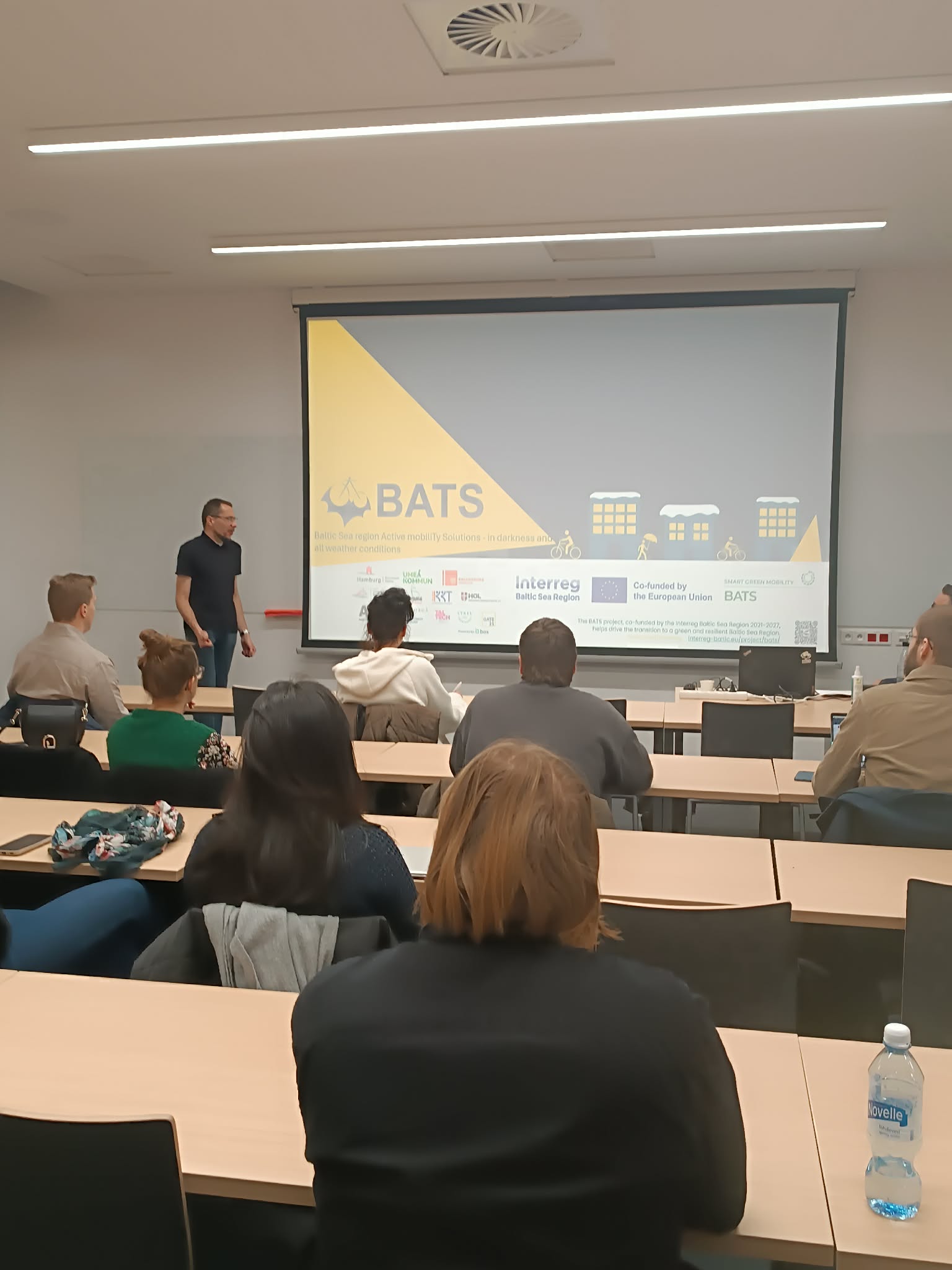 W dniach 16-17 lutego 2026 roku Politechnika Gdańska i Gdynia stały się miejscem intensywnej współpracy trzech europejskich projektów: Cycle4Climate (Interreg CE), SPINE (Horizon) oraz BATS (Interreg BSR. Spotkanie połączyło ekspertów, przedstawicieli miast, naukowców i praktyków transportu, którzy wspólnie pracują nad jednym z największych wyzwań współczesnych miast – transformacją mobilności w kierunku niskoemisyjnym, bezpiecznym i przyjaznym mieszkańcom – mówi Tomasz Gałązka, dyrektor zarządzający ds. inwestycji. – Choć każdy z projektów realizowany jest w innym programie i skali, ich wspólny mianownik jest wyraźny: aktywny transport, transport publiczny oraz decyzje oparte na danych jako fundament miast neutralnych klimatycznie. Wspólny cel: zmiana zachowań, infrastruktury i systemów Transport odpowiada za znaczną część emisji CO₂ w miastach, a jednocześnie ma ogromny wpływ na zdrowie, bezpieczeństwo i jakość życia mieszkańców. Projekty Cycle4Climate, SPINE i BATS mierzą się z tym samym wyzwaniem – ograniczeniem negatywnych skutków transportu miejskiego i samochodowego – jednak podchodzą do niego z różnych, ale komplementarnych perspektyw.Cycle4Climate realizuje trzy rundy interwencji – zarówno infrastrukturalnych, jak i społecznych – których celem jest zachęcenie mieszkańców do częstszego wyboru roweru jako środka transportu w czterech obszarach pilotażowych. Skuteczność testowanych rozwiązań jest monitorowana m.in. poprzez badania zachowań transportowych oraz pomiary emisji CO₂ przed i po wdrożeniu działań. Zebrane doświadczenia są następnie syntetyzowane w formie zestawu narzędzi i wytycznych, które mają wspierać rozwój skutecznych interwencji promujących ruch rowerowy w miastach. Projekt koncentruje się na zwiększeniu widoczności i wykorzystaniu istniejącej oraz nowej infrastruktury i usług rowerowych, wykorzystując narzędzia marketingu społecznego i inne strategie komunikacyjne.BATS (Baltic Sea region Active mobiliTy Solutions) skupia się na tym, aby aktywna mobilność działała przez cały rok, również w warunkach zimowych, przy ograniczonej widoczności i trudnej pogodzie. Projekt testuje rozwiązania infrastrukturalne, kampanie edukacyjne oraz inteligentne systemy zarządzania ruchem, pokazując, że odpowiednio zaprojektowane miasta mogą skutecznie wspierać pieszych i rowerzystów także jesienią i zimą.SPINE - spina te podejścia systemowo, wzmacniając transport publiczny poprzez jego integrację z aktywną mobilnością. Projekt wykorzystuje modele symulacyjne, aby testować różne scenariusze mobilności i wspierać miasta w podejmowaniu decyzji opartych na danych. Szczególnie skupia się na poprawie funkcjonowania węzłów integracyjnych i stworzenia planu rozwoju buspasów dla Miasta. Od teorii do praktyki – dzień pierwszy na Politechnice Gdańskiej Pierwszy dzień spotkania odbył się na Politechnice Gdańskiej i poświęcony był wymianie wiedzy oraz doświadczeń między projektami. Sesja „C4C meets BATS” pozwoliła zestawić podejścia do monitoringu ruchu pieszego i rowerowego, definiowania wskaźników efektywności (KPI) oraz oceny wpływu działań na bezpieczeństwo, płynność ruchu i emisje. Szczególną uwagę poświęcono priorytetyzacji pieszych i rowerzystów na skrzyżowaniach z sygnalizacją świetlną, w tym rozwiązaniom reagującym na warunki pogodowe. Przykłady z projektu BATS pokazały, jak wykorzystanie kamer termowizyjnych i algorytmów sterowania ruchem może poprawić bezpieczeństwo i komfort użytkowników w trudnych warunkach atmosferycznych.Dyskusje potwierdziły, że monitoring i dane są kluczowym łącznikiem pomiędzy projektami. Pozwalają nie tylko ocenić skuteczność interwencji, ale także przenosić sprawdzone rozwiązania między miastami i projektami.Uczestnicy spotkania (mat. Gdynia Mobilna )Gdynia jako laboratorium mobilności – dzień drugi spotkaniaDrugi dzień miał charakter zdecydowanie praktyczny i odbył się w Gdyni, mieście aktywnie zaangażowanym zarówno w projekt SPINE, jak i BATS. Uczestnicy odwiedzili Centrum Zarządzania Ruchem, gdzie zaprezentowano rozwiązania z zakresu sterowania ruchem oraz priorytetyzacji transportu publicznego i aktywnego. Następnie w INFOBOX-ie przy ul. Świętojańskiej omówiono funkcjonowanie węzła multimodalnego w centrum Gdyni, a także zastosowanie symulacji makro- i mikroruchu, w tym modeli rowerowych, do oceny skuteczności działań mobilnościowych. W kontekście Cycle4Climate zaprezentowano podejście do planowania działań zwiększających ruch rowerowy, podkreślając rolę kampanii społecznych, widoczności infrastruktury oraz spójności działań „miękkich” i infrastrukturalnych. Z kolei projekt BATS pokazał efekty kampanii edukacyjnych realizowanych m.in. w gdyńskich przedszkolach i szkołach oraz zastosowanie technologii wspierających pieszych i rowerzystów w sezonie jesienno-zimowym.Uczestnicy spotkania (mat. Gdynia Mobilna) Jedna lekcja, trzy projektyNajważniejszy wniosek ze spotkania był wspólny dla wszystkich uczestników: skuteczna transformacja mobilności wymaga jednoczesnego działania na trzech poziomach: zachowań użytkowników – poprzez edukację, kampanie i interwencje społeczne (Cycle4Climate, BATS), infrastruktury i organizacji ruchu – dostosowanej do realnych warunków pogodowych i potrzeb różnych grup użytkowników (BATS, SPINE), systemów i danych – umożliwiających ocenę i weryfikację planowanych przekształceń przestrzeni dla osiągnięcia najlepszych możliwych rozwiązań dla wszystkich użytkowników – szczególne na węźle integracyjnym Gdynia Główna (SPINE). Spotkanie na Politechnice Gdańskiej i w Gdyni pokazało, że współpraca ponad projektami i programami finansowania przynosi realną wartość, przyspieszając uczenie się miast i zwiększając skuteczność wdrażanych rozw