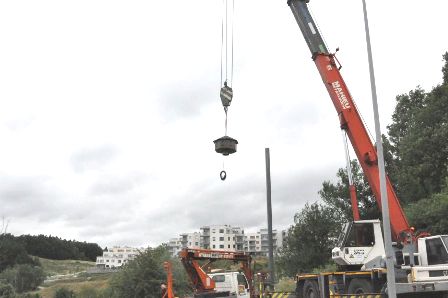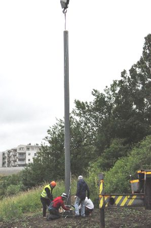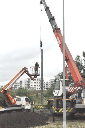 Fot. 8. Montaż słupa na fundamencie.
