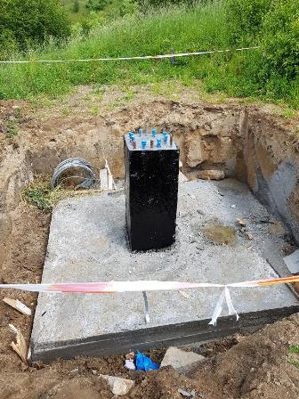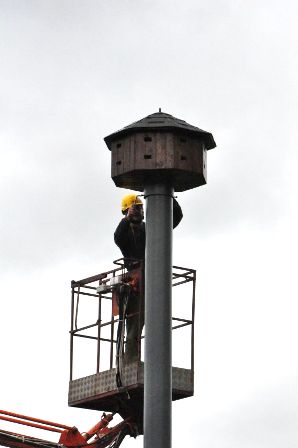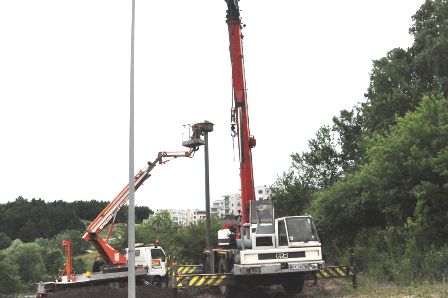 Wykonano stopę fundamentową, na której został zainstalowany słup wraz z budkami dla jerzyków. Jednocześnie wykonano instalację uziemiającą.