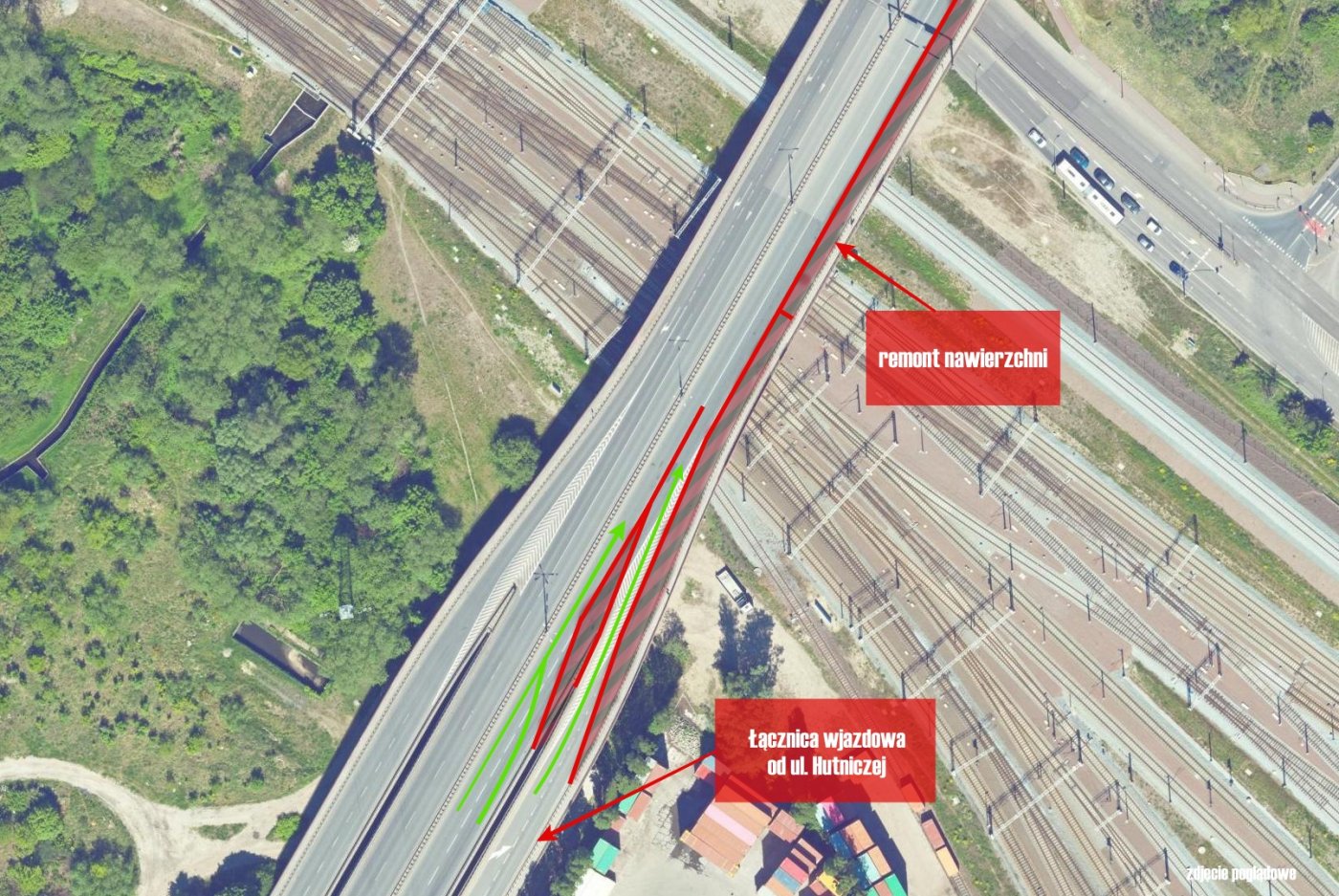 Od piątku, 28 listopada, od godz. 20:00 wprowadzona zostanie zmiana w organizacji ruchu na Estakadzie Kwiatkowskiego. Rozpoczynają się prace polegające na frezowaniu oraz układaniu nowej warstwy bitumicznej na odcinku od ul. Hutniczej do ul. Kontenerowej – na prawym skrajnym pasie w kierunku Obłuża, w rejonie włączenia łącznicy od ul. Hutniczej. Aby umożliwić wjazd na Estakadę łącznicą wjazdową od ul. Hutniczej w kierunku Obłuża, na jezdni głównej wystąpi zwężenie prawego pasa ruchu. Na całym odcinku obowiązuje ograniczenie prędkości do 50 km/h. Utrudnienia potrwają do soboty, 29 listopada, do godzin wieczornych. Prowadzone będą również miejscowe naprawy nawierzchni: 1 grudnia (poniedziałek) – na odcinku od ul. Hutniczej do ul. Unruga, 2 grudnia (wtorek) – na odcinku od ul. Unruga do ul. Hutniczej. Będą występować zwężenia do jednego pasa ruchu.Prosimy kierowców o szczególną ostrożność oraz stosowanie się do wprowadzonej tymczasowej organizacji ruchu.Aktualne komunikaty Zarządu Dróg i Zieleni w Gdyni dostępne są na stronie zdiz.gdynia.pl. Galeria zdjęć Pobierz galerię Estakada Kwiatkowskiego - zmiany w organizacji ruchu w związku z remontem nawierzchni (komunikat ZDiZ Gdynia) Pobierz zdjęcie Estakada Kwiatkowskiego - zmiany w organizacji ruchu w związku z remontem nawierzchni (komunikat ZDiZ Gdynia) Pobierz zdjęcie Warunki pobierania Wszelkie prawa do zdjęć lub grafik prezentowanych w ramach portalu, należą do Prowadzącego portal lub do podmiotów z nim współpracujących i podlegają ochronie prawnej. Prowadzący portal zezwala na kopiowanie i przedstawianie utworów jedynie w celach niekomercyjnych oraz pod warunkiem zachowania go w oryginalnej postaci i zachowaniem kontekstu tematu, do którego zostało wykorzystaneprzez redakcję gdynia.pl. Opublikowane materiały powinny zawsze zawierać źródło, czyli adres strony www.gdynia.pl. Na publikowanie utworów w innych celach wymagana jest zgoda właściciela strony czyli Prowadzącego portal. Kontakt Zarząd Dróg i Zieleni w Gdyni https://www.zdiz.gdynia.pl/ sekretariat@zdiz.gdynia.pl 587612000 Opublikowano: 27.11.2025 13:36 Autor: Paweł Jałoszewski (pawel.jaloszewski@gdynia.pl) Zmodyfikowano: 27.11.2025 15:40 Zmodyfikował: Paweł Jałoszewski
