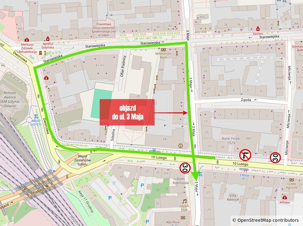 Od 20 października do 2 listopada prowadzone będą naprawy gwarancyjne nawierzchni jezdni na ul. 10 Lutego w Gdyni. Prace obejmą odcinek po północnej stronie ulicy, wzdłuż budynku dawnego Banku Polskiego, gdzie jezdnia jest wykonana z kostki kamiennej.W związku z zajęciem jednego pasa ruchu, kierowcy muszą liczyć się z utrudnieniami w przejeździe.Aby usprawnić ruch, zostanie wprowadzony tymczasowy zakaz skrętu w lewo z ul. 10 Lutego w ul. 3 Maja. Objazd poprowadzony będzie trasą: ul. 10 Lutego, ul. Dworcowa, ul. Starowiejska, ul. 3 Maja. Na odcinku między ulicami 3 Maja a Mściwoja obowiązywać będzie ograniczenie prędkości do 30 km/h.Prosimy kierowców o ostrożność i zwracanie uwagi na tymczasowe oznakowanie.Aktualne komunikaty Zarządu Dróg i Zieleni w Gdyni dostępne są na stronie zdiz.gdynia.pl. Galeria zdjęć Pobierz galerię ul. 10 Lutego – naprawa nawierzchni (źródło: ZDiZ Gdynia) Pobierz zdjęcie Warunki pobierania Wszelkie prawa do zdjęć lub grafik prezentowanych w ramach portalu, należą do Prowadzącego portal lub do podmiotów z nim współpracujących i podlegają ochronie prawnej. Prowadzący portal zezwala na kopiowanie i przedstawianie utworów jedynie w celach niekomercyjnych oraz pod warunkiem zachowania go w oryginalnej postaci i zachowaniem kontekstu tematu, do którego zostało wykorzystaneprzez redakcję gdynia.pl. Opublikowane materiały powinny zawsze zawierać źródło, czyli adres strony www.gdynia.pl. Na publikowanie utworów w innych celach wymagana jest zgoda właściciela strony czyli Prowadzącego portal. Kontakt Zarząd Dróg i Zieleni w Gdyni sekretariat@zdiz.gdynia.pl 587612000 Opublikowano: 17.10.2025 15:05 Autor: Paweł Jałoszewski (pawel.jaloszewski@gdynia.pl) Zmodyfikowano: 17.10.2025 15:16 Zmodyfikował: Aleksandra Dylejko