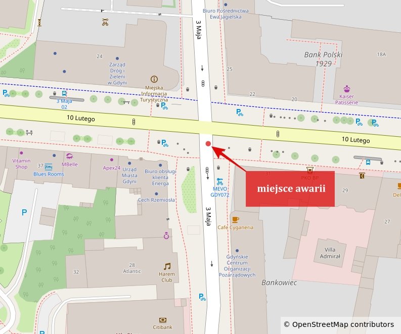 W związku z zapadnięciem się nawierzchni jezdni na ul. 3 Maja, za skrzyżowaniem z ul. 10 Lutego, prowadzone są działania mające na celu ustalenie przyczyny powstałego uszkodzenia. Miejsce awarii zostało zabezpieczone oraz oznakowane.Prosimy kierowców i pieszych o zachowanie ostrożności oraz stosowanie się do wprowadzonego oznakowania i zmian w organizacji ruchu.Aktualne komunikaty Zarządu Dróg Miejskich dostępne są na stronie: zdm-gdynia.pl. Galeria zdjęć Pobierz galerię Utrudnienia na ul. 3 Maja – zapadnięcie nawierzchni (źródło: ZDM Gdynia) Pobierz zdjęcie Utrudnienia na ul. 3 Maja – zapadnięcie nawierzchni (źródło: ZDM Gdynia) Pobierz zdjęcie Utrudnienia na ul. 3 Maja – zapadnięcie nawierzchni (źródło: ZDM Gdynia) Pobierz zdjęcie Warunki pobierania Wszelkie prawa do zdjęć lub grafik prezentowanych w ramach portalu, należą do Prowadzącego portal lub do podmiotów z nim współpracujących i podlegają ochronie prawnej. Prowadzący portal zezwala na kopiowanie i przedstawianie utworów jedynie w celach niekomercyjnych oraz pod warunkiem zachowania go w oryginalnej postaci i zachowaniem kontekstu tematu, do którego zostało wykorzystaneprzez redakcję gdynia.pl. Opublikowane materiały powinny zawsze zawierać źródło, czyli adres strony www.gdynia.pl. Na publikowanie utworów w innych celach wymagana jest zgoda właściciela strony czyli Prowadzącego portal. Kontakt Zarząd Dróg Miejskich w Gdyni sekretariat@zdiz.gdynia.pl 587612000 Opublikowano: 02.03.2026 14:00 Autor: Paweł Jałoszewski (pawel.jaloszewski@gdynia.pl) Zmodyfikowano: 02.03.2026 14:04 Zmodyfikował: Małgorzata Omachel - Kwidzińska