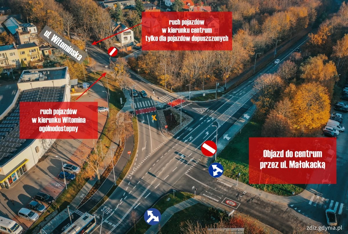 Uwaga kierowcy! Od soboty, 22 listopada, nastąpi zmiana organizacji ruchu w obrębie budowy Obwodnicy Witomina. Na ulicy Kieleckiej wprowadzony zostaje ruch jednokierunkowy w kierunku Witomina. Pasażerowie transportu zbiorowego jadący do centrum pojadą ulicami Witomińską i Małokacką, a pozostali kierowcy ul. Małokacką. Zmiany obejmą także rowerzystów, motocyklistów i kierowców samochodów elektrycznych. Utrudnienia potrwają do końca kwietnia 2026 r. Reorganizacja ruchu wynika z konieczności zamknięcia odcinka ul. Kieleckiej, na którym będą prowadzone prace ziemne związane z tworzeniem nasypu, a następnie budowa nowego skrzyżowania Obwodnicy Witomina z ul. Kielecką. W związku z tym wprowadza się następujące zmiany: ul. Kielecka - ruch jednokierunkowy w kierunku do Witomina z wyłączeniem pojazdów budowy; objazd z Witomina do centrum i Cmentarza Witomińskiego wyznacza się ulicami: Małokacką, Łużycką, Sportową, Górskiego, Drogą Gdyńską; zalecany objazd dla rowerzystów do Witomina – ul. Bydgoską i ul. Witomińską, a do centrum – ul. Małokacką; ul. Witomińska (od ul. Bursztynowej do Cmentarza Witomińskiego) – w kierunku do centrum wprowadzony zostanie buspas, który dopuszcza ruch wyłącznie: rowerów, BUS, TAXI, GTOzN, służb ratunkowych, Nadzoru Ruchu ZKM, EV, H2, motocykli i motorowerów; ruch pojazdów ulicą Witomińską w kierunku do Witomina pozostanie ogólnodostępny; skrzyżowanie ul. Rolnicza i Witomińska – zmiana programu sygnalizacji świetlnej dla wyjeżdżających z ul. Konwaliowej umożliwiająca skręt w lewo. Zmiany w komunikacji miejskiej Wdrożenie tymczasowej organizacji ruchu wiążę się także ze zmianami w komunikacji miejskiej. Bieżące komunikaty i rozkłady jazdy dostępne są na stronie zkmgdynia.pl.O kolejnych etapach i zmianach w organizacji ruchu będziemy informować na bieżąco. Apelujemy do użytkowników drogi o zachowanie ostrożności w rejonie prowadzonych prac.Aktualne komunikaty Zarządu Dróg i Zieleni w Gdyni dostępne są na stronie zdiz.gdynia.pl. Galeria zdjęć Pobierz galerię Zmiany w organizacji ruchu w związku z budową Obwodnicy Witomina (źródło: ZDiZ Gdynia) Pobierz zdjęcie Zmiany w organizacji ruchu w związku z budową Obwodnicy Witomina (źródło: ZDiZ Gdynia) Pobierz zdjęcie Zmiany w organizacji ruchu w związku z budową Obwodnicy Witomina (źródło: ZDiZ Gdynia) Pobierz zdjęcie Warunki pobierania Wszelkie prawa do zdjęć lub grafik prezentowanych w ramach portalu, należą do Prowadzącego portal lub do podmiotów z nim współpracujących i podlegają ochronie prawnej. Prowadzący portal zezwala na kopiowanie i przedstawianie utworów jedynie w celach niekomercyjnych oraz pod warunkiem zachowania go w oryginalnej postaci i zachowaniem kontekstu tematu, do którego zostało wykorzystaneprzez redakcję gdynia.pl. Opublikowane materiały powinny zawsze zawierać źródło, czyli adres strony www.gdynia.pl. Na publikowanie utworów w innych celach wymagana jest zgoda właściciela strony czyli Prowadzącego portal. Kontakt Zarząd Dróg i Zieleni w Gdyni sekretariat@zdiz.gdynia.pl 587612000 Opublikowano: 07.11.2025 12:35 Autor: Paweł Jałoszewski (pawel.jaloszewski@gdynia.pl) Zmodyfikowano: 07.11.2025 12:55 Zmodyfikował: Aleksandra Dylejko