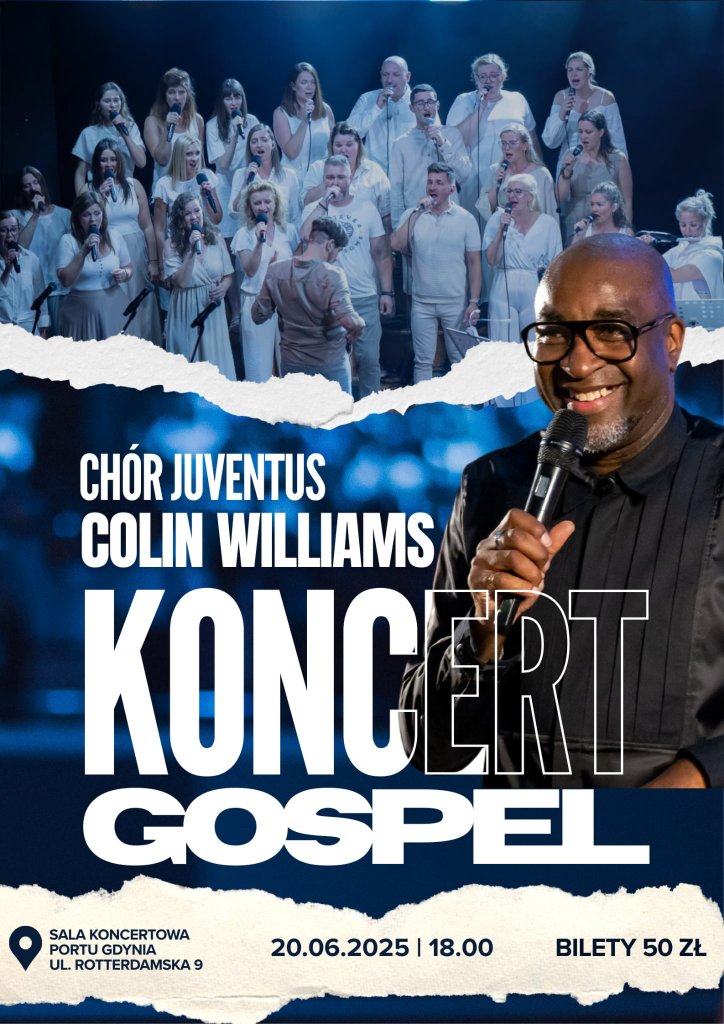 Energia, emocje i autentyczne brzmienie gospel – niezwykły koncert z udziałem Colina Williamsa! Zapraszamy na wyjątkowy koncert pełen pozytywnej energii, radości i duchowego uniesienia. Usłyszymy zarówno klasyczne pieśni gospel, jak i współczesne hity tego gatunku oraz utwory znane z kultowych filmów. Ten wieczór będzie prawdziwym świętem muzyki, które na długo pozostanie w pamięci słuchaczy.Na scenie wystąpi Chór Juventus z Tczewa – zespół z ponad 60-letnią tradycją, znany z żywiołowych i wzruszających interpretacji. Towarzyszyć mu będzie profesjonalny zespół instrumentalny w składzie: Maciej Misza Borowicz – piano Hubert Świątek – organy hammonda Piotr Brajewski– perkusja Jakub Kisielewicz – gitara basowa Gościem specjalnym wieczoru będzie Colin Williams – charyzmatyczny wokalista i dyrygent z Wielkiej Brytanii, lider słynnego The Celebration Choir. Jego sceniczna energia, niezwykła ekspresja i głęboka więź z publicznością czynią każdy występ niezapomnianym przeżyciem. Artysta współpracował z takimi gwiazdami jak The Harlem Gospel Choir, Jennifer Holliday, Alexandra Burke czy The London Community Gospel Choir.Koncert odbędzie się pod kierownictwem artystycznym Macieja Miszy Borowicza, z którym Chór Juventus zrealizował w ostatnich latach znakomite projekty muzyczne, m.in. "Pieśni Czarnych Niewolników" oraz "Gospel w rolach głównych".To będzie wieczór pełen muzyki, która porusza serca i łączy ludzi bez względu na wiek czy przekonania. Nie może Cię tam zabraknąć! 20.06.2025, godz. 18.00 | Sala Koncertowa Portu Gdynia Bilety 50 zł (materiały organizatora: Chór Juventus, Stowarzyszenie Juventus) Opublikowano: 03.06.2025 15:33 Autor: Paweł Jałoszewski (pawel.jaloszewski@gdynia.pl) Zmodyfikowano: 03.06.2025 15:34 Zmodyfikował: Paweł Jałoszewski